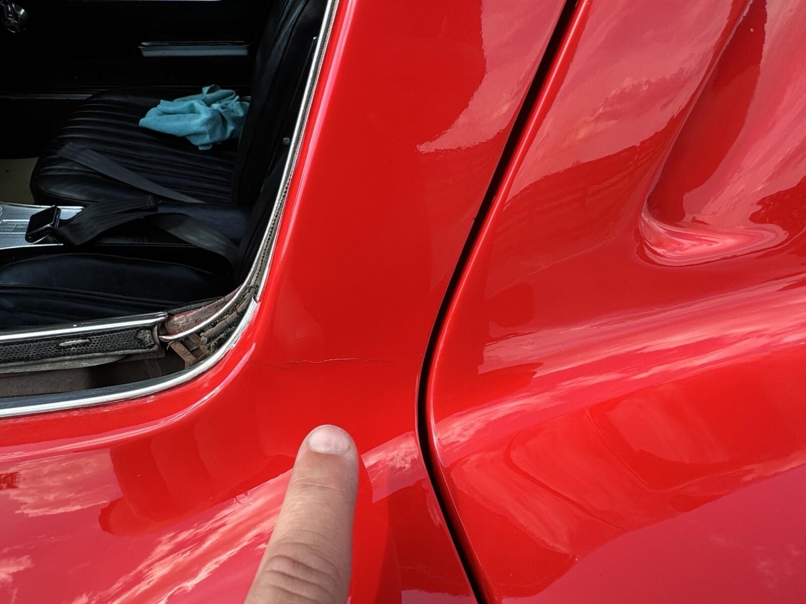 Very nice show quality base coat clear coat paint with only one imperfection I noticed on drivers door a small crack in paint please see photos.