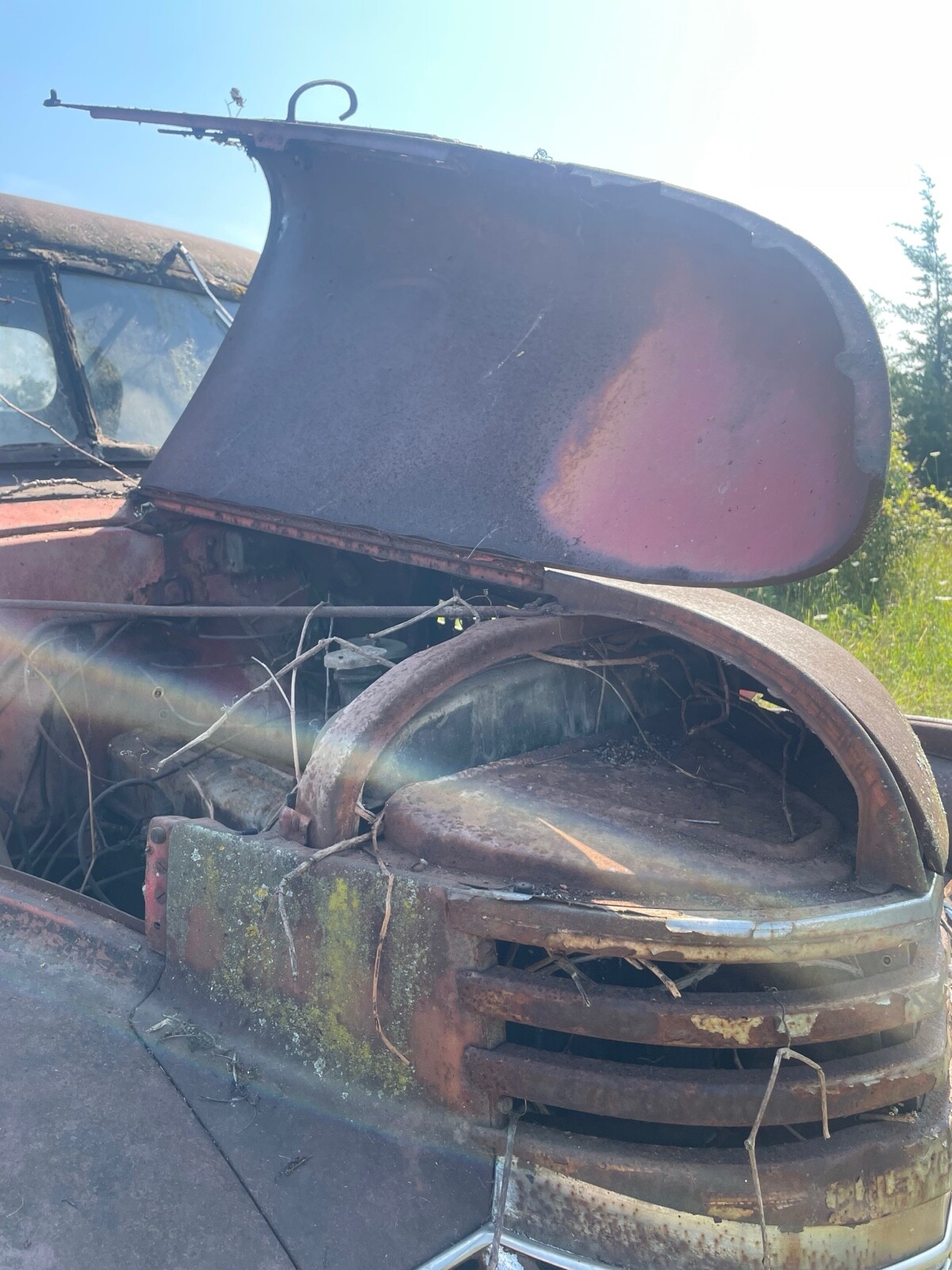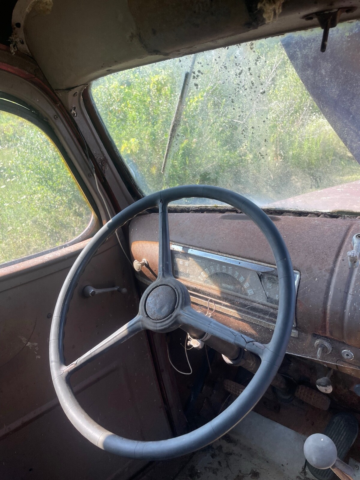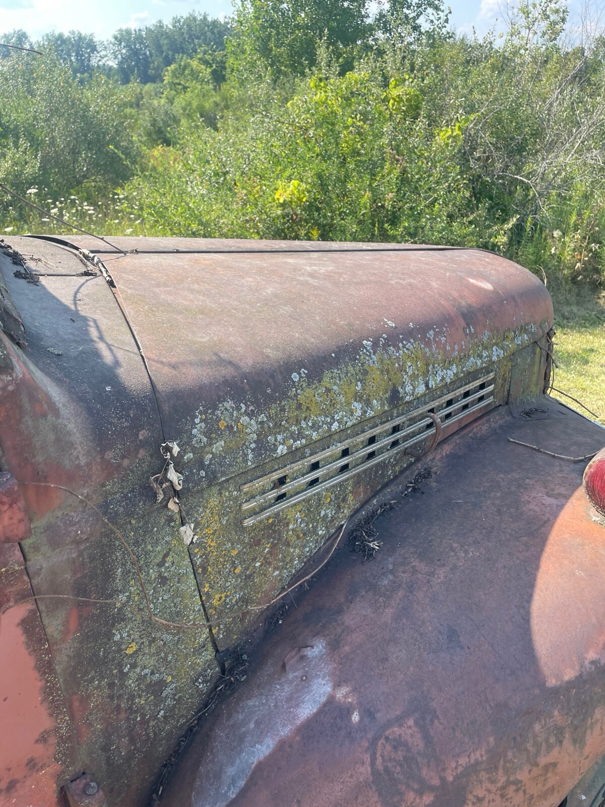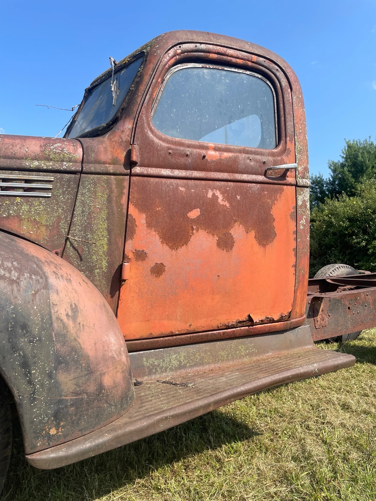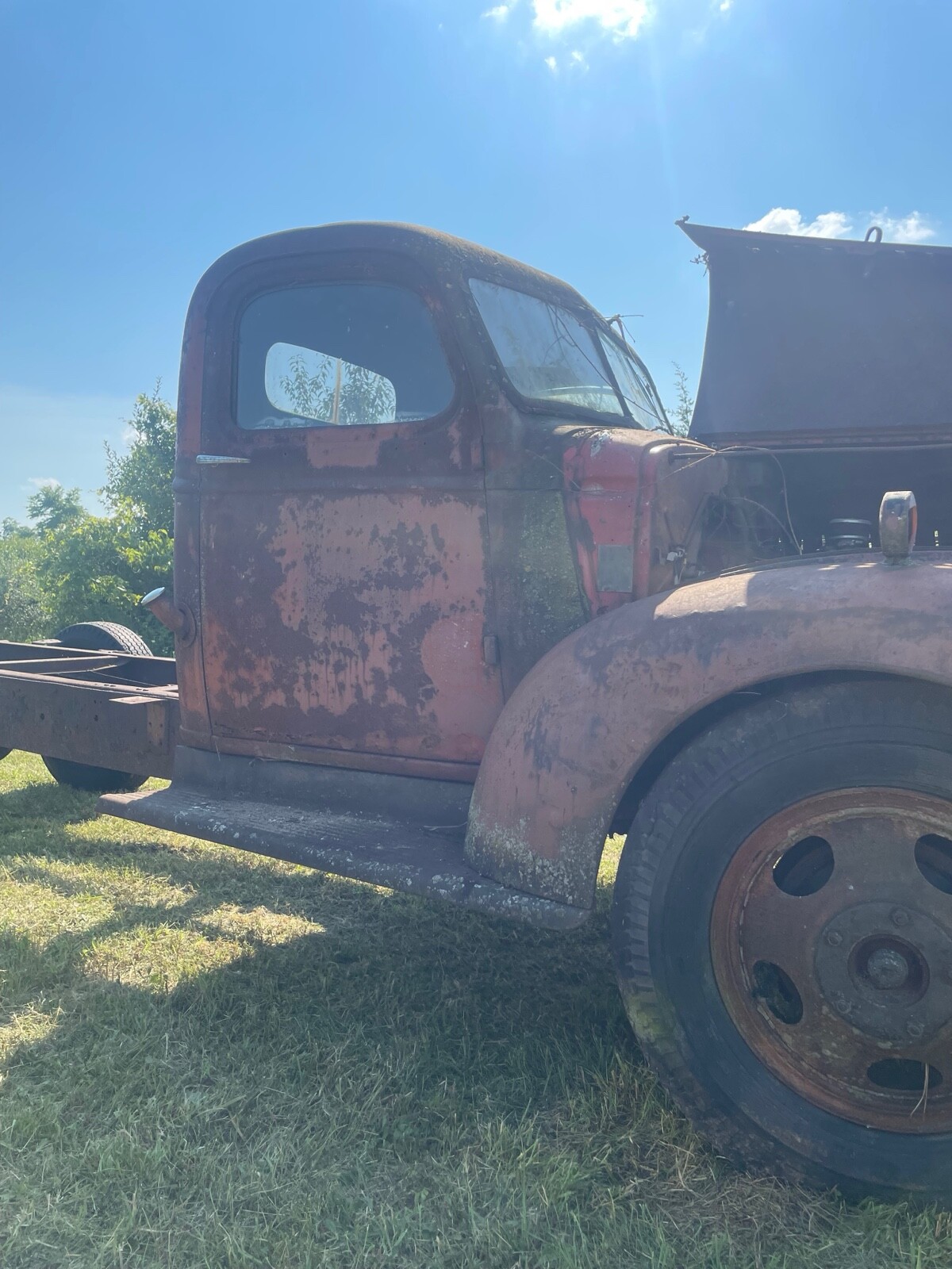 Up for auction is a 1941 - 1946 Chevy truck. That’s what I’m being told. Because there’s no title to the truck. That’s why it’s being sold as a parts truck. There’s a lot of good hard to find parts on this truck. From the headlights, hood , grille , inner fenders, running boards. To the interior parts such as. The seat, steering wheel and column, –, glove box, floor, pedals, heater, speedometer. Also has the original motor in it to the best of my knowledge. The doors and inner door panels to even the cab and glass. Excellent rat ride project patina. Being sold as is where it is so any questions please ask. Payment must be received within three days End of auction upon pick up of the truck. Local pick up only otherwise discussed with me. Possible delivery. hopefully all the pictures will show the shape of the truck.