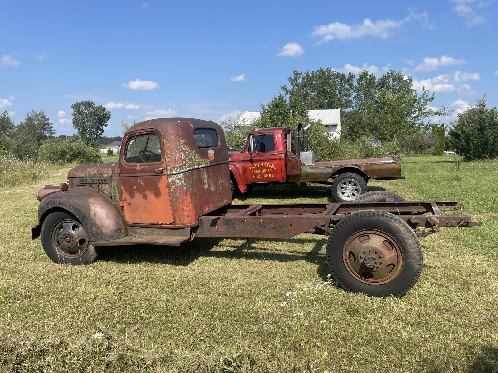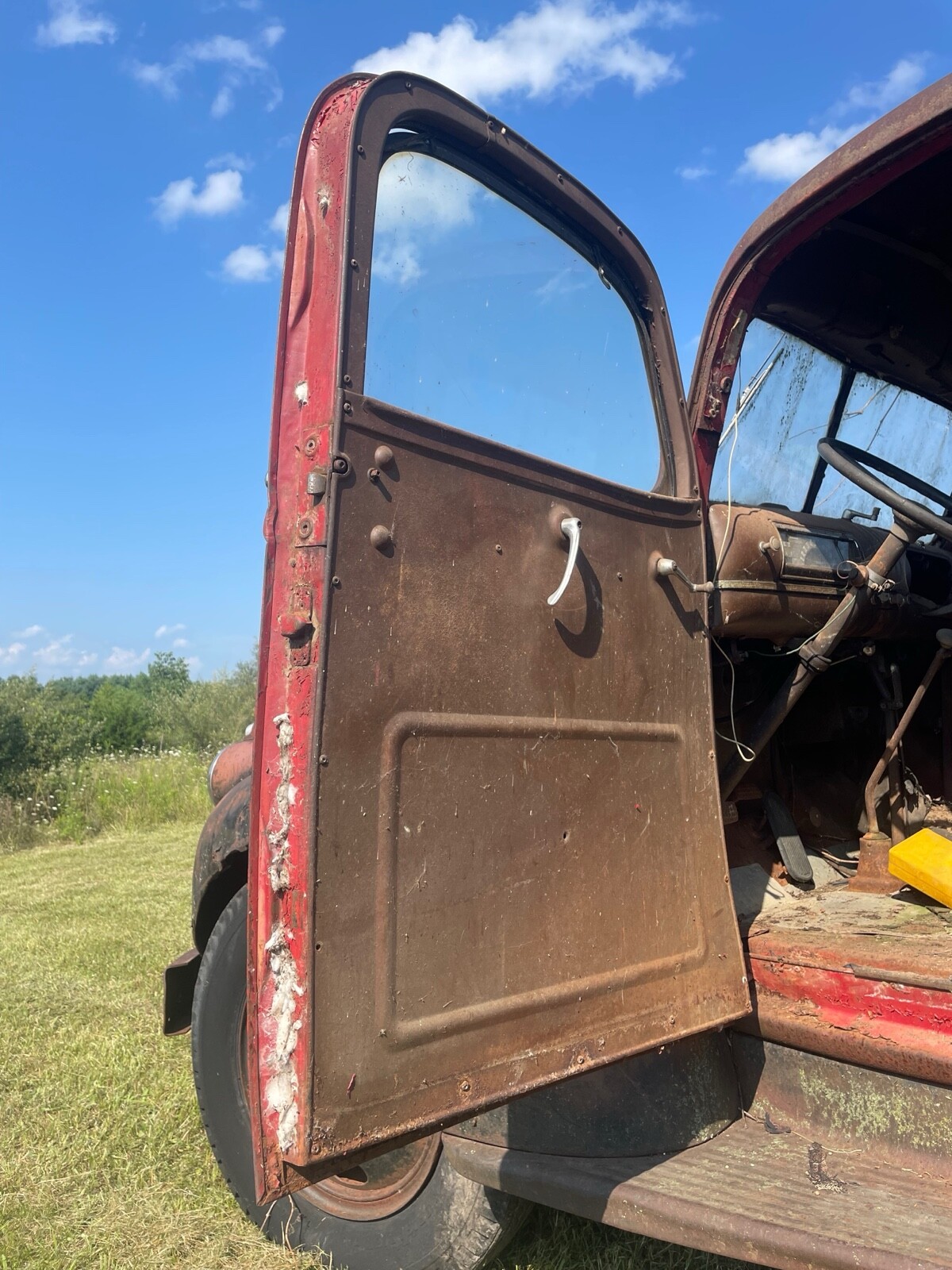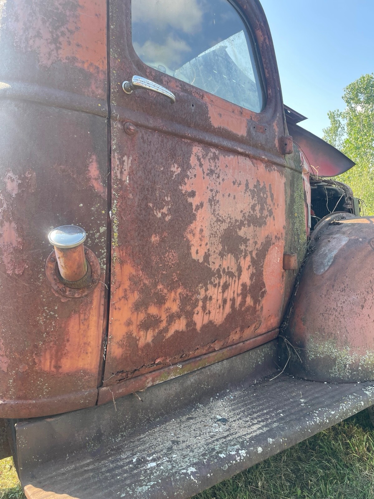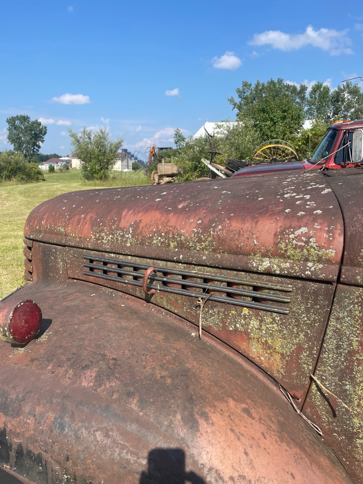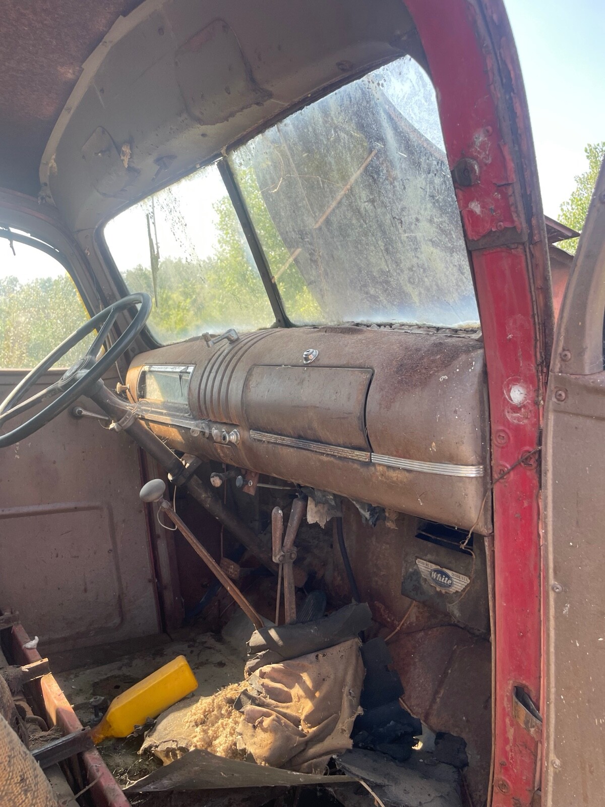 Up for auction is a 1941 - 1946 Chevy truck. That’s what I’m being told. Because there’s no title to the truck. That’s why it’s being sold as a parts truck. There’s a lot of good hard to find parts on this truck. From the headlights, hood , grille , inner fenders, running boards. To the interior parts such as. The seat, steering wheel and column, –, glove box, floor, pedals, heater, speedometer. Also has the original motor in it to the best of my knowledge. The doors and inner door panels to even the cab and glass. Excellent rat ride project patina. Being sold as is where it is so any questions please ask. Payment must be received within three days End of auction upon pick up of the truck. Local pick up only otherwise discussed with me. Possible delivery. hopefully all the pictures will show the shape of the truck.