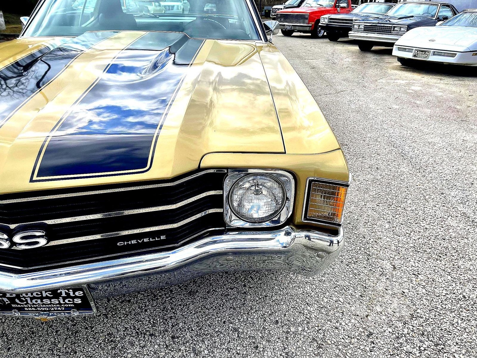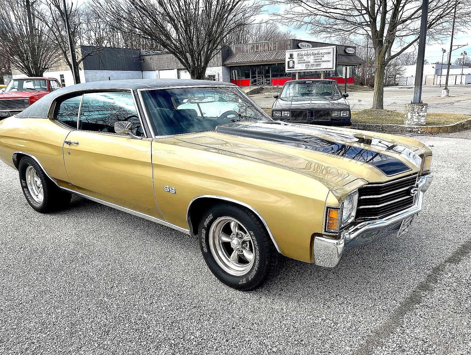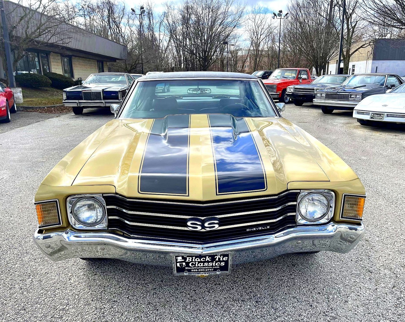 Just arrived second time around with this 1972 Chevelle 2 door Hardtop all the SS trim. Loaded with V8 Auto, Power steering, Power brakes, Air conditioning that works all new exhaust system, New air shocks, Check out the New tires wheels, beautiful vinyl top and beautiful interior perfect Chrome throughout this is a solid car southern car no rust!! or disappointments. Looks runs and sounds great!!! Thank you for your interest call John Black Tie Classics866-720-0987
