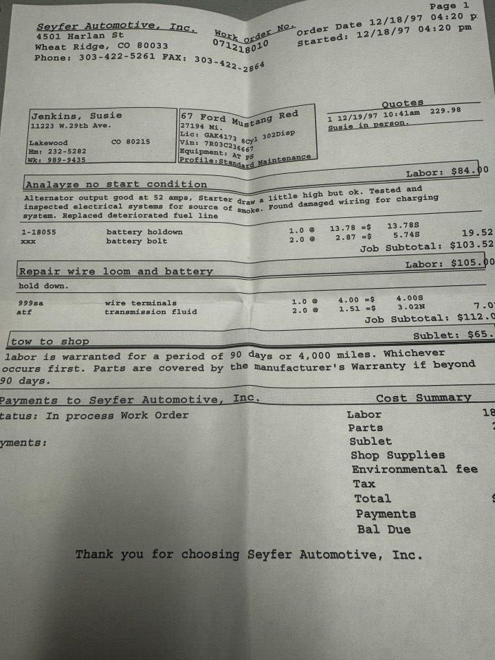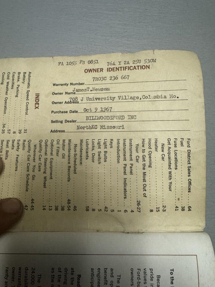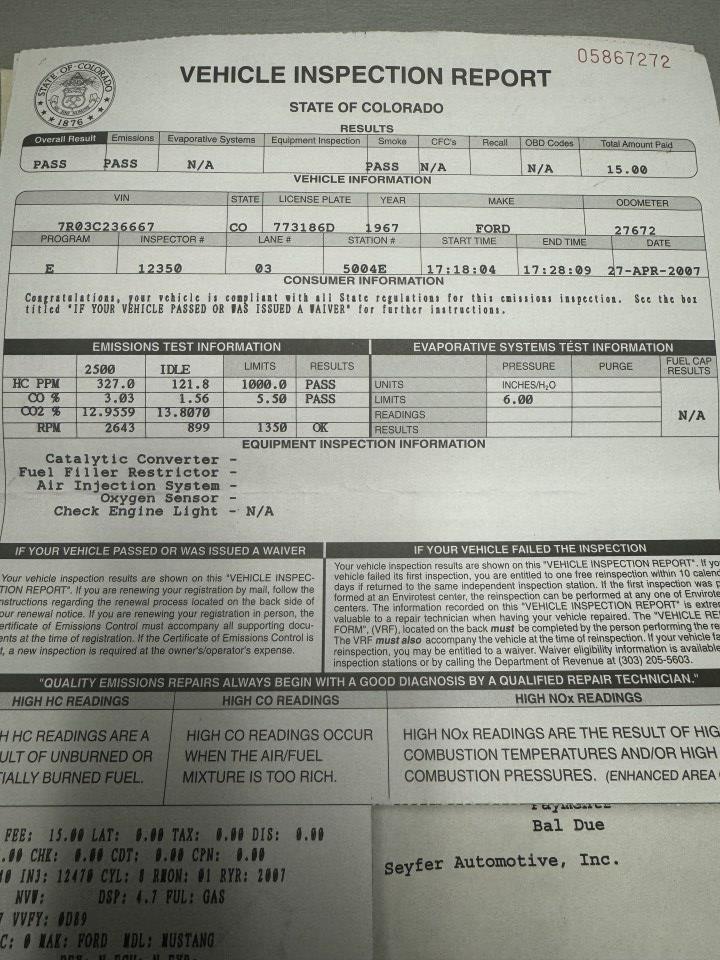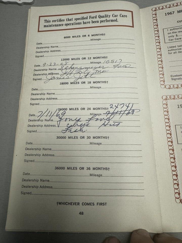 This 1967 Ford Mustang may truly be one of a kind, from the documents presented to us and the story we got from its owner is she bought this car from an 70 year old woman in Colorado Ms. Suzy Jenkins. Ms. Suzy she had a 1967 Mustang in College. She always wanted another and in 1995 she got her wish;