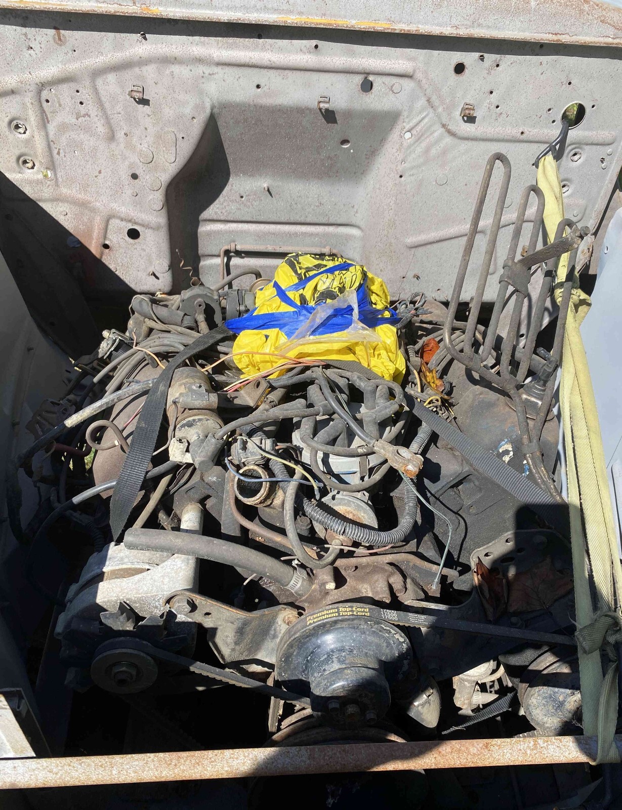It has a 351 modified motor and c6 transmission sitting in it now. The body has some rust along the bottom edge of the fenders and tail end. It came with sliding side doors and barn doors on the back along with a tailgate. The bed is 6 foot long and 5 ft 6 inch's high but the top is bolted on so easy to raise if needed.