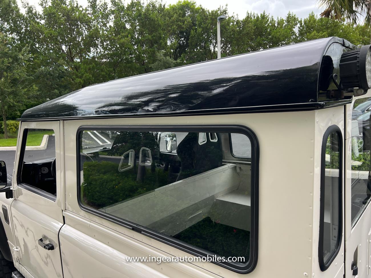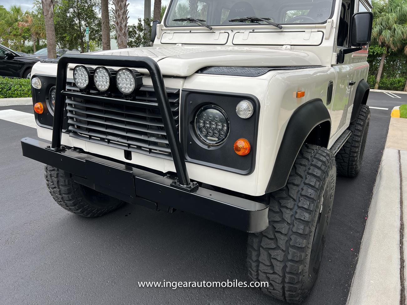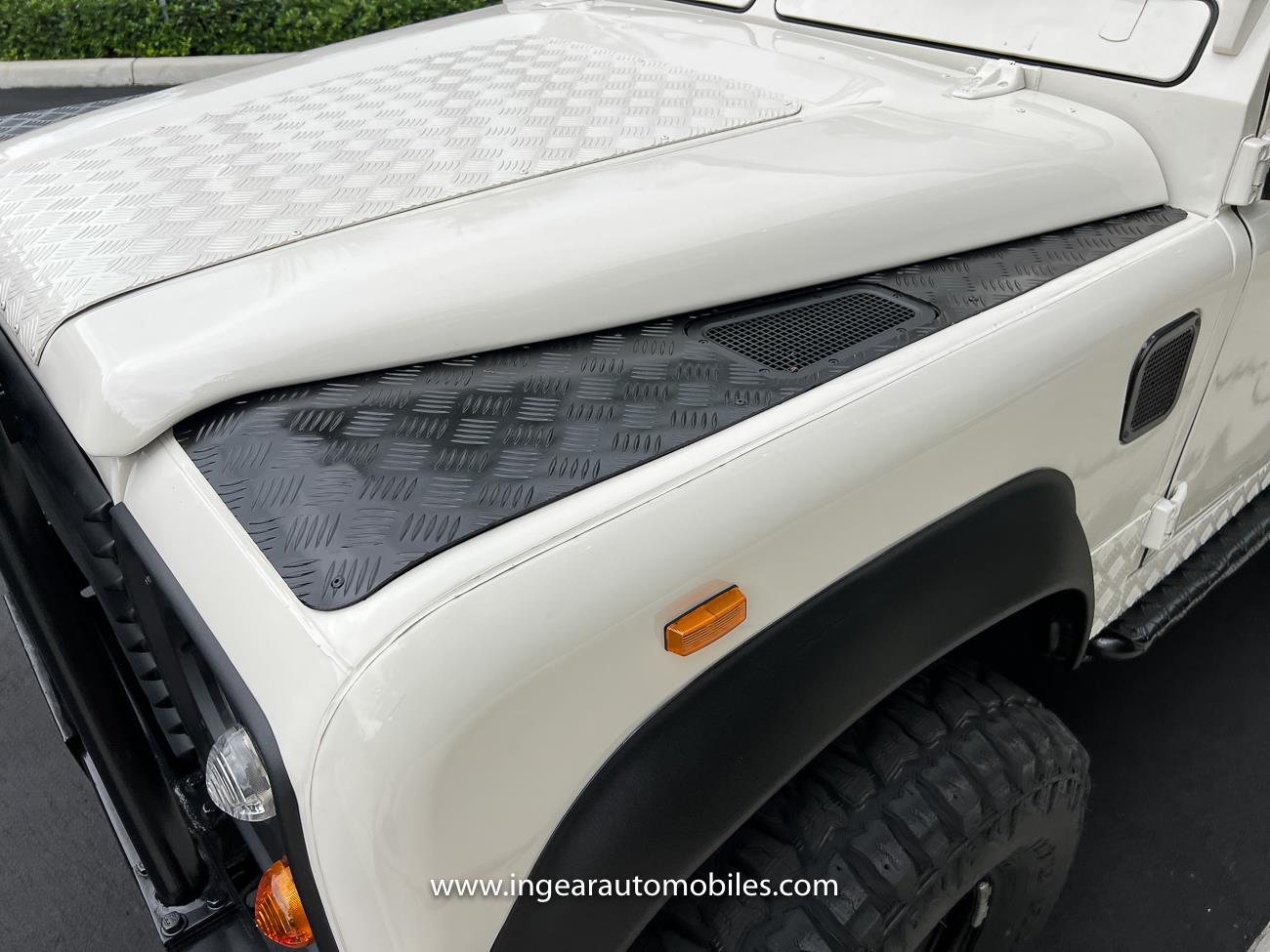 Defender has numerous options such as Power Steering, Power Brakes, Front Disc Brakes and rear disc brakes, off-road steel wheels, Factory Left Hand Drive, rear spot lights, new tires, buckets seats, black fender flares, matts, diamond plate fender guards, front guard bar with spot lights, HID front headlights, Hood bonnet diamond plate guard, and more…