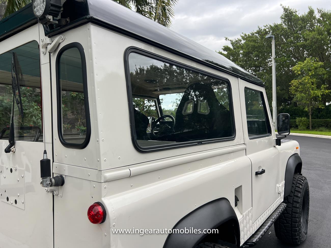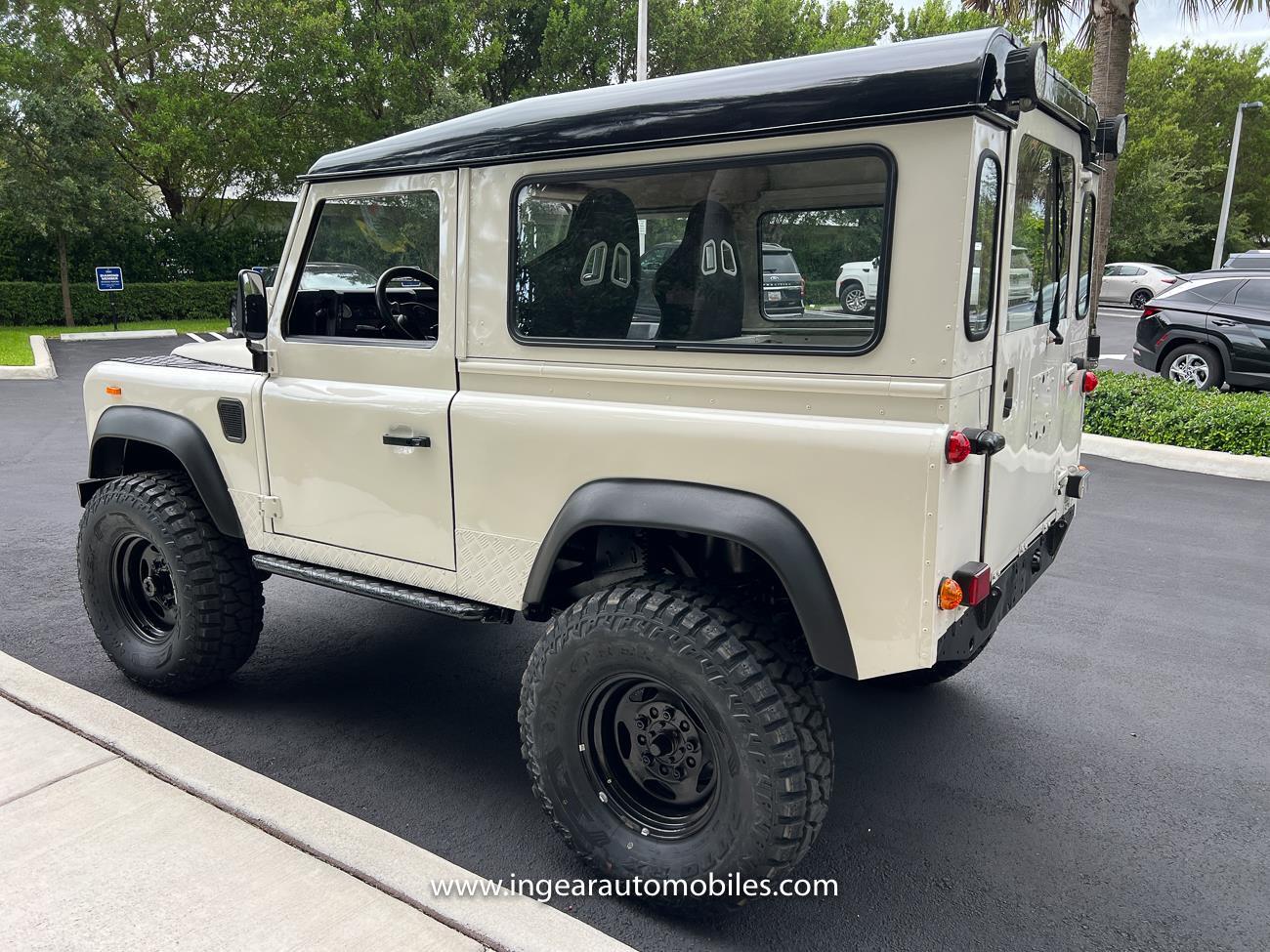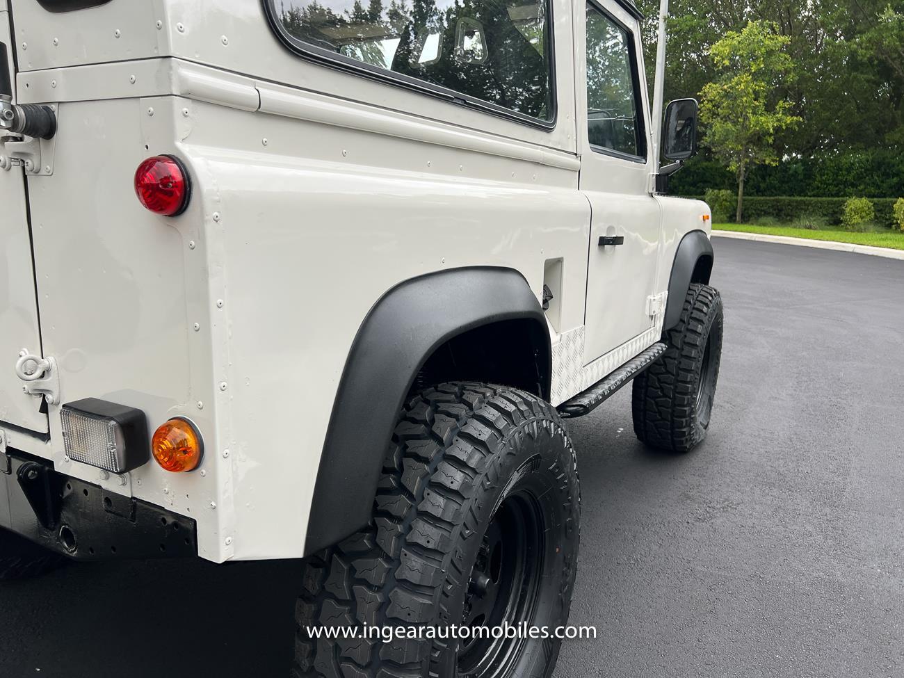 Defender has numerous options such as Power Steering, Power Brakes, Front Disc Brakes and rear disc brakes, off-road steel wheels, Factory Left Hand Drive, rear spot lights, new tires, buckets seats, black fender flares, matts, diamond plate fender guards, front guard bar with spot lights, HID front headlights, Hood bonnet diamond plate guard, and more…