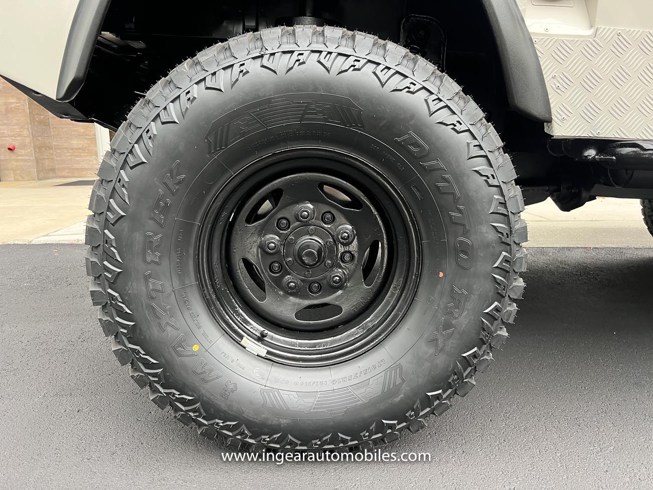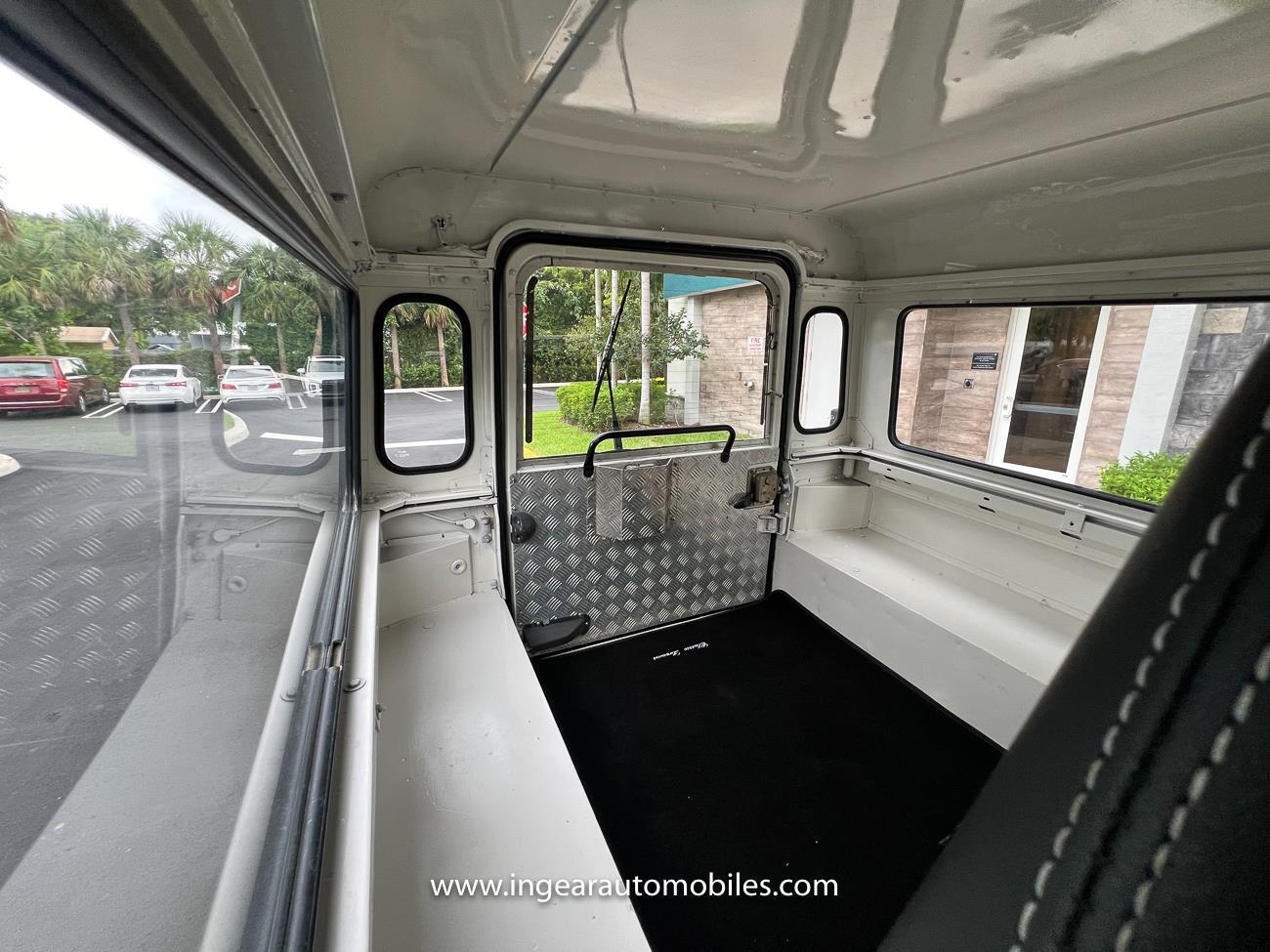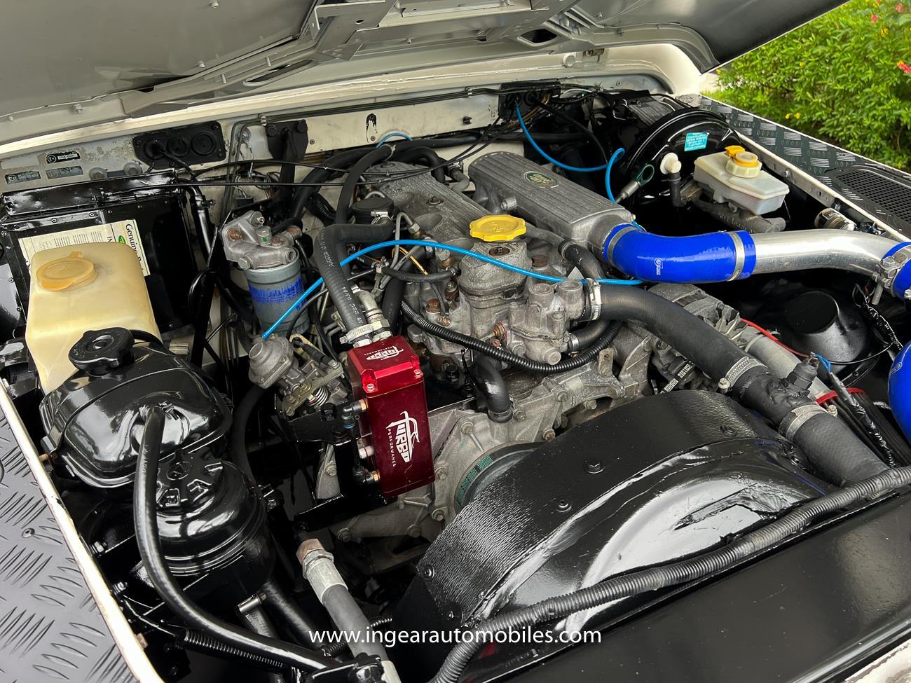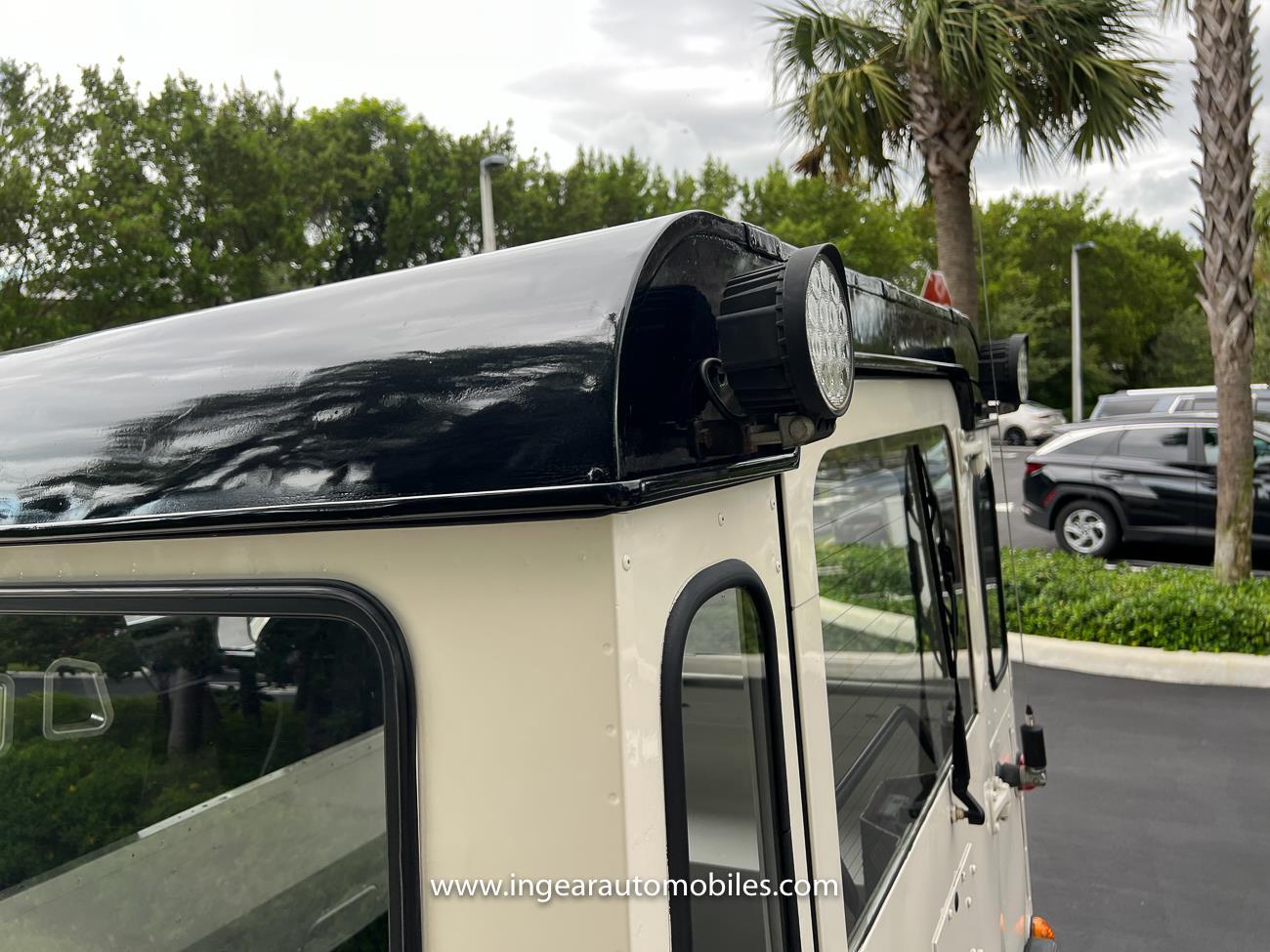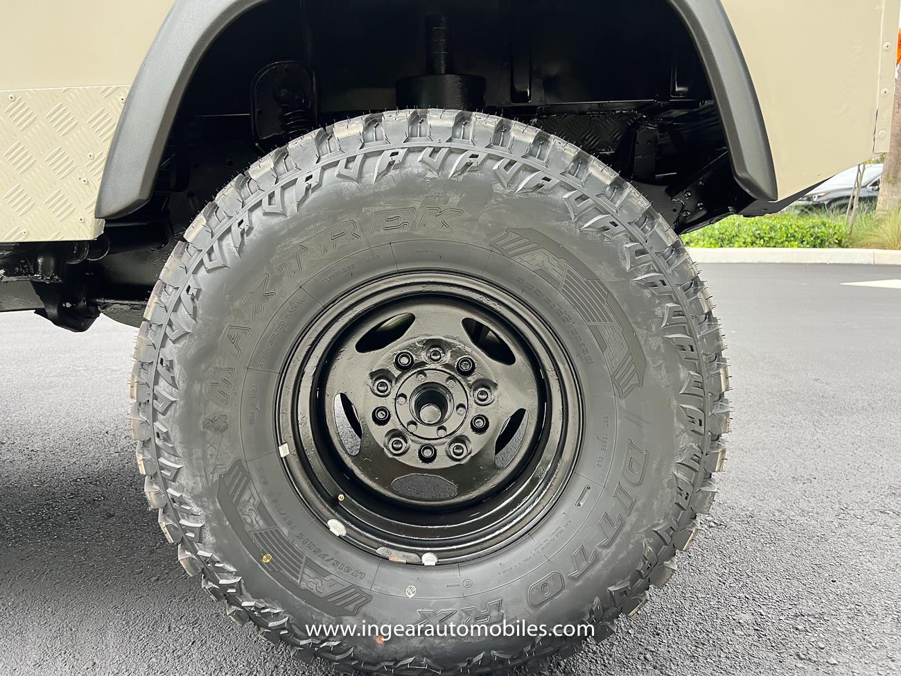 The Interior is nice and contrast well to the exterior white safari paint, newer seats has been fitted, and tastefully done. Momo steering wheel. Has it’s normal wear and tear like any vehicle, but very solid Land Rover, and as you can see it received a restoration by the previous owner. Painted black roof. The engine swap alone to a 200tdi can run over $10,000 easily. Make sure to see my full album of pictures.