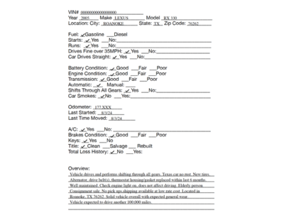 No Payment: If the deposit is not received within 24 hours of the close of the auction, or if the balance is not paid in full within 3 days following the close of the auction, we reserve the right to re-list the vehicle to the next highest bidder or another qualified buyer.