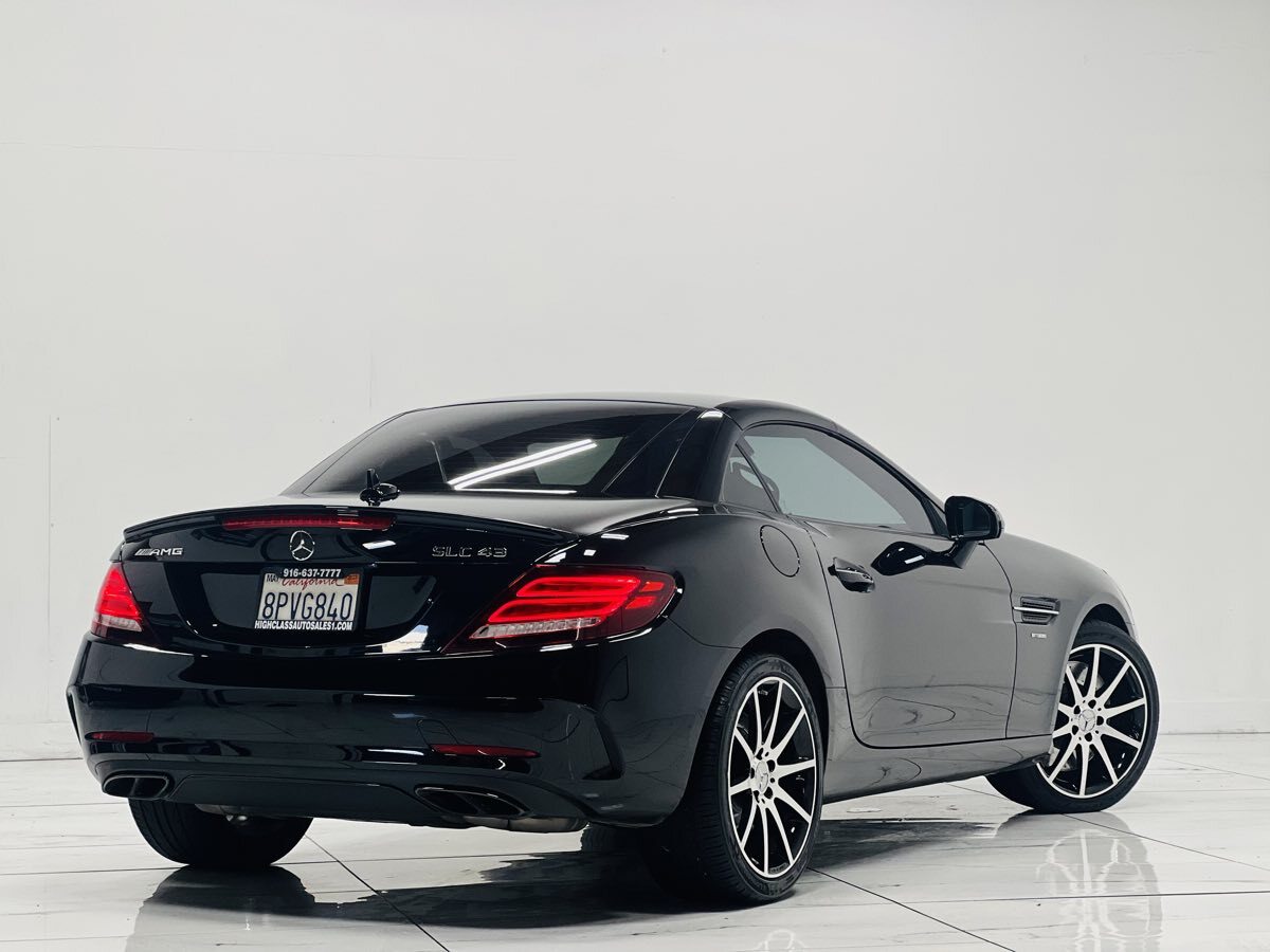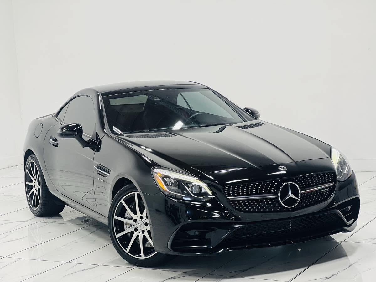 Our fantastic Accident Free - One Owner 2020 Mercedes-Benz AMG SLC 43 Roadster will catch your eye in stylish Black. Motivated by a Twin TurboCharged 3.0 Liter V6 producing 385hp tethered to a 9 Speed Automatic transmission to propel you to 60mph in 4.6 seconds. This Rear Wheel Drive convertible provides superb handling with the AMG-tuned suspension - up to 29mpg on the highway - and attractive styling accented by a power hardtop with an integrated panoramic sunroof - adaptive LED headlamps - a switchable sports exhaust - and AMG-specific bumpers - side skirts - and lightweight alloy wheels. Once inside our SLC 43 - you will be impressed with the eye-catching trim and superb attention to detail. Settle into one of the heated power seats with AIRSCARF neck warmers and memory settings and admire the wealth of amenities such as dual-zone automatic climate control - keyless entry/ignition - and a multi-function steering wheel. Additionally - the full-color COMAND infotainment system features Bluetooth - a rotary controller - a USB input - and Harman/Kardon LOGIC7 surround sound to keep you informed and entertained. Mercedes-Benz includes blind-spot monitoring - attention assist - a backup camera - rain-sensing windshield wipers - ABS - advanced airbags - and traction/stability control for your peace of mind. Our AMG SLC 43 roadster offers top-down driving with the comfort of a luxury sedan and the four-season convenience of a retractable hardtop! Save this Page and Call for Availability. We Know You Will Enjoy Your Test Drive Towards Ownership!