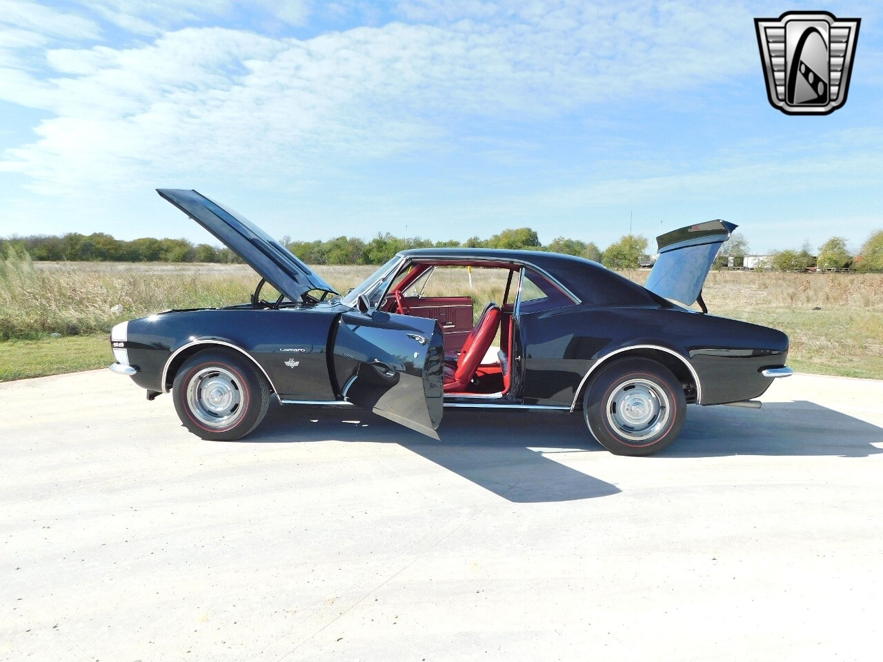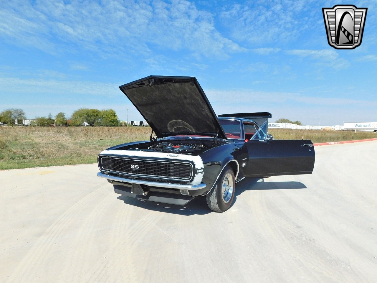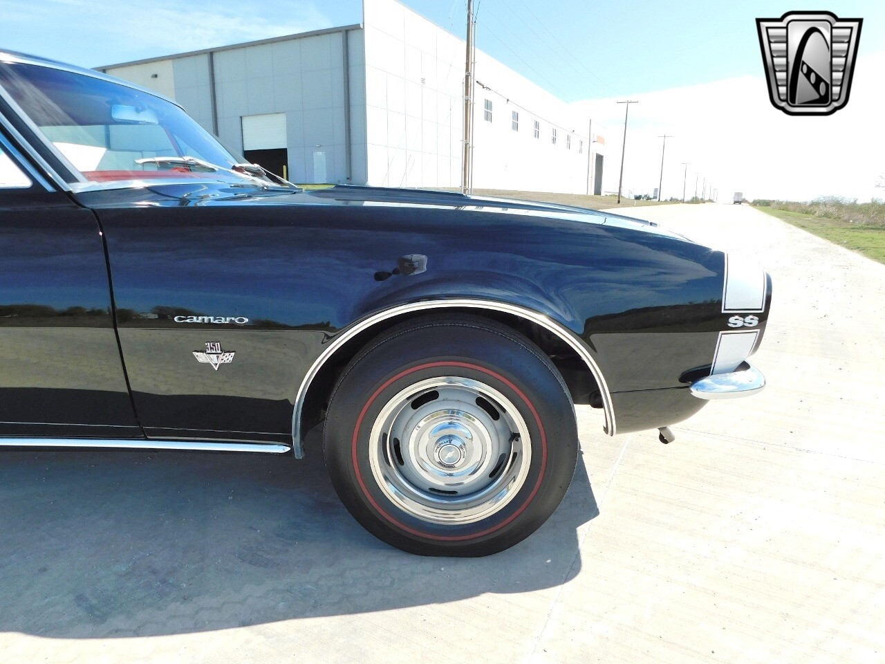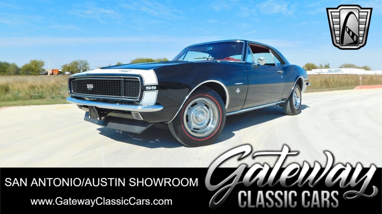 Gateway Classic Cars of San Antonio/Austin is pleased to present this late year production (10D) 1967 Chevrolet Camaro RS/SS. The 1967 Camaro was more than just Chevrolet's answer to the 1st Generation Ford Mustangs, it was the beginning of Chevrolets dominance in the segment. Derived from a French word meaning "Comrade" or "Friend", the Camaro was quickly recognized as a friendly word for sports car buyers looking for a true value. The 1st generation Camaro has always delivered performance in a wonderful package, and this 1967 Chevrolet Camaro RS/SS 350 continues that storied tradition! This '67 is as original as it gets with Factory A/C (not blowing cold), factory power steering, factory 350CID V-8 and the factory 4 Speed automatic. The Red standard buckets (741,Z) split down the middle with the center console along with the red headliner, door panels, dash pad and carpet contrast nicely against the Tuxedo Black paint job with the white sport stripe on the nose. One look at the list of factory options on this trim tag shows just how special & highly-collectible this RS/SS really is. The deluxe three-spoke steering wheel frames a 120-mph speedometer and a 7k-rpm tachometer. Auxiliary gauges for fuel level, engine temperature, oil pressure and battery charge are located on the center stack ahead of the shifter. This 1967 Camaro RS/SS is undeniably a true American classic! Cars of this caliber are becoming harder and harder to find, and now is the opportunity to be one of a select few to own a true piece of American automotive history..