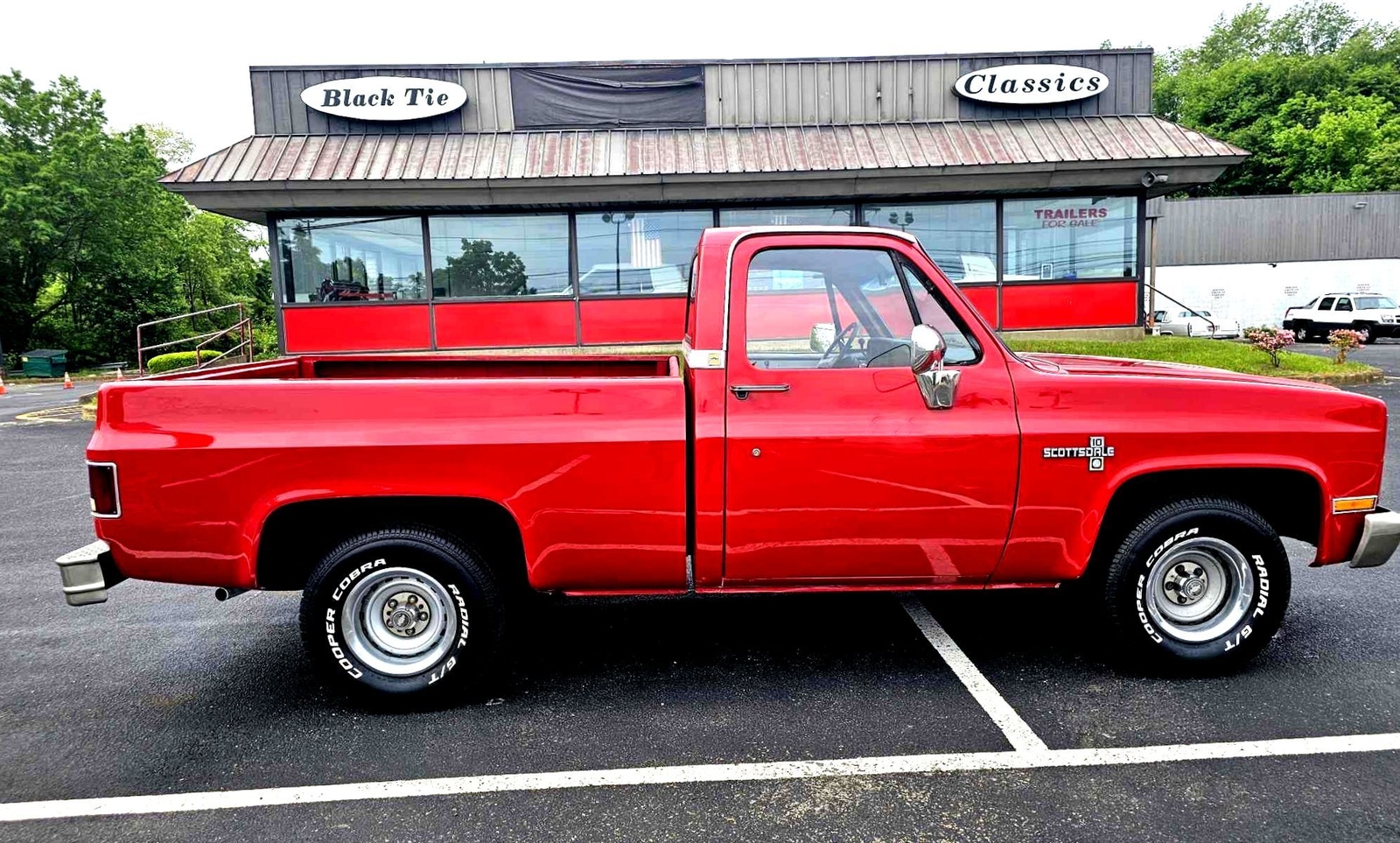 So you’re looking for a pick up look no further 1984 Chevy Scottsdale C10 short bed awesome truck beautiful pristine paint job beautiful interior all new chrome still adding some of the chrome on the truck it’s Drop dead gorgeous!! Low miles 83,947 prices sell Fast...... This 1984 Chevy pickup C10 350 create, with automatic trans, power disc brakes, power steering, beautiful truck New red paint black interior ready to show and go all new Chrome all new paint check it out!