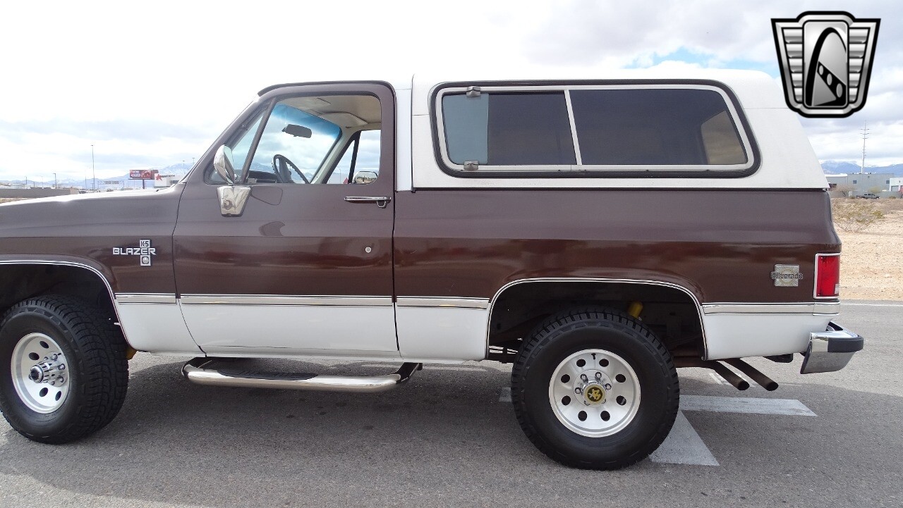 Step into the classic era with this 1984 Chevrolet K5 Blazer Truck. This vehicle is a beautiful blend of brown and white exterior color that complements its beige cloth interior, giving it a timeless appeal.