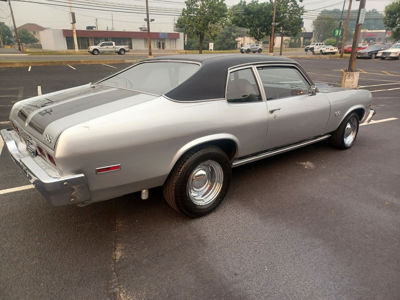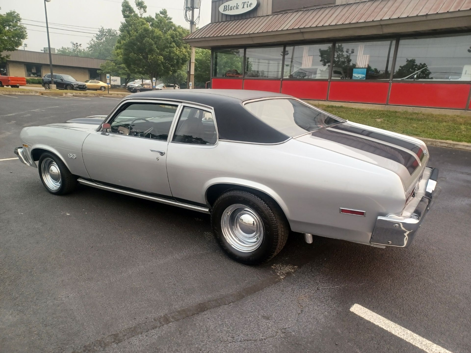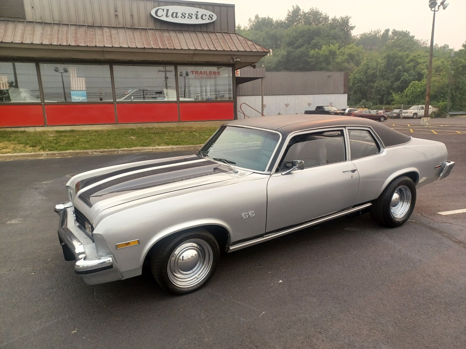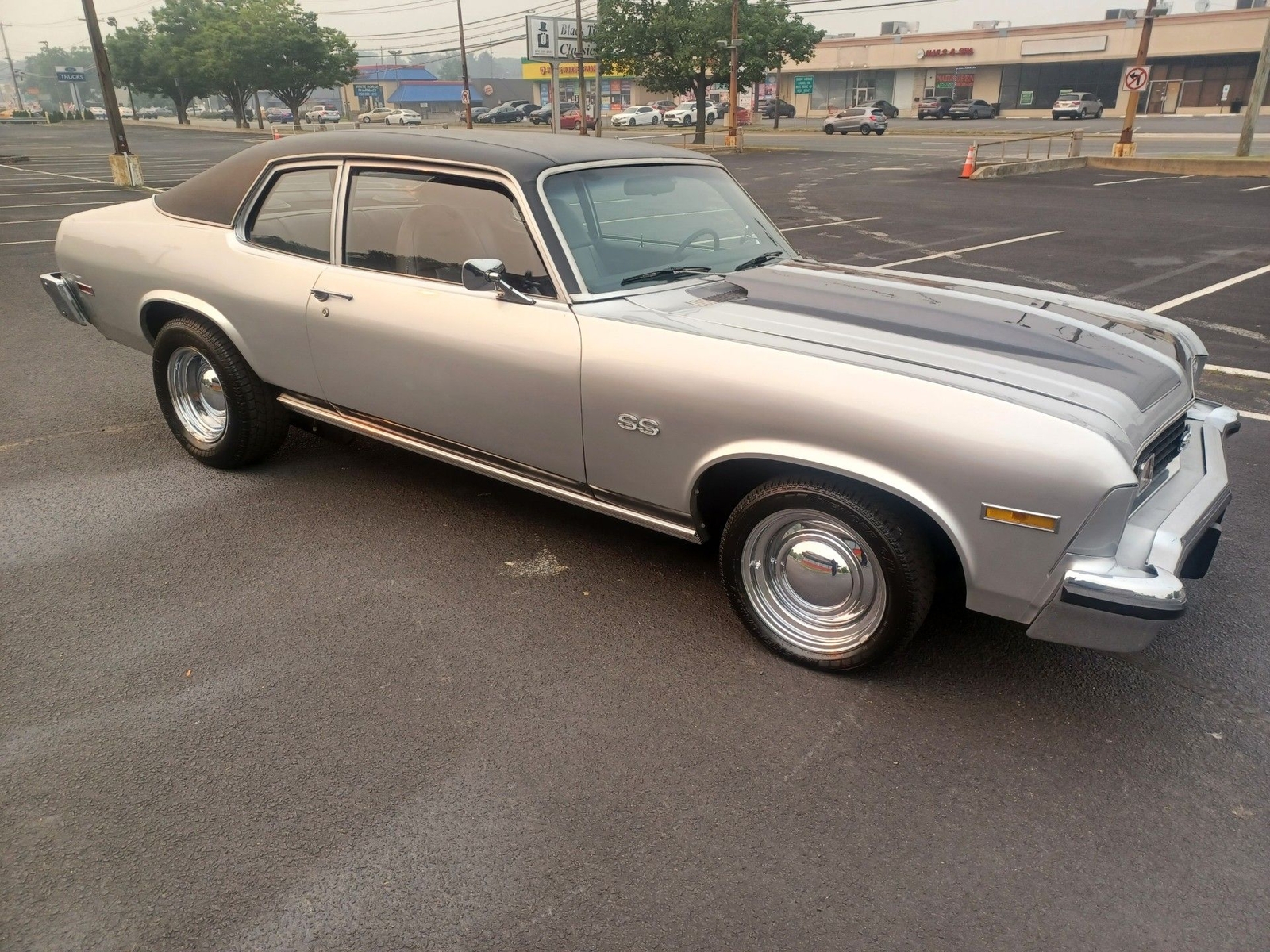 Just arrive private owner for over 10 years 1973 Chevy nova two-door coupe 350 with a four speed transmission beautiful silver paint black vinyl top two-tone interior looks, sounds and drives fantastic. This is a car that you can show or go anywhere with pride a showstopper they becoming so rare today to find these little nervous that’s why they’re in such demand. Call if you have any questions happy to be of help. Thank you, John.