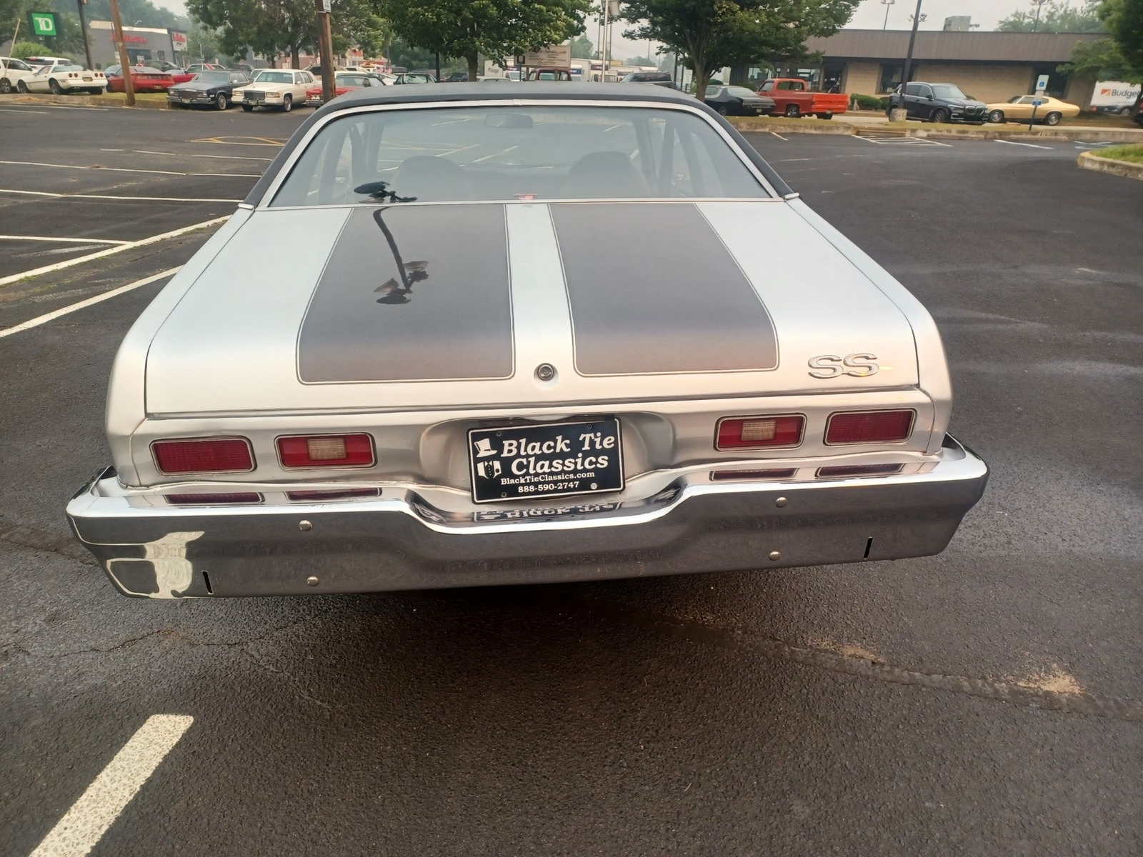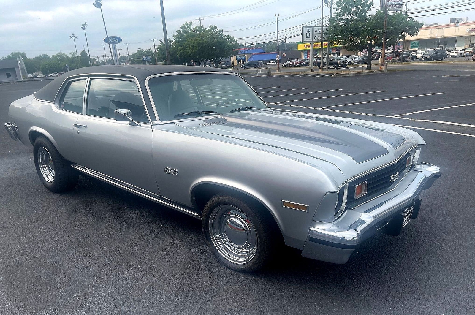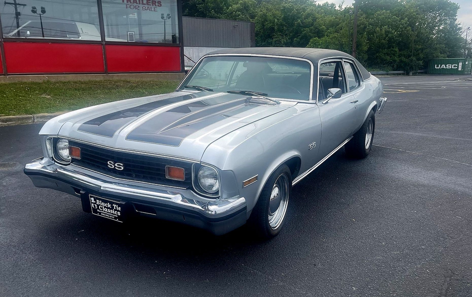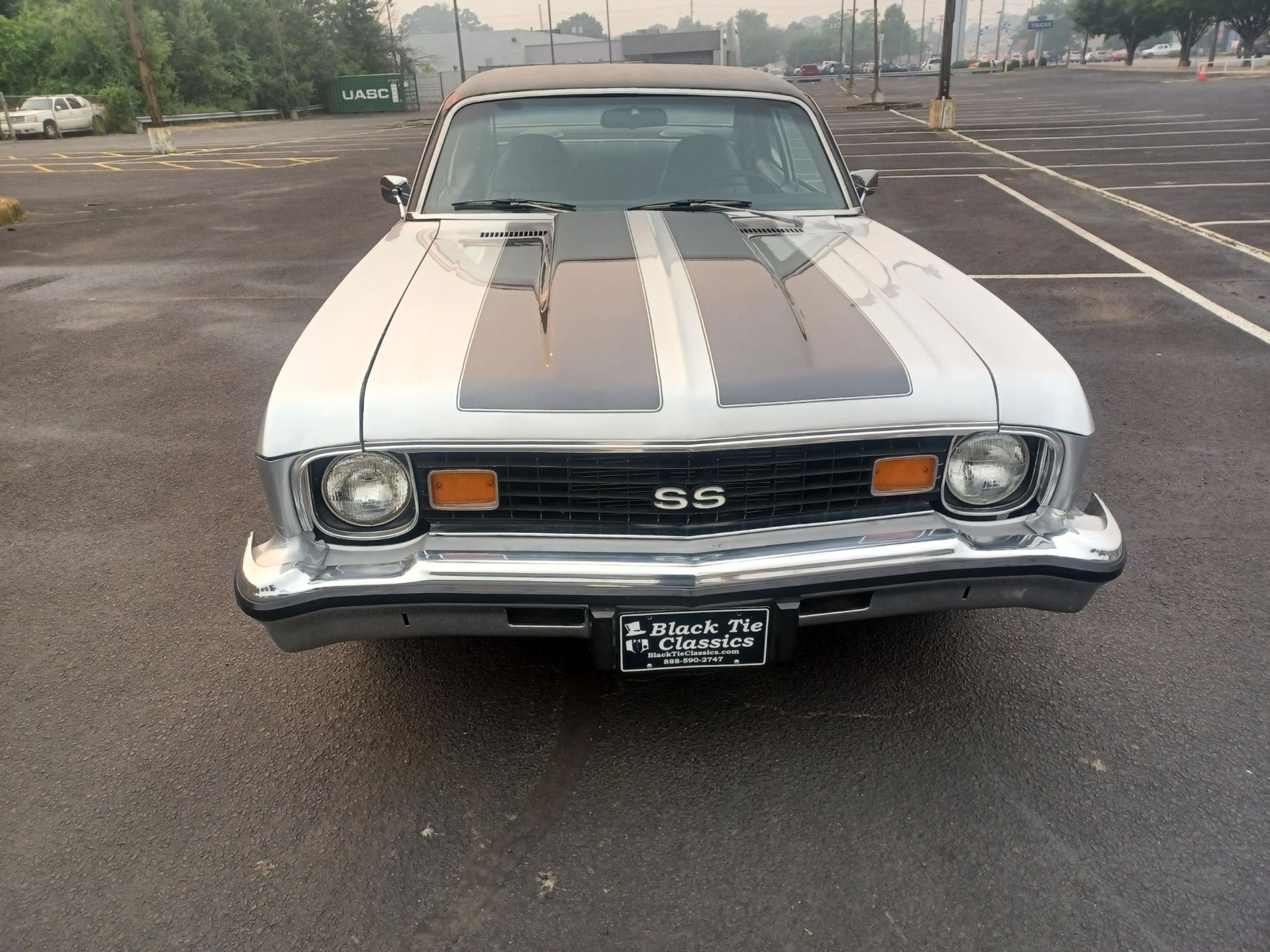 Just arrive private owner for over 10 years 1973 Chevy nova two-door coupe 350 with a four speed transmission beautiful silver paint black vinyl top two-tone interior looks, sounds and drives fantastic. This is a car that you can show or go anywhere with pride a showstopper they becoming so rare today to find these little nervous that’s why they’re in such demand. Call if you have any questions happy to be of help. Thank you, John.