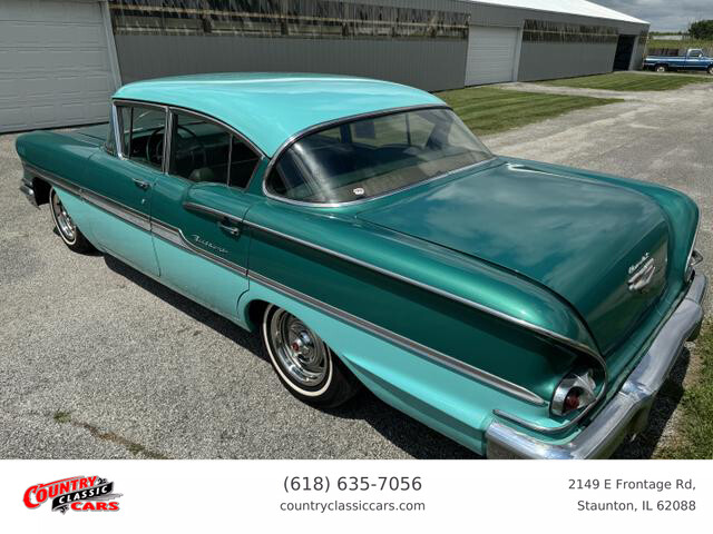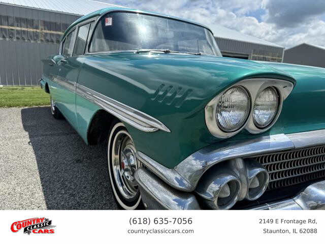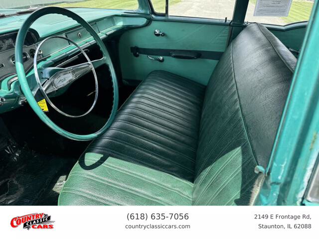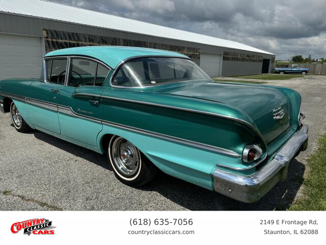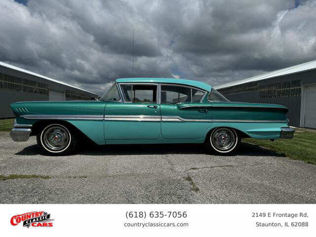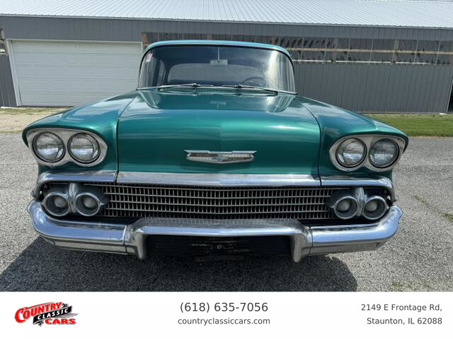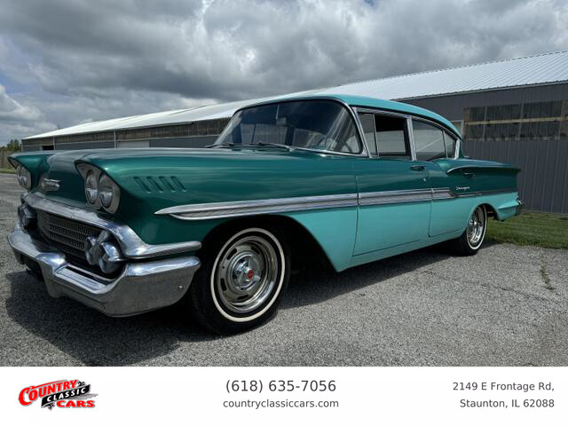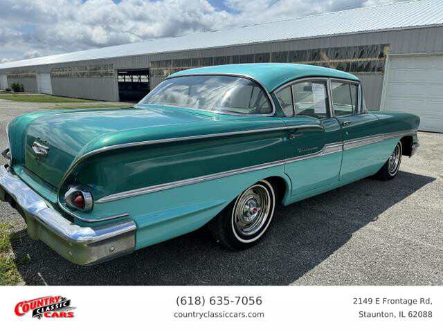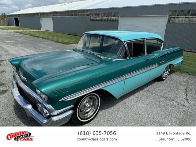 Available now is this 1958 Chevrolet Biscayne 4 door sedan finished in a two-tone green over a green interior. This Chevy is powered by an inline 6-cylinder engine mated to a 3 speed manual transmission. Just out of long term storage, this Biscayne has just had a tune up, brake system overhaul, and a new fuel tank installed. Runs and drives very well.