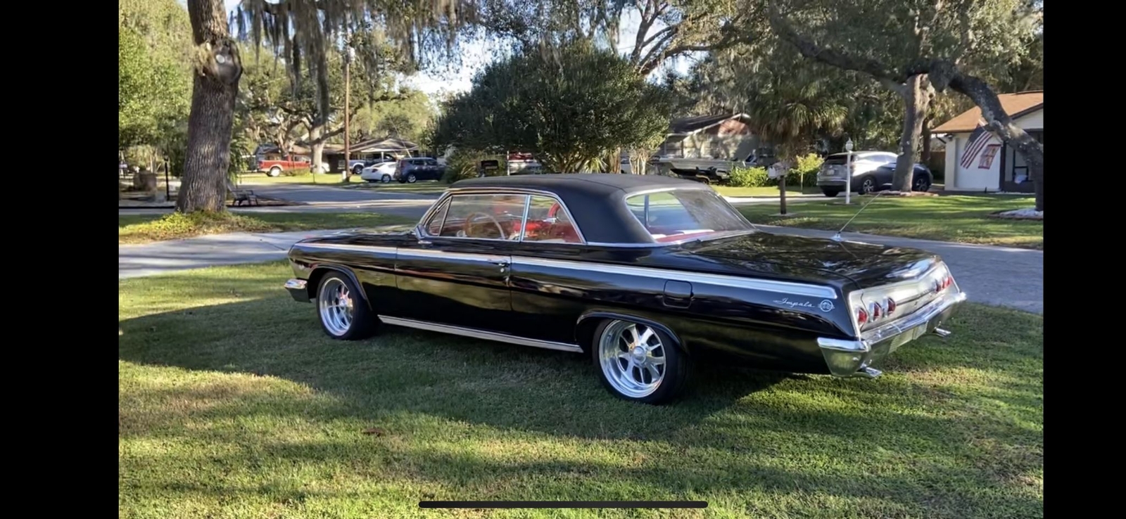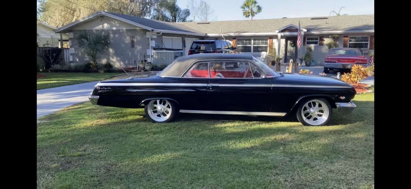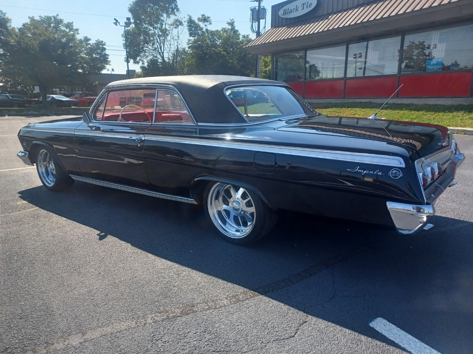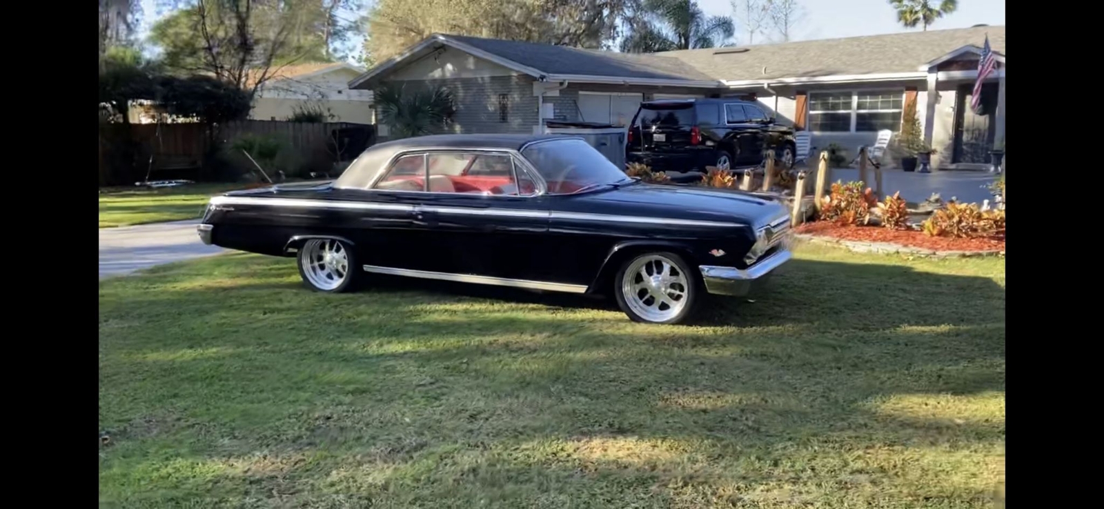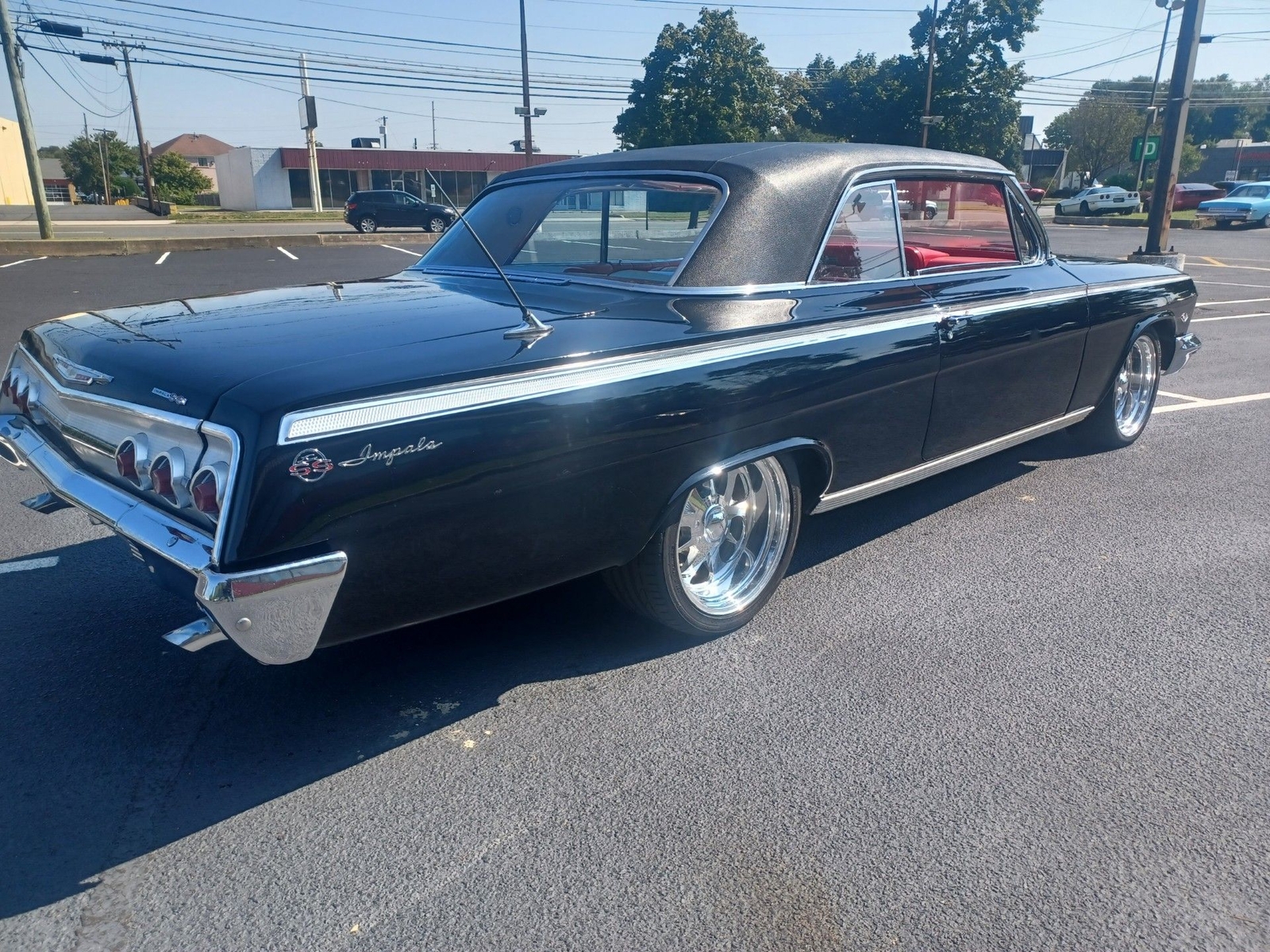 Wow what a car 1962 Chevy Impala Super Sport two door Hardtop color is Factory Jet Black with Rare factory Black vinyl top, Red and white interior Power steering, Power disc brakes, Built 450 HP 383 Stroker motor with a standard five speed transmission!! just the way you want it Black with a ,red interior, Beautiful Custom deep dish wheels.... drop dead gorgeous!!! Wow what a car runs and drives fantastic very collectible.