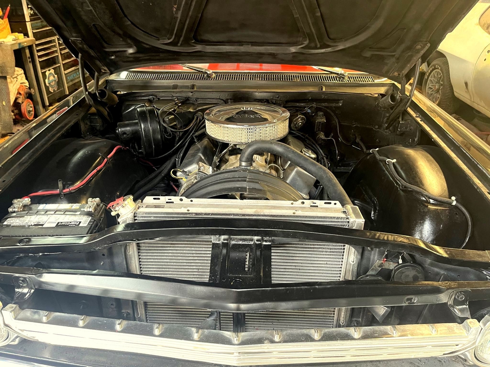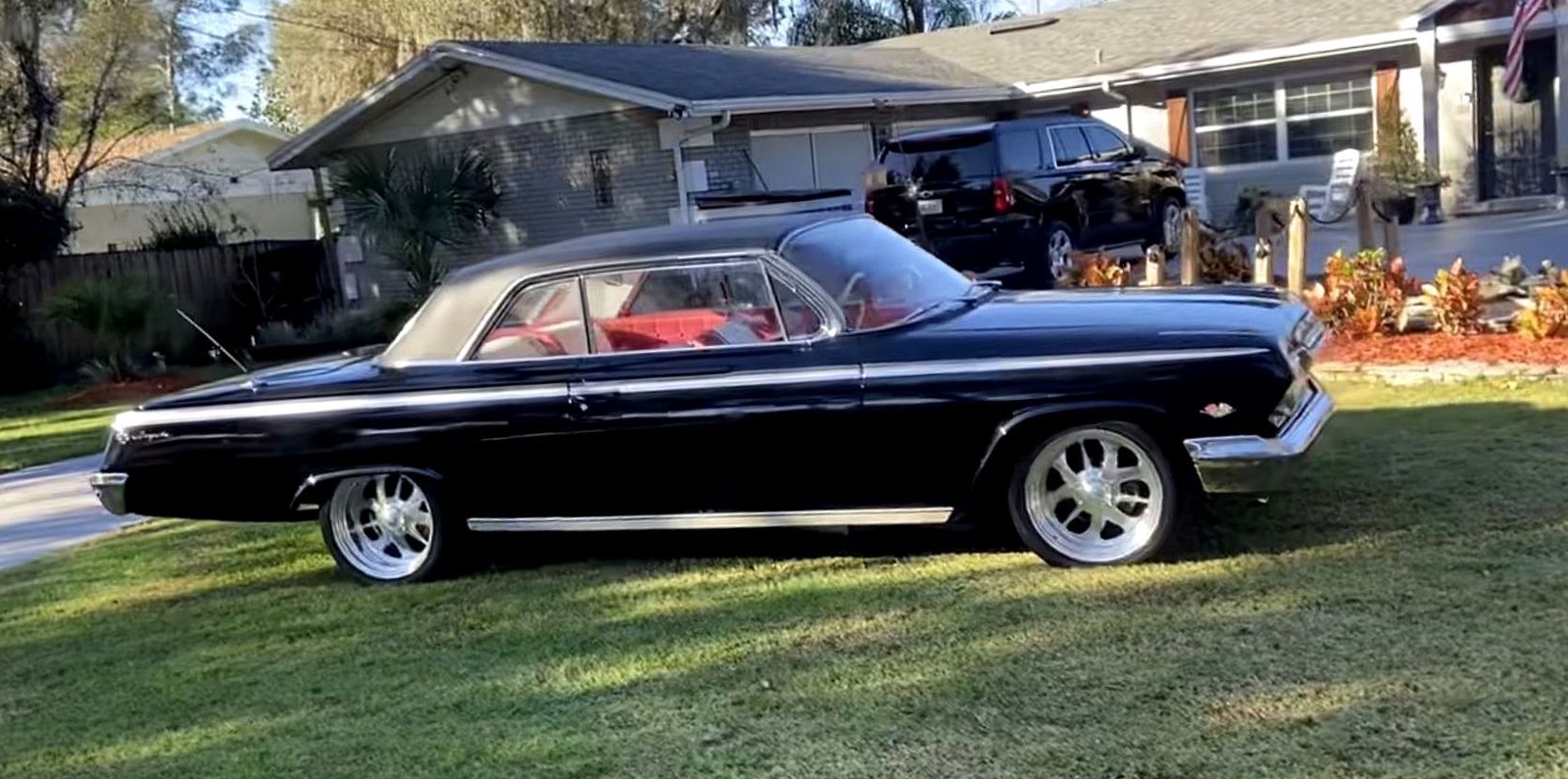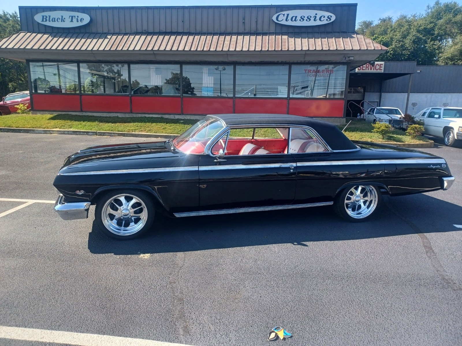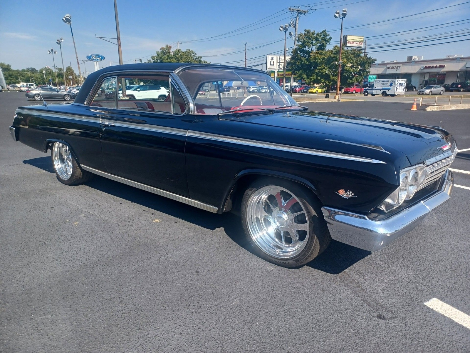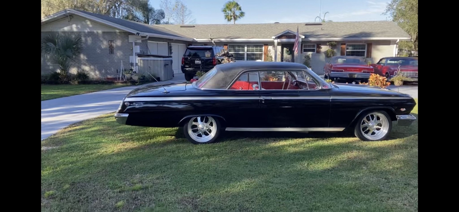 Wow what a car 1962 Chevy Impala Super Sport two door Hardtop color is Factory Jet Black with Rare factory Black vinyl top, Red and white interior Power steering, Power disc brakes, Built 450 HP 383 Stroker motor with a standard five speed transmission!! just the way you want it Black with a ,red interior, Beautiful Custom deep dish wheels.... drop dead gorgeous!!! Wow what a car runs and drives fantastic very collectible.
