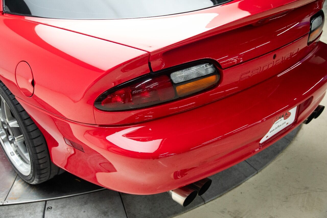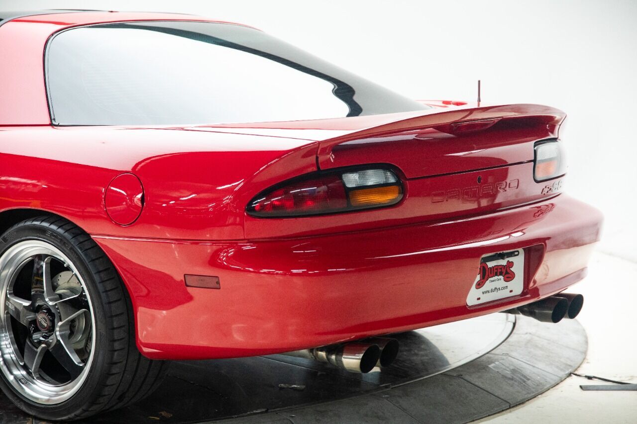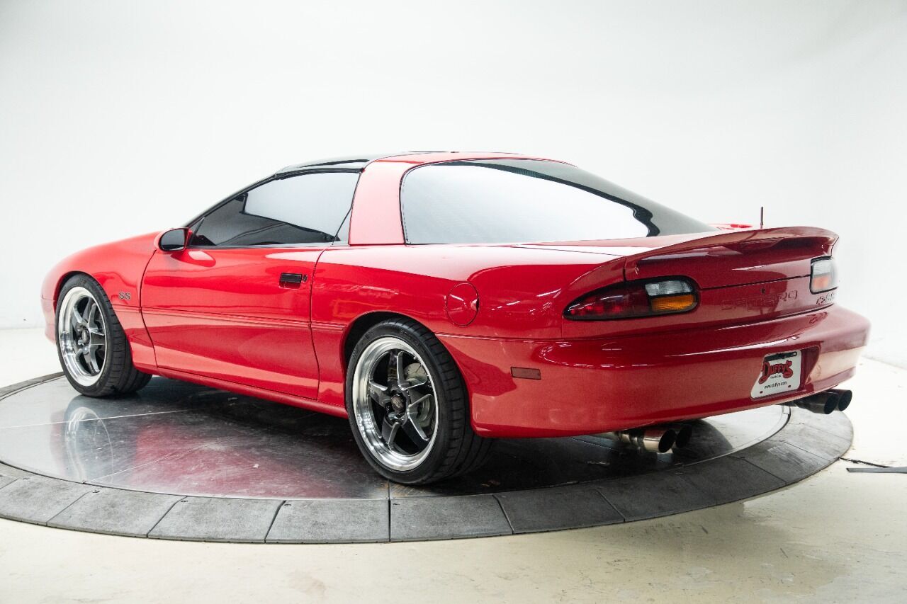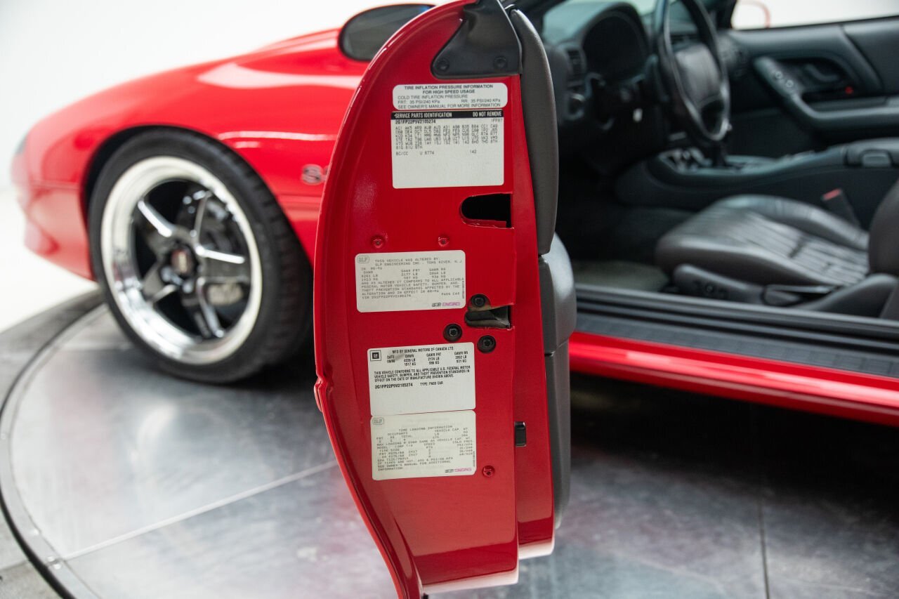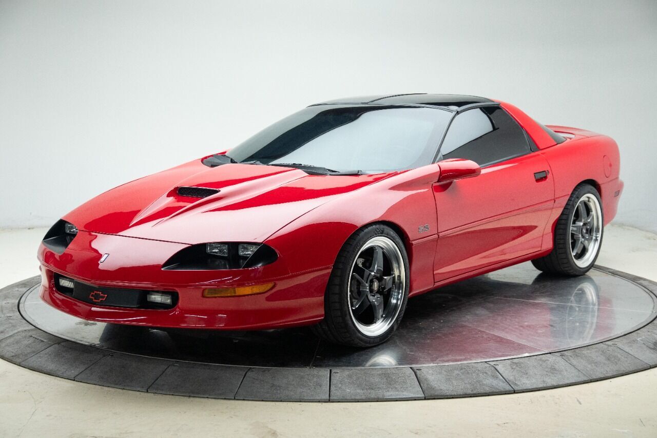 This Camaro is nicely equipped for performance and handling. To start it has pacesetter headers k8n air filter with performance hooker exhaust y-pipe with hooker chambered muffler. This give the lt1 a great sound and boosting the power to the 300hp mark with the help from the slp lt4 set up. It has full msd ignition system with 8.5mm wires, msd blaster coil and msd opti and sti super dampener balancer, aam rear differential aluminum finned cover. Appearance starts with headlight assembly depo led headlights, weld wheels Kumho ecst tires 265/35zr19 front and 305/30 zr19 rear slotted rotors, and Umi lowing springs. The dark tint glass breaks up the red for a nice touch. Handling starts with large 1/3/8 thick sway bar, Umi performance Panhard bar kit tubular subframe bars, and rear sway bar lower control arms, front strut tower brace. performance Panhard bar kit tubular subframe connector bars, and rear sway bar lower control arms. the shifting is great with the hurst shifter and knob. The double din pioneer stereo with backup camera upgraded speakers works nicely in the car and not to over the top. And SLP's '97 SS jumped to approximately 3,200 units sold through June 1997. SLP's growth peaked in July 1997 with the production of 7,900 Camaro SS, Fire hawk, and Trans Am WS6 models. The SLP engine facility in Lachine balanced, blueprinted and dyno'd 135 LT4 engines for Camaro SS and Fire hawks. 1997 Chevrolet Camaro Z28 Chevrolet originally introduced the Z28 option on the Camaro when it was first introduced and it endured throughout several major body changes over the years. The high performance version of the small block Camaro became an icon that still carries the high revving stop light to stop light mystique today. This example is a solid and great running and driving one. It is finished in the most desirable cosmetic combination with all the right options. Take advantage of a rising star in the collector car arena, get this one today and be ahead of the market then enjoy the power performance and profit from being one of the early ones with insight. It Features a Strong running 5.7 Liter V8 with Fuel Injection Smooth Shifting 6 speed transmission Newer 245-50R16 Goodyear Eagle GT Blackwall Radial Tires Correct 16 inch Alloy Wheels Center caps Tight Front End Excellent Carpets and Red and Black Interior Finished in freshly buffed and waxed Bright Red Leather Wrapped Steering Wheel Excellent Smoked Glass T Tops with Diffusion Dual Outside Rear View Mirrors Power Windows Full Dual Exhaust with correct Longitudinal Box Tips Tasteful and Subtle Pinstripes Full Console Power Locks Rear Window Defroster Front and Rear Seat Belts Factory Instrumentation Tilt Steering Column 4 Wheel ABS Power Disc Brakes Freshly Detailed Engine Bay and Trunk with Mat Jack and Spare 36K miles on the odometer In 1997, SLP Engineering took LT4 engines left over from the 1996 Corvette Grand Sport production run and installed them in 100 Camaro SS coupes. The result was one of the most powerful fourth-generation Camaros ever built: the 1997 Chevrolet Camaro 30th Anniversary SS LT4. Few, if any, of these cars ever hit the showroom floor, since they were spoken for well before getting to dealers. SLP could have simply placed the LT4 in the 30th Anniversary SS, jacked the price up almost 18 grand and called it a day. Instead, they completely disassembled, balanced, blueprinted and enhanced the engine with stress plates. From there, one out of five engines was put through its paces on a Super flow dynamometer, and every LT4 SS car was tested on a chassis dynamometer and road-tested for six miles. Performance Specs: So, other than bragging rights, what did you get by coughing up all this extra cash? For starters, you have performance exhaust, a lightweight drive shaft, Bilstein sport suspension and a Thorsen limited slip differential. Options for the LT4 SS were limited and consisted of a Level III Bilstein suspension package and Goodr