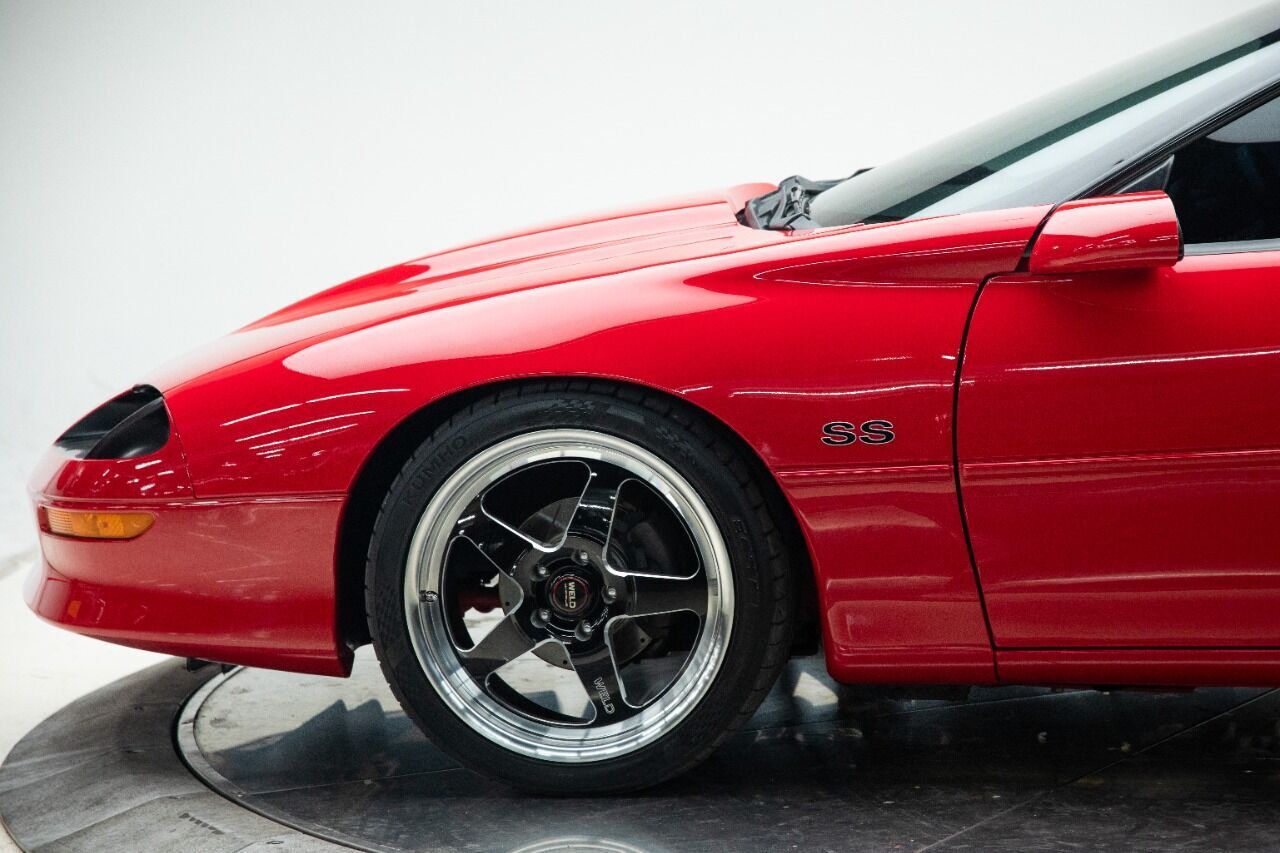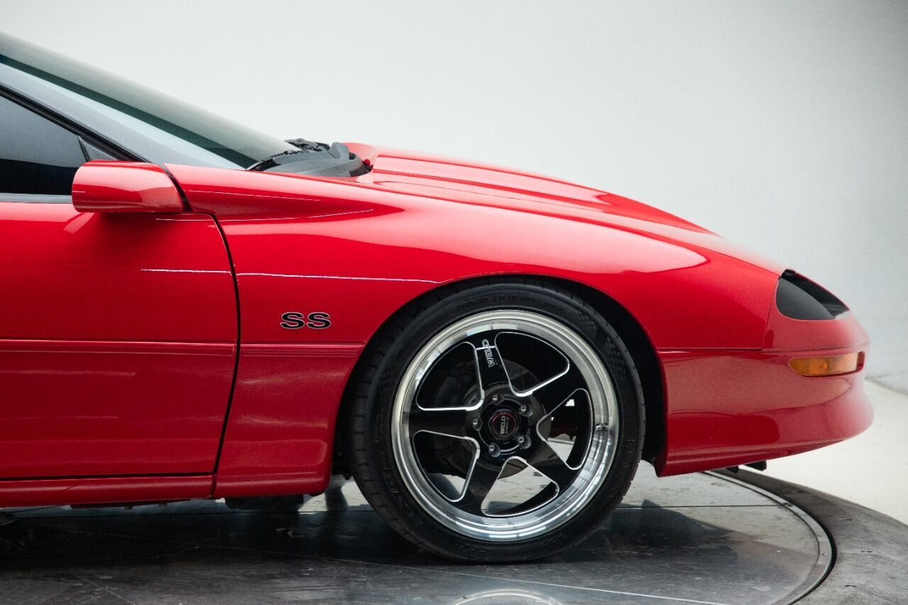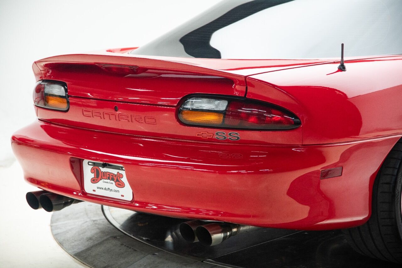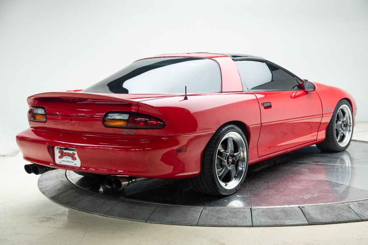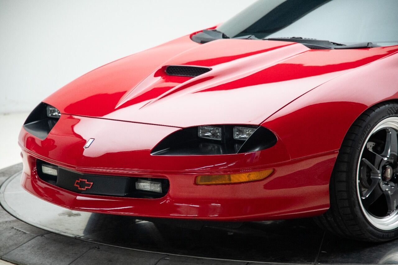 This Camaro is nicely equipped for performance and handling. To start it has pacesetter headers k8n air filter with performance hooker exhaust y-pipe with hooker chambered muffler. This give the lt1 a great sound and boosting the power to the 300hp mark with the help from the slp lt4 set up. It has full msd ignition system with 8.5mm wires, msd blaster coil and msd opti and sti super dampener balancer, aam rear differential aluminum finned cover. Appearance starts with headlight assembly depo led headlights, weld wheels Kumho ecst tires 265/35zr19 front and 305/30 zr19 rear slotted rotors, and Umi lowing springs. The dark tint glass breaks up the red for a nice touch. Handling starts with large 1/3/8 thick sway bar, Umi performance Panhard bar kit tubular subframe bars, and rear sway bar lower control arms, front strut tower brace. performance Panhard bar kit tubular subframe connector bars, and rear sway bar lower control arms. the shifting is great with the hurst shifter and knob. The double din pioneer stereo with backup camera upgraded speakers works nicely in the car and not to over the top. And SLP's '97 SS jumped to approximately 3,200 units sold through June 1997. SLP's growth peaked in July 1997 with the production of 7,900 Camaro SS, Fire hawk, and Trans Am WS6 models. The SLP engine facility in Lachine balanced, blueprinted and dyno'd 135 LT4 engines for Camaro SS and Fire hawks. 1997 Chevrolet Camaro Z28 Chevrolet originally introduced the Z28 option on the Camaro when it was first introduced and it endured throughout several major body changes over the years. The high performance version of the small block Camaro became an icon that still carries the high revving stop light to stop light mystique today. This example is a solid and great running and driving one. It is finished in the most desirable cosmetic combination with all the right options. Take advantage of a rising star in the collector car arena, get this one today and be ahead of the market then enjoy the power performance and profit from being one of the early ones with insight. It Features a Strong running 5.7 Liter V8 with Fuel Injection Smooth Shifting 6 speed transmission Newer 245-50R16 Goodyear Eagle GT Blackwall Radial Tires Correct 16 inch Alloy Wheels Center caps Tight Front End Excellent Carpets and Red and Black Interior Finished in freshly buffed and waxed Bright Red Leather Wrapped Steering Wheel Excellent Smoked Glass T Tops with Diffusion Dual Outside Rear View Mirrors Power Windows Full Dual Exhaust with correct Longitudinal Box Tips Tasteful and Subtle Pinstripes Full Console Power Locks Rear Window Defroster Front and Rear Seat Belts Factory Instrumentation Tilt Steering Column 4 Wheel ABS Power Disc Brakes Freshly Detailed Engine Bay and Trunk with Mat Jack and Spare 36K miles on the odometer In 1997, SLP Engineering took LT4 engines left over from the 1996 Corvette Grand Sport production run and installed them in 100 Camaro SS coupes. The result was one of the most powerful fourth-generation Camaros ever built: the 1997 Chevrolet Camaro 30th Anniversary SS LT4. Few, if any, of these cars ever hit the showroom floor, since they were spoken for well before getting to dealers. SLP could have simply placed the LT4 in the 30th Anniversary SS, jacked the price up almost 18 grand and called it a day. Instead, they completely disassembled, balanced, blueprinted and enhanced the engine with stress plates. From there, one out of five engines was put through its paces on a Super flow dynamometer, and every LT4 SS car was tested on a chassis dynamometer and road-tested for six miles. Performance Specs: So, other than bragging rights, what did you get by coughing up all this extra cash? For starters, you have performance exhaust, a lightweight drive shaft, Bilstein sport suspension and a Thorsen limited slip differential. Options for the LT4 SS were limited and consisted of a Level III Bilstein suspension package and Goodr