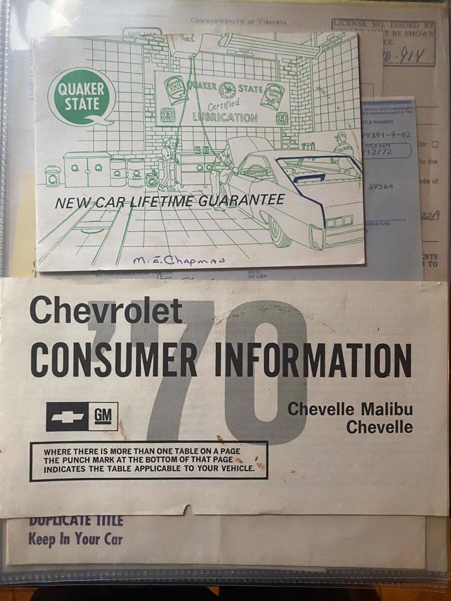 1970 CHEVROLET CHEVELLE SS 396 4/SPEED MATCH# (ONE OWNER) BUILDSHEET/ PRO-TECTO-PLATE YEAR 1970 MAKE CHEVROLET MODEL CHEVELLE SS 396 BODY COUPE COLOR CRANBERRY RED TRIM RED ENGINE 396CI/350H.P.V8 TRANS M21 4/SPEED REAR POSITRACTION 3.31 TO 1 MILES 53,001 ACTUAL (EXEMPT) SERIAL# 136370A142219 FACTORY EQUIPMENT AS1-STD FRONT HRN AOL-TINTED GLASS B37-FLOOR MATS B96-WHEEL OPENING MOULDING F41-SPECIAL PERFORMANCE SUSPENSION G80-POSITRACTION G94-331 RATIO AXLE J50-POWER BRAKES JL2-POWER DISC FRT L34-V8 396 4B M21-4/SPEED CLOSE RATIO (VERY RARE) PY4 F70X14 W/S TIRES UM1-AM RADIO /8TRACK U14-GAUGES AND TACH ZL3-SS 396 ADDED RALLY STRIPES ADDED BF GOODRICH RADIAL TIRES. SERIAL#BREAKDOWN 1-CHEVROLET 36-MALIBU 37-COUPE 0-1970 A-ATLANTA 142219-SEQENCE# COWL TAG 70-13637-70 MALIBU COUPE A-33996-ATLANTA PLANT # TRIM787-RED BENCH PAINT-75-75-RED 03B-BULT 2ND WEEK OF MARCH DOCUMENTATION *ORIGINAL WINDOW STICKER *ORIGINAL BUILD SHEETS *ORIGINAL PROTECTO PLATE *ORIGINAL OWNERS MANUAL *ORIGINAL WARRANTY BOOK *ORIGINAL DEALER MATERIALS HISTORY THIS ONE OWNER 1970 CHEVELLE WAS BOUGHT NEW AT HUTCHENS CHEVROLET IN NEWPORT NEWS VA. ON APRIL 20 1970. THIS COULD BE ONE OF THE RAREST 1970 CHEVELLE IN . THE CAR HAS (11) MILES PUT ON A BODY OFF RESTORATION WITH ATTENTION TO DETAIL. ALL MATCHING NUMBER ENGINE AND TRANS, THE CAR IS A WORK OF ART. ADDED BF GOODRICH RADIAL TIRES IN PLACE OF ORIGINAL W/W BIAS PLY TIRES.