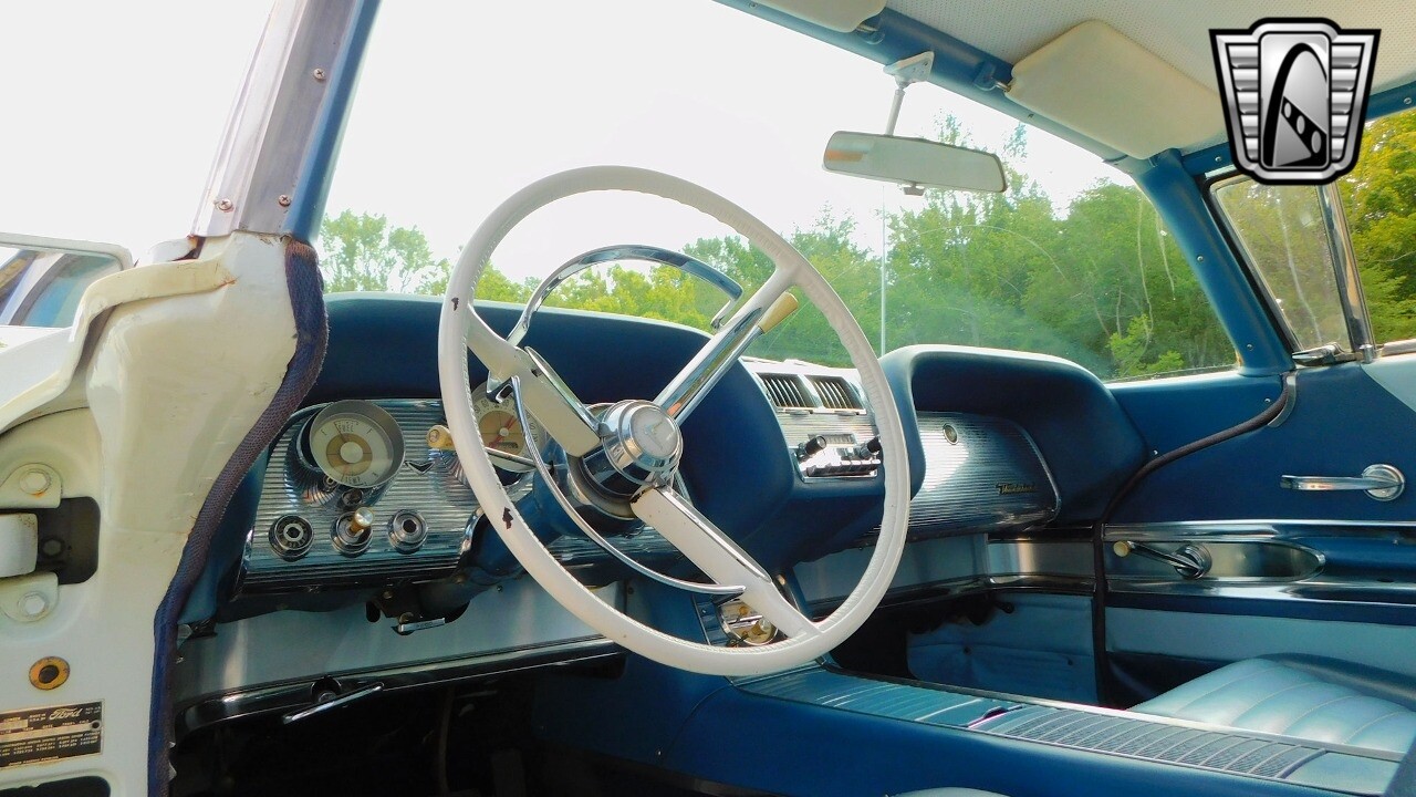 Offered in a stunning light blue exterior that complements its stylish blue vinyl interior, this vintage beauty is powered by a robust V8 engine paired with an automatic transmission, offering a smooth and powerful driving experience. Inside, the Thunderbird is equipped with a range of features including air conditioning, AM/FM radio, power brakes, power steering, and seatbelts.
