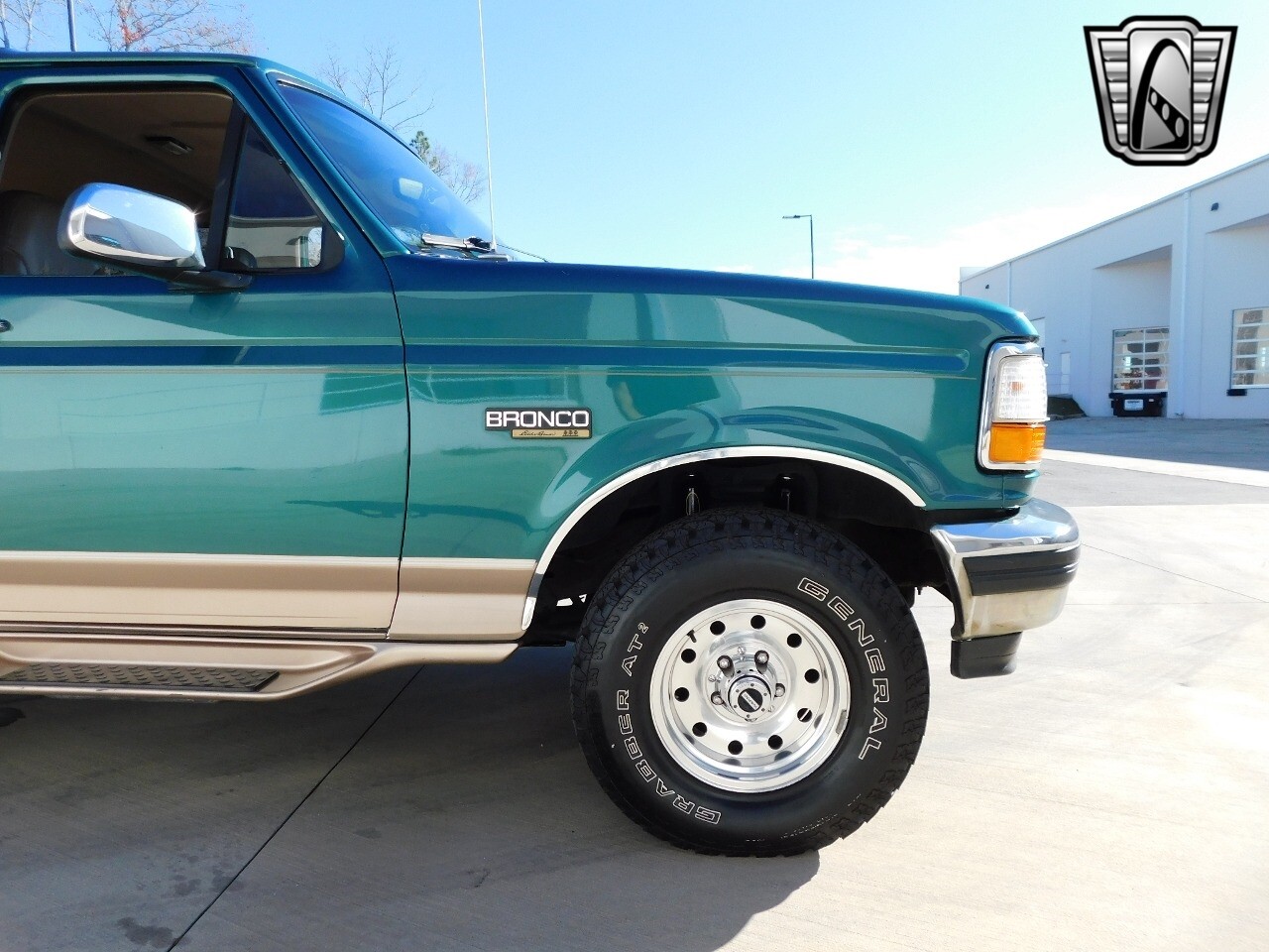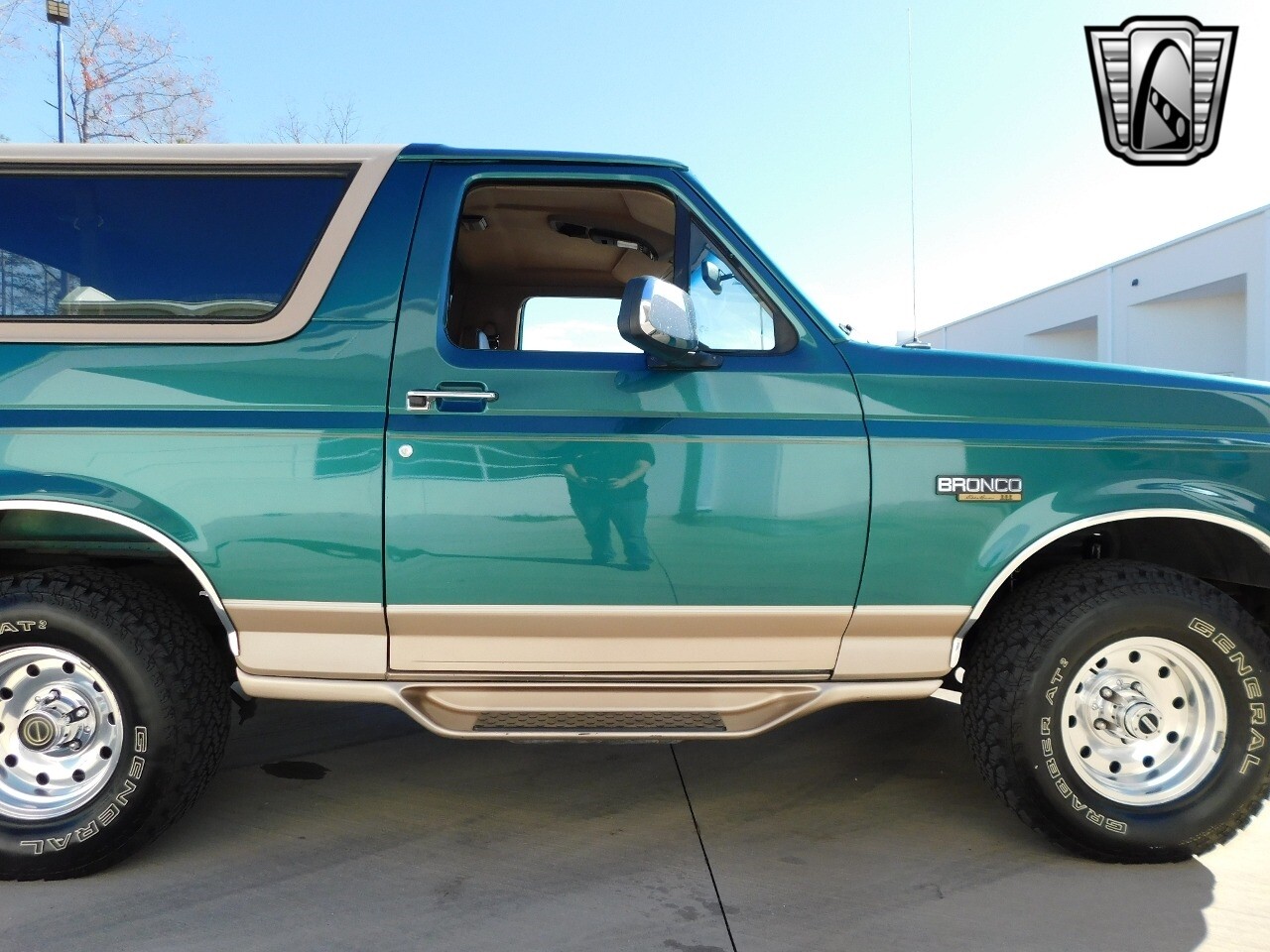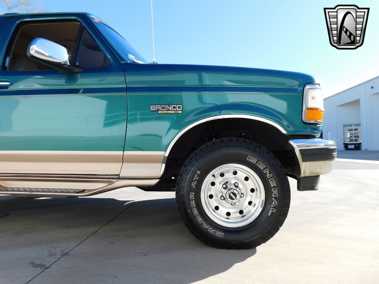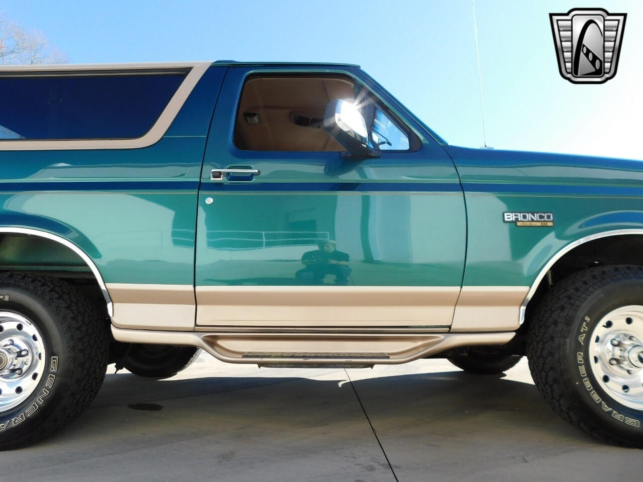 Step into a world of classic style and comfort with this 1996 Ford Bronco Eddie Bauer edition. This vehicle is a timeless beauty, boasting a unique green/beige exterior that totally complements its luxurious beige leather interior.