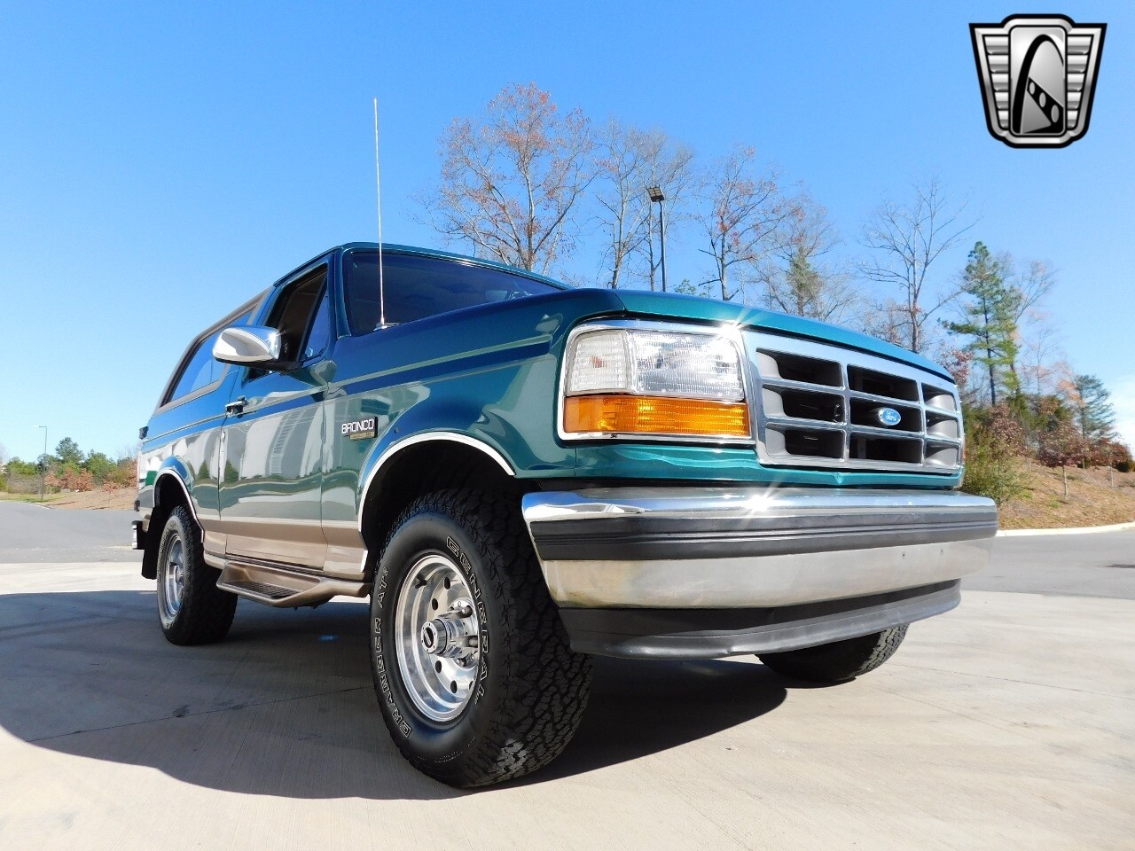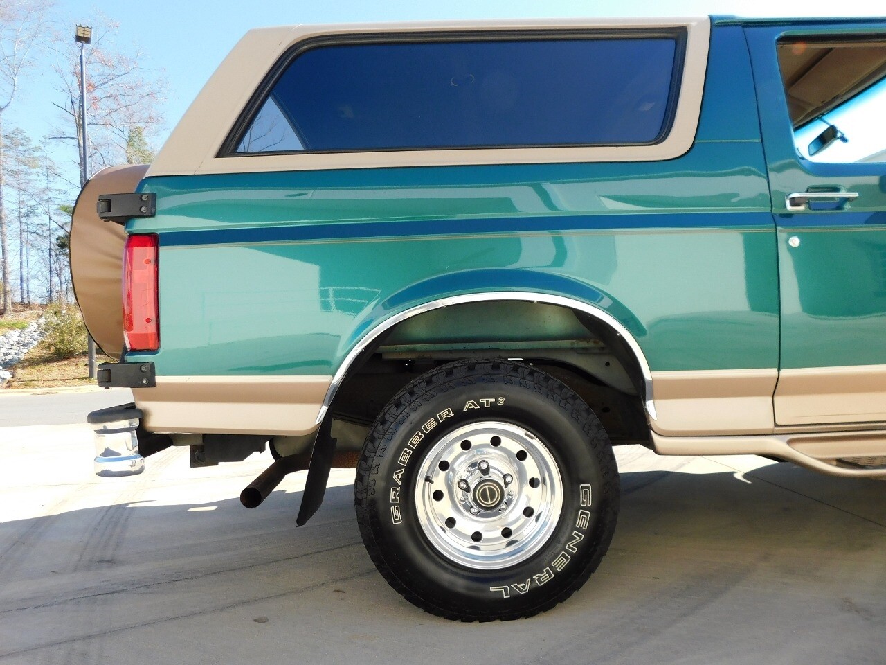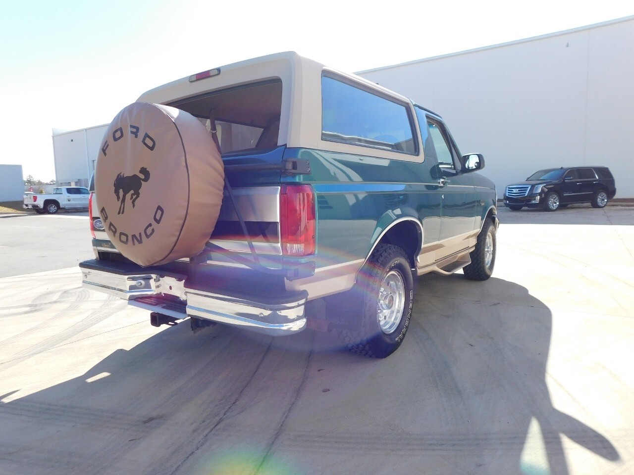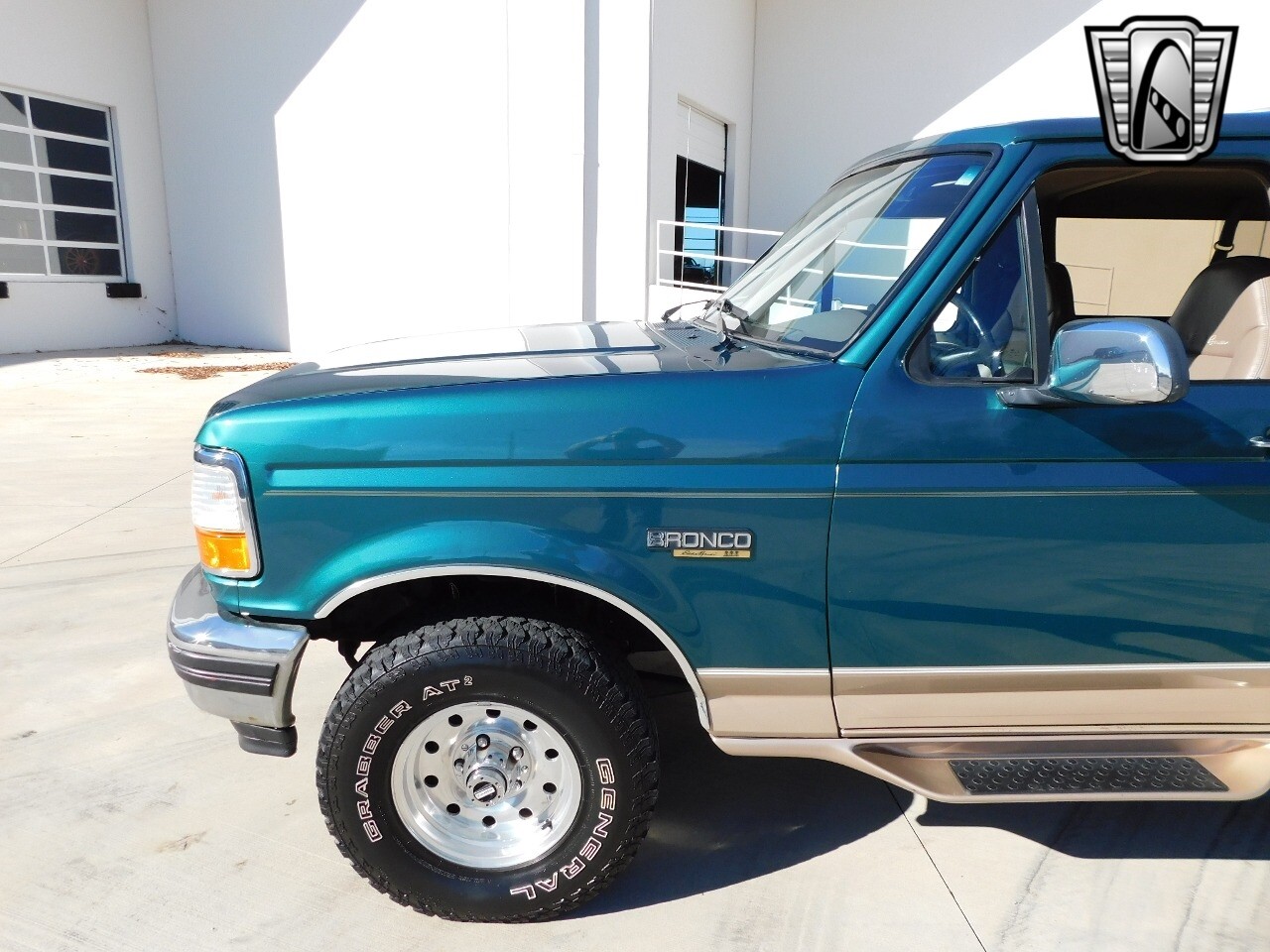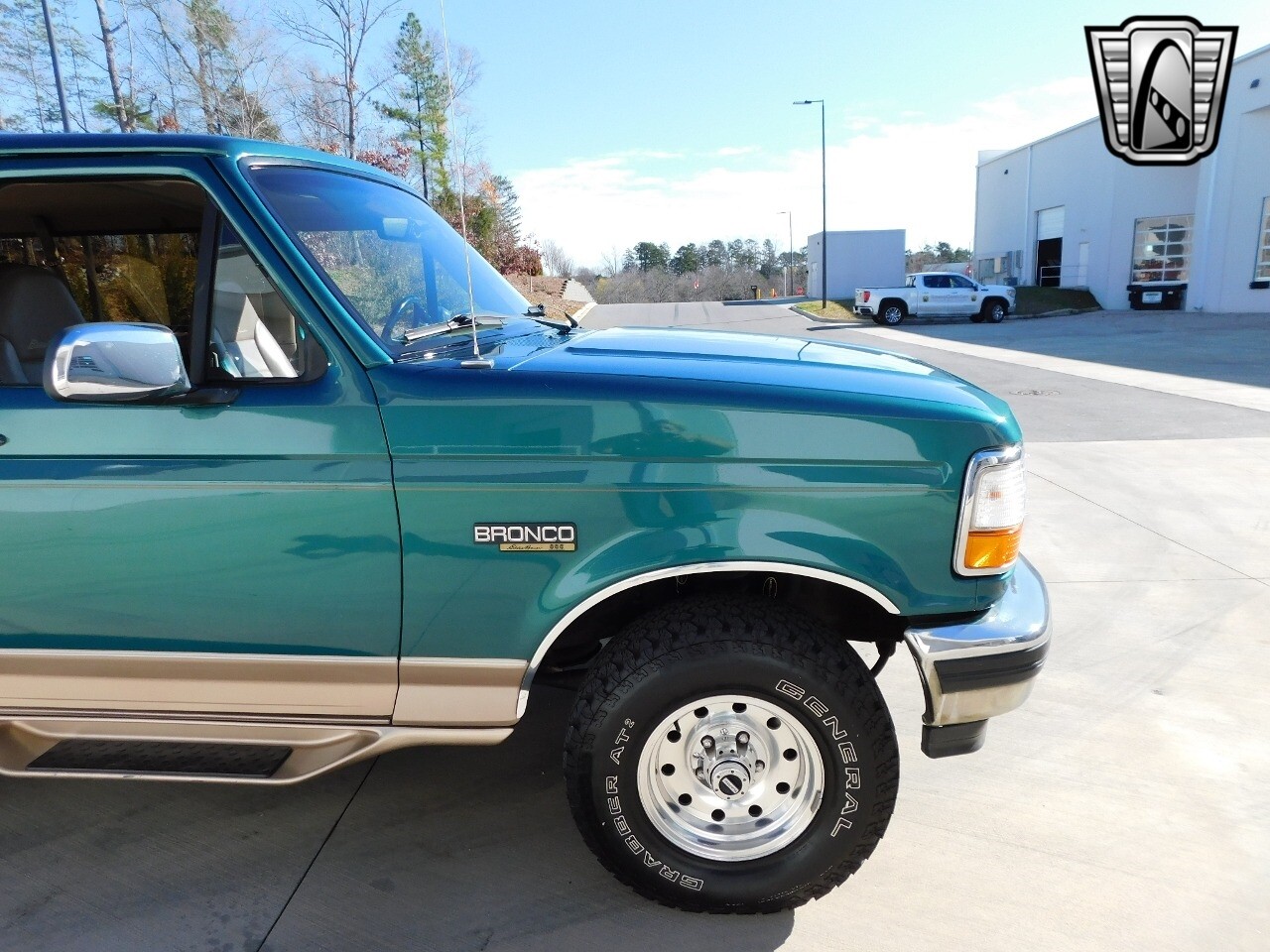 Step into a world of classic style and comfort with this 1996 Ford Bronco Eddie Bauer edition. This vehicle is a timeless beauty, boasting a unique green/beige exterior that totally complements its luxurious beige leather interior.