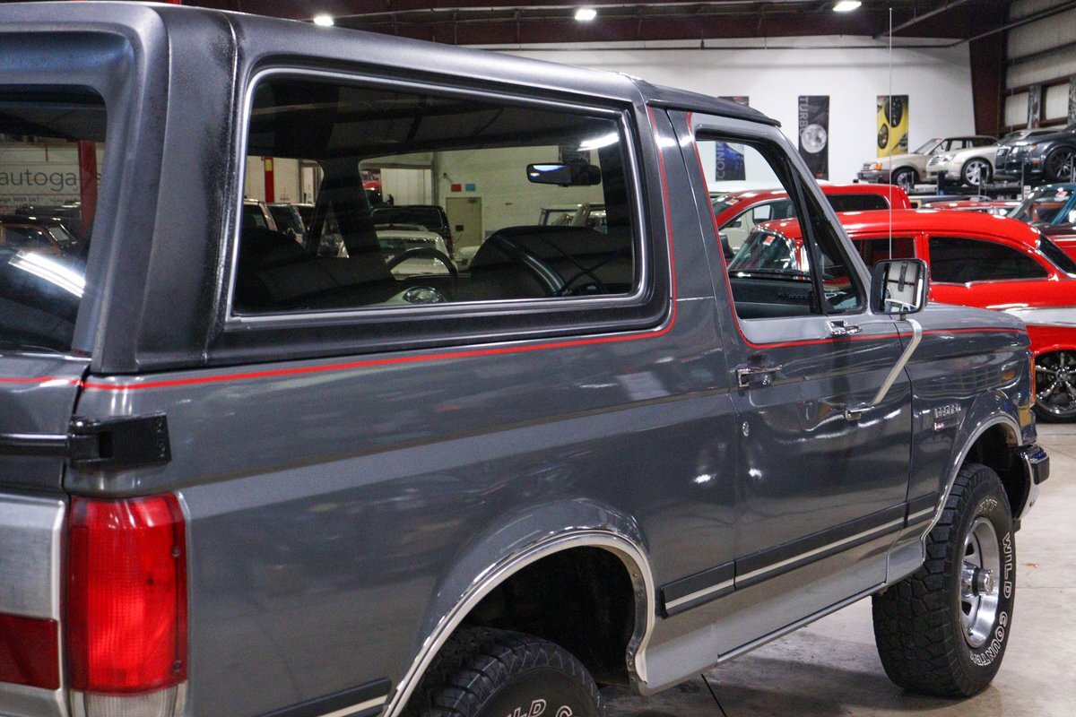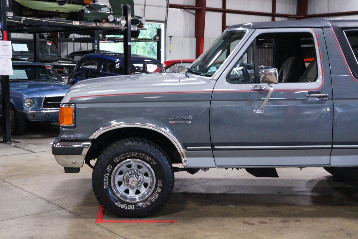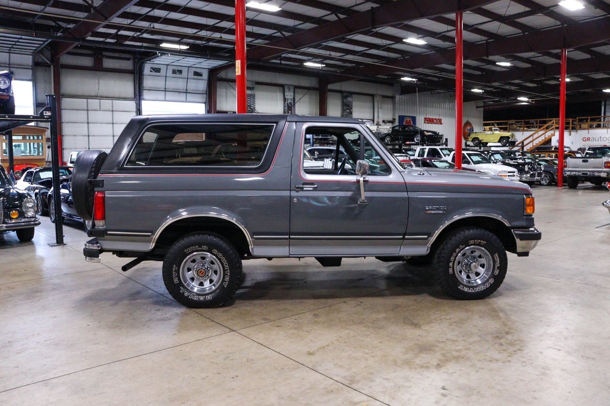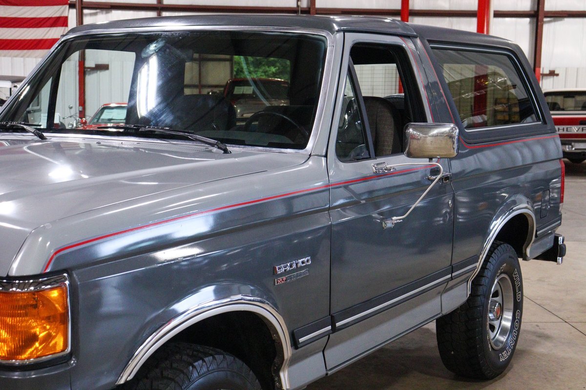 GR Auto Gallery is pleased to present this 1990 Ford Bronco XLT for your consideration. With its iconic styling and rugged capability, this classic SUV embodies the adventurous spirit of the Bronco lineage. Sporting a captivating Light Smoke Metallic paint, this Bronco stands out, complemented by a black removable hardtop that allows for an exhilarating open-air driving experience.