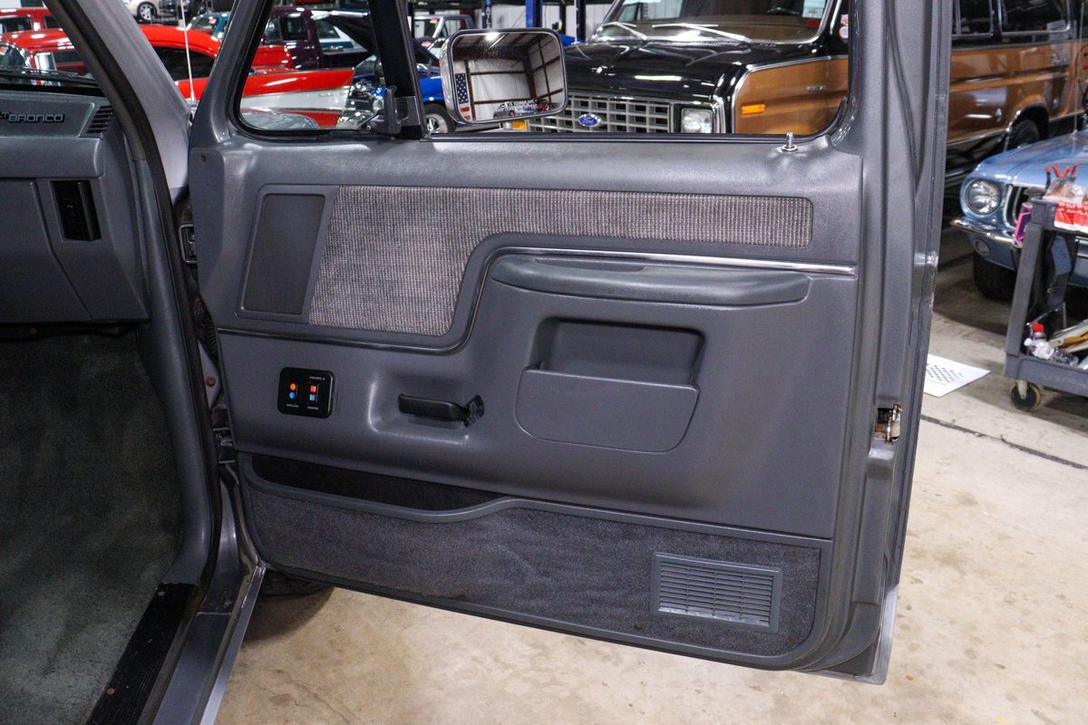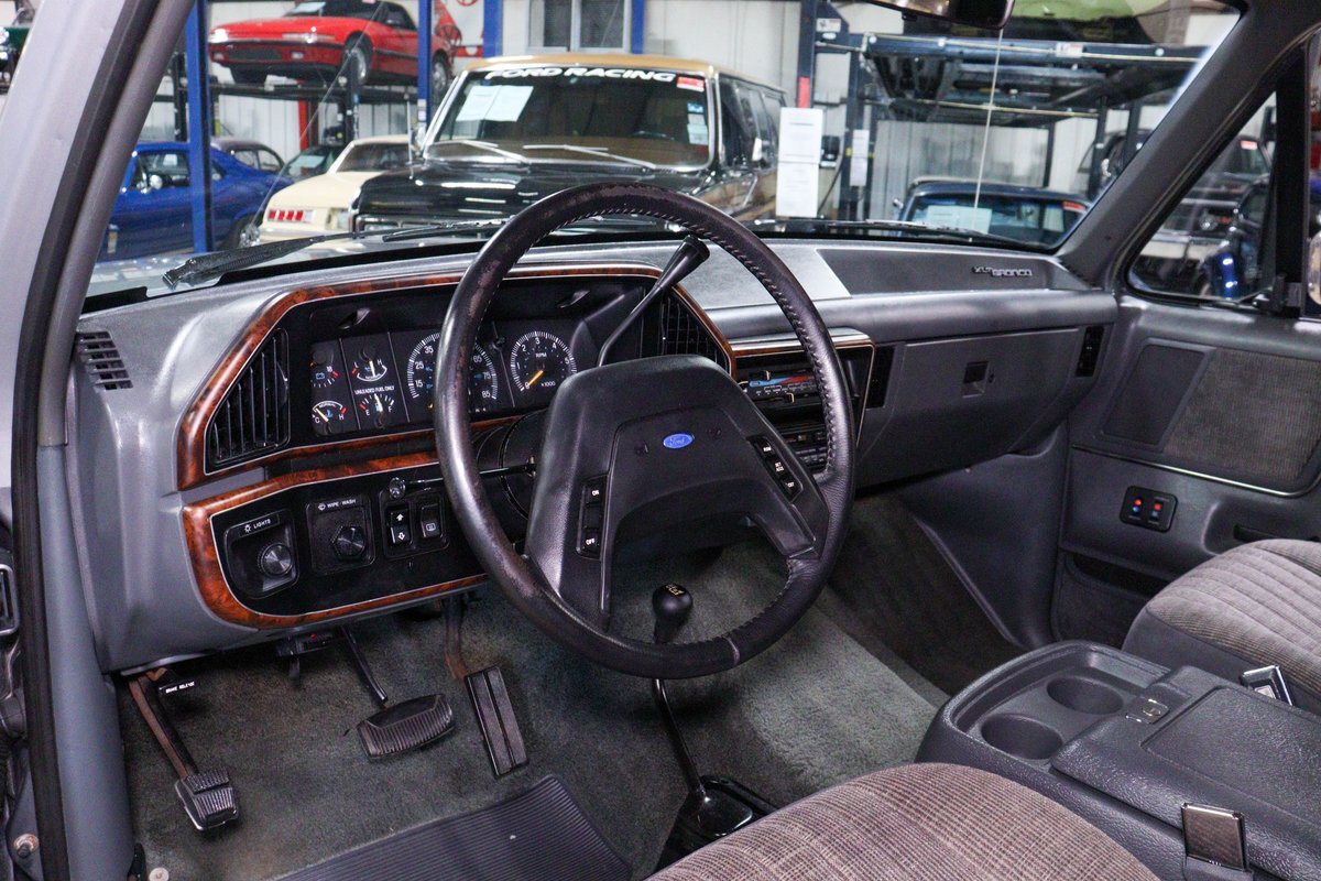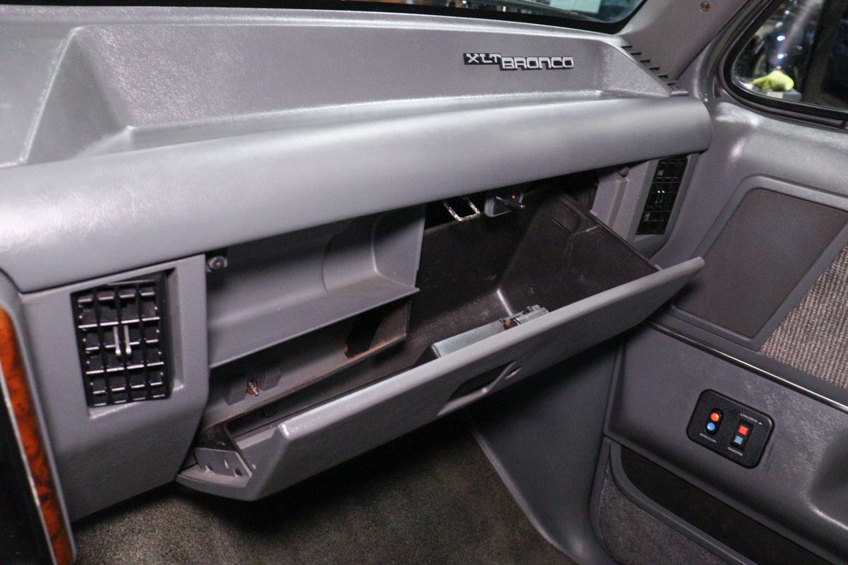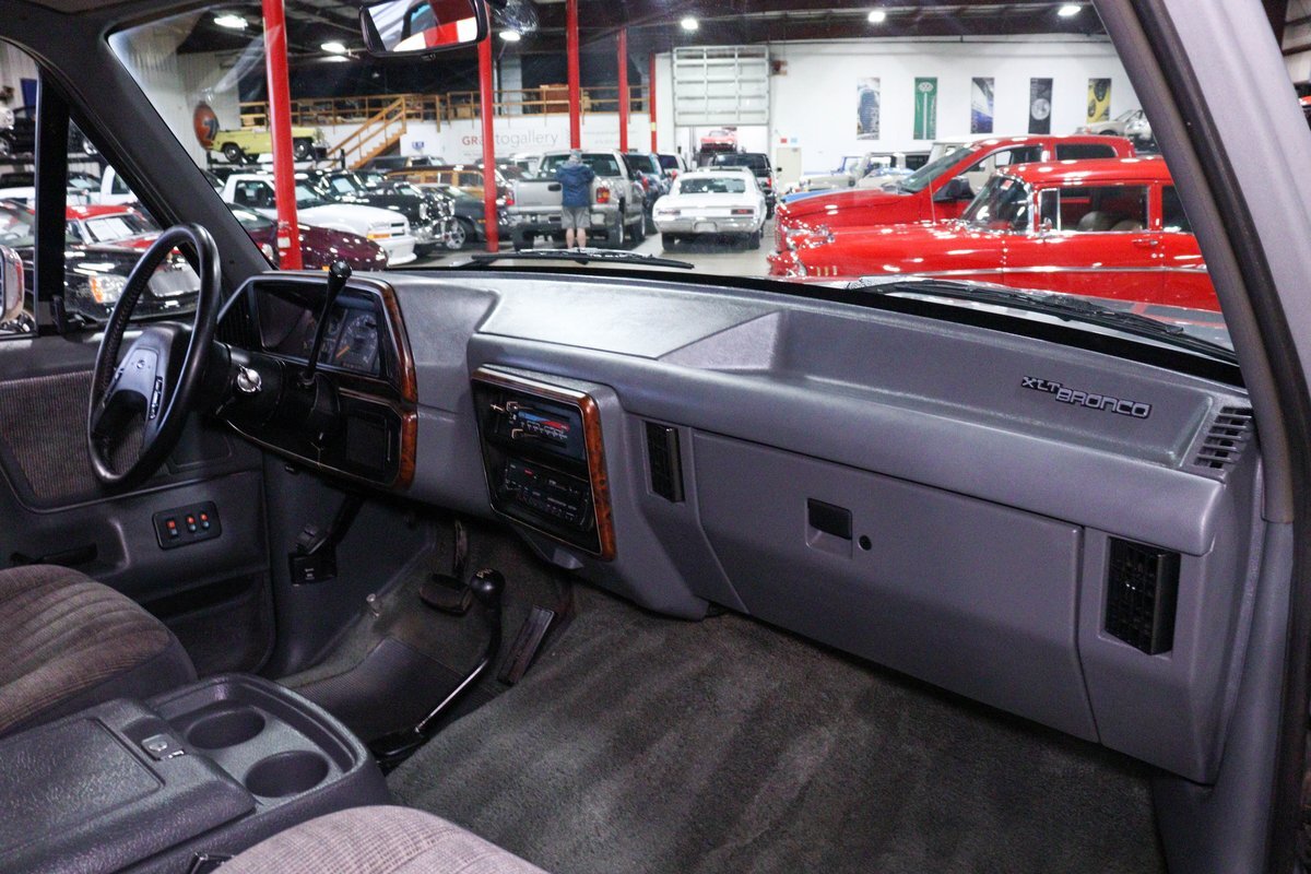 Inside, the Bronco XLT features a gray cloth interior that adds a touch of comfort and practicality. The dashboard is adorned with faux wood trim, giving the cabin a classic, refined look. Equipped with power windows and power locks, this Bronco offers convenience and ease of use.