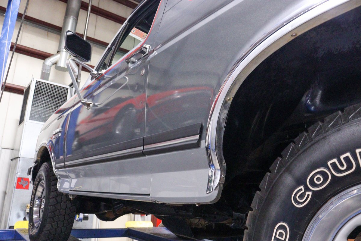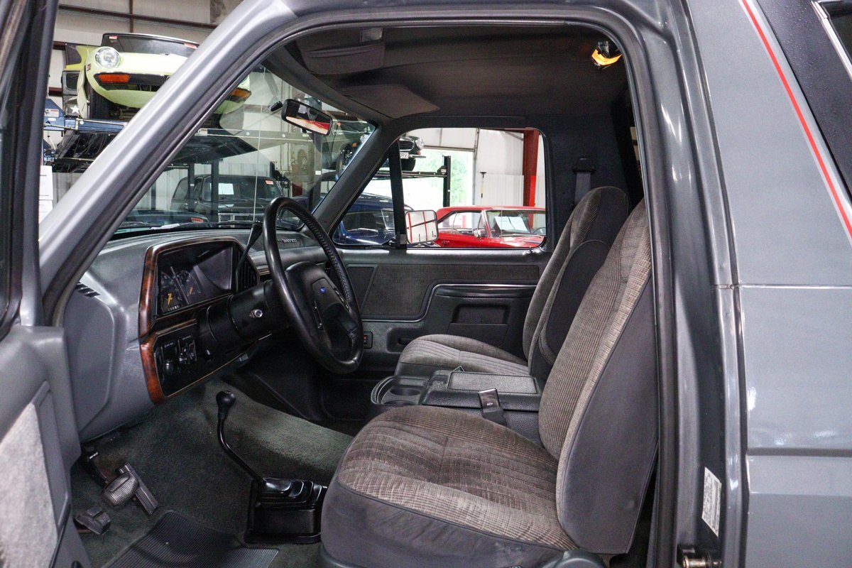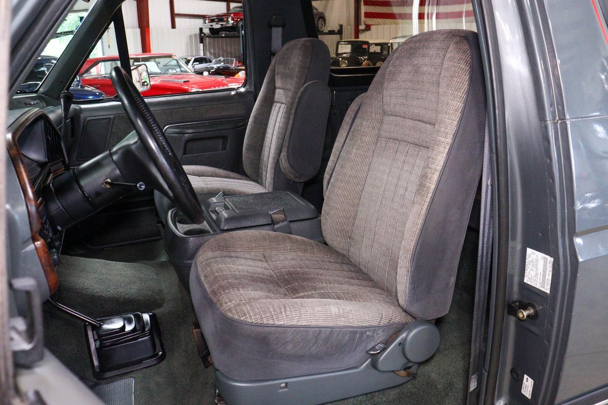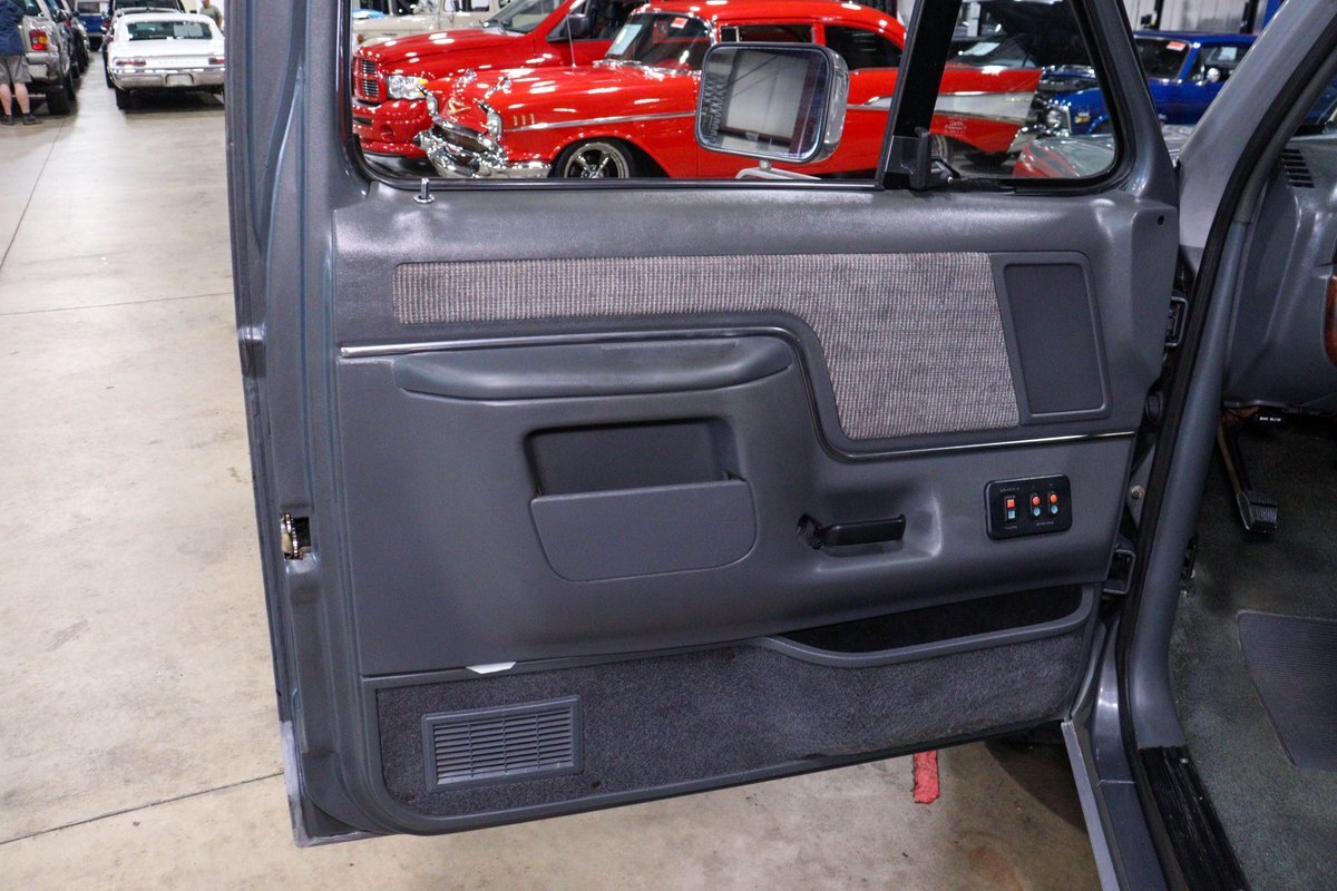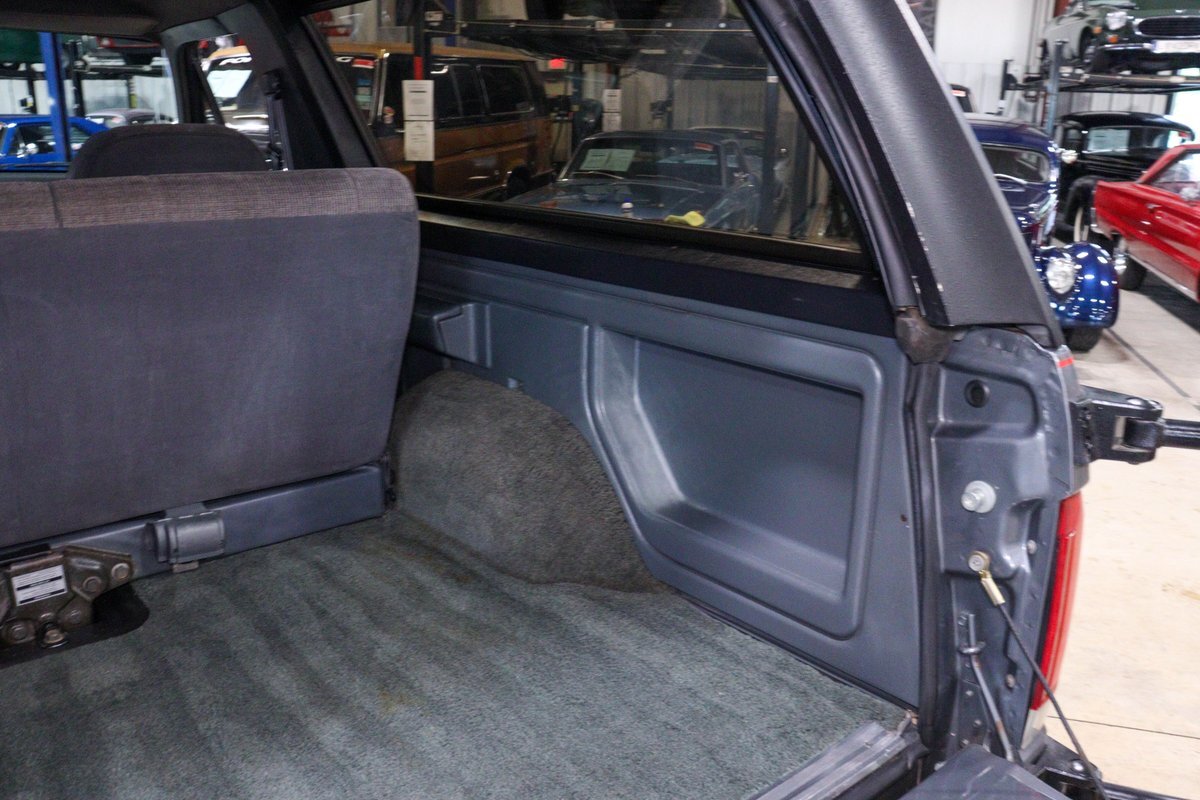 Inside, the Bronco XLT features a gray cloth interior that adds a touch of comfort and practicality. The dashboard is adorned with faux wood trim, giving the cabin a classic, refined look. Equipped with power windows and power locks, this Bronco offers convenience and ease of use.