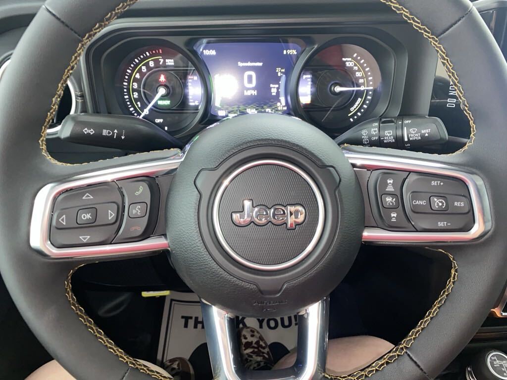 2.0L I4 DOHC, 12.3 Touchscreen Display, 4G LTE Wi-Fi Hot Spot, ABS brakes, Active Cruise Control, Alloy wheels, Alpine Premium Audio System, Apple CarPlay, Auto-Dimming Rear-View Mirror, Compass, Connected Travel & Traffic Services, Connectivity - US/Canada, Disassociated Touchscreen Display, Electronic Stability Control, Front dual zone A/C, Google Android Auto, GPS Navigation, HD Radio, Heated door mirrors, Heated Front Seats, Illuminated entry, Integrated Center Stack Radio, Integrated Off-Road Camera, Integrated Voice Command w/Bluetooth, Low tire pressure warning, ParkView Rear Back-Up Camera, Passenger door bin, Quick Order Package 29P Sahara, Radio: Uconnect 5 Nav w/12.3 Display, Remote keyless entry, SiriusXM Radio Service, SiriusXM w/360L, Technology Group, Traction control, Universal Garage Door Opener. 4WD 2.0L I4 DOHC