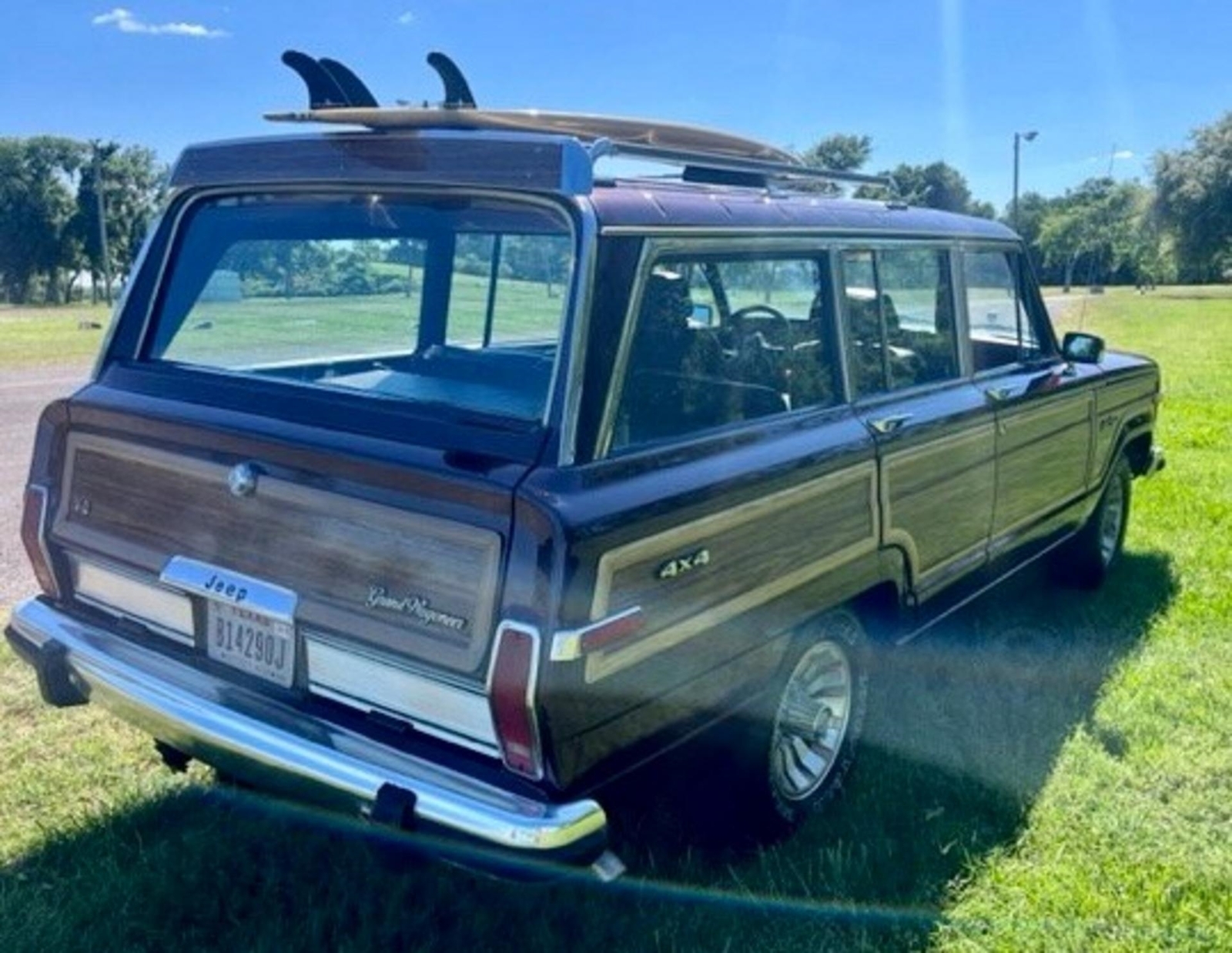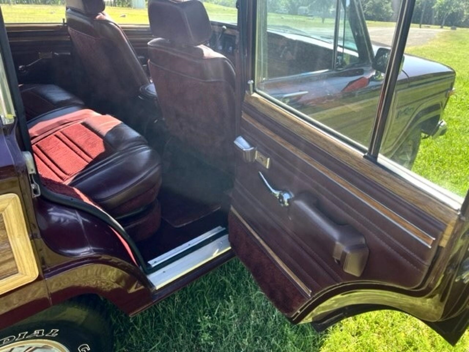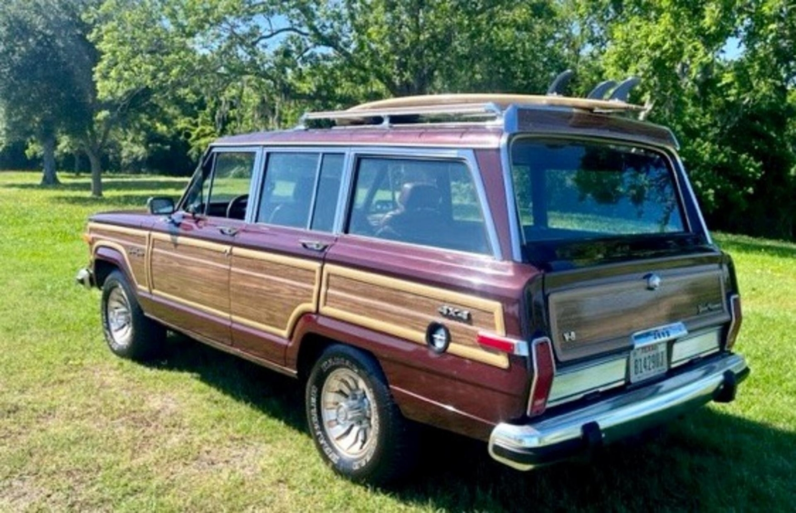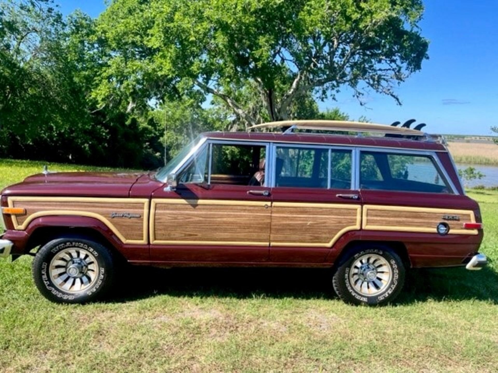1987 JeepGrand Wagoneer SJ (Woody) 4 x 4 Survivor with extensive maintenance & parts repair/ replacement. The Jeep Grand Wagoneer was a variant of the Jeep Wagoneer produced between 1984 and 1991 as a replacement to the Wagoneer Limited. A four-door body style, w/ wood-grain paneling and set the standard for SUVs in the '80s. The Grand Wagoneer evolved under AMC and then Chrysler. 1987 Was the 1st year powerful 5.9L V8 powerplant option. 4 x 4 Matching # 360 5.9 L V8. 144 gross horsepower SAE. 340 foot lbs torque. 8.25:1 compression ratio. 2-barrel carburetor. 8.25:1 compression ratio 2 -barrel carburetor. Matching # Transmission Model 727, 3-speed automatic column shift. Transfer case Selec-Trac 2WD/4WD system, NP229 with shift-on-the-fly capability; includes low-range (2.6:1). Brakes Power front disc and rear drum. Steering Recirculating ball type; variable ratio power assist standard,16:1 to 13:1; turning diameter 37.7 ft. Suspension Front: Type Dana model 44 full-floating solid axle. Multi-leaf special springs. Standard axle ratio 2.73:1 Rear: Type AMC semi-floating solid axle. 20.3 gallon capacity with skid plate. 12-volt Heavy-Duty Alternator. Tires P235/75R15 with full size spare. 15x7 cast aluminum (12 spoke/6-lug) Mag Wheels. Interior features Burgundy leather and cloth through out, power front bucket seats w/ headrests and fold down arm rest / 3 middle seat. Power rear seats. Manual adjust drivers side door mirror. Power sunroof. Beautiful mock wood grain accents. Gauges. Factory AC. Paint & Body - Burgundy (Original) presents beautifully. Bumper guards front & rear. Front fog lights with covers. Good lines gaps body fit. Believed to be all original sheet metal. All four doors, hatch & hood open and close perfectly. Same owner last 8 years. Survivor with numerous parts repaired and replaced. Driven very little only in sunlight. Roughly ~ 1500 miles driven since purchase. The previous owner treated it the same way. Normal use during the ‘80s and ‘90s, but then treated and driven as the spectacular vehicle she is. Drivetrain update around ~ 100k miles (engine and transmission overhaul). No records but the condition and superb running and handling back this up. 141k showing on the odometer when purchased, now shows ~ 142.7k. Owned and maintained by a meticulous restoration expert and collector. Original radiator tanked and rodded, all new cooling hoses, new thermostat and fan clutch installed. This engine runs on the lower end of cool in the ‘blue’ zone. The oil pressure runs over 75 psi. 85% new factory AC system installed, original factory compressor remains which was still functioning perfectly. AC blows ice cold. New shocks front and rear, new tires, new exhaust from front to back. New fuel sending unit and battery installed this month and oil change, upgraded stereo system with a hidden sub-woofer and new speakers in the original speaker grills appears stock. All oil leaks repaired. Very small place of paint bubbling on the front left section in front of the left front tire, (see picture). Was there when purchased, hasn’t changed in 8 years. Rear tail gate woodgrain trim repainted, (replacement rear hatch woodgrain trim included). Sunroof works great and everything else works as it should. All windows work, the rear two rear seats operate a little slower than normal, but still work fine. One blinker (left) does not auto stop (on dash) after a turn. 4WD engages & works, but never driven in four-wheel-drive on dirt roads, etc.. this owner. The Wagoneer stayed in production for 29 model years (1963–1991) with an almost unchanged body style making it the third longest-produced single generation car in U.S. automotive history. Heavy-Duty Tires P235/75R15 with full size spare. Wheels 15x7 cast aluminum (12 spoke/6-lug). Looks, runs, handles fantastic. *** Surf Board Not Included ***. While we do our best to provide the highest quality muscle cars with an honest and reliable description and realize the importance of transparency when selling vehicles. That being said, we have not built, modified, changed or personally owned this vehicle. Whether this vehicle is consigned or owned by Past & Present Motor Cars we do not know the vehicles complete history since new. We want to be clear and try to answer any questions our customers might have prior to purchasing. Additionally, we not only welcome but we encourage 3rd party independent inspections. Please inquire prior to purchase to make sure the advertised vehicle has not already been sold. We list our vehicles on multiple websites and a vehicle can sell at any time. If a customer chooses to purchase sight unseen (many of our customers choose this option) the customer accepts the vehicle AS IS and WHERE IS and understands we cannot address concerns after purchase. For this reason, it's important all concerns are addressed prior to purchase. We make every effort to present accurate and reliable information, but use of this information is voluntary, and should only be deemed reliable after an independent review of its accuracy, completeness, and timeliness. It is the sole responsibility of the customer to verify the existence of options, accessories and the vehicle condition before time of sale. Financing is Available with low rates and Vehicle Shipping is available from our Showroom to your Garage. A Classic Car Warranty is Available for Purchase from a 3rd Party. Please speak to our Sales Associate or Company Representative for more information. Our team is working and available anytime by Phone or Text for your convenience at407-559-7759. Thank you for your interest! This vehicle is on consignment and out of state. Call Sales Person to make arrangements to view.