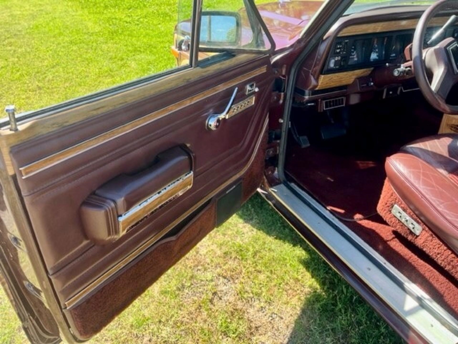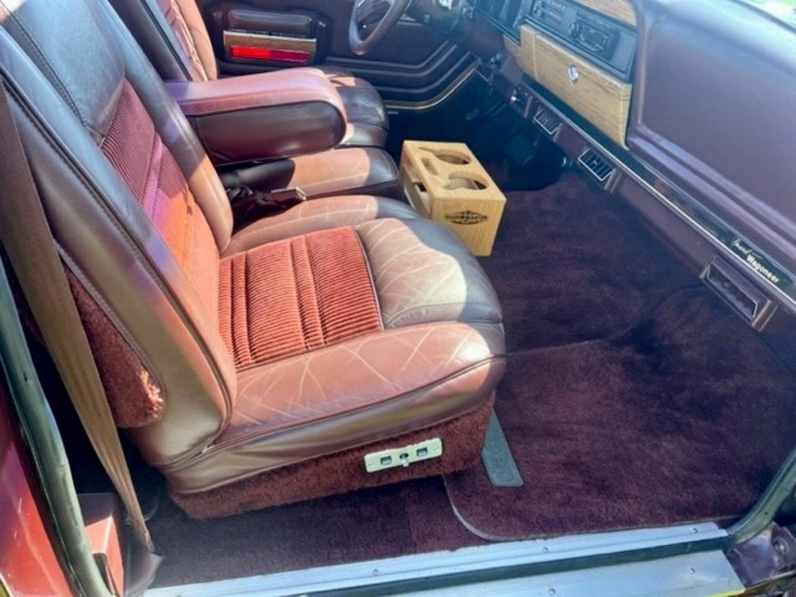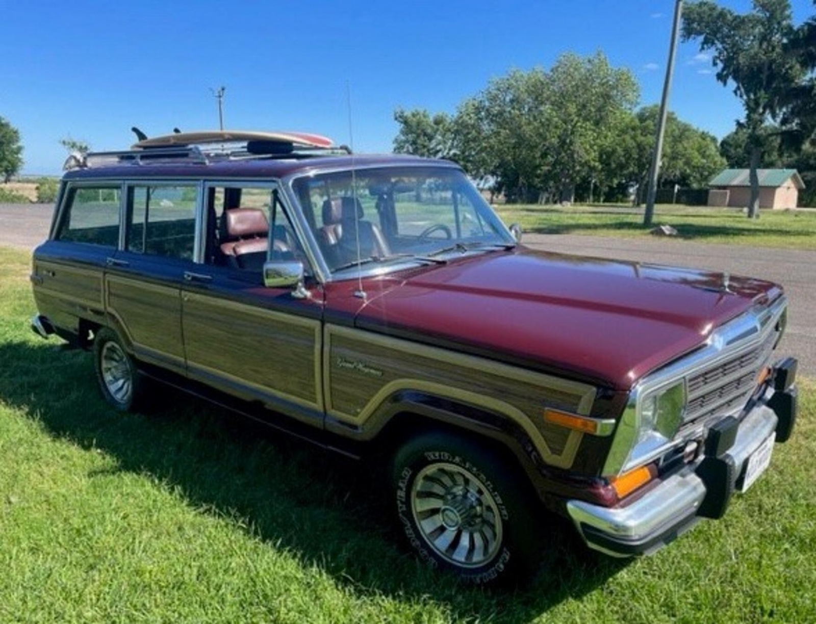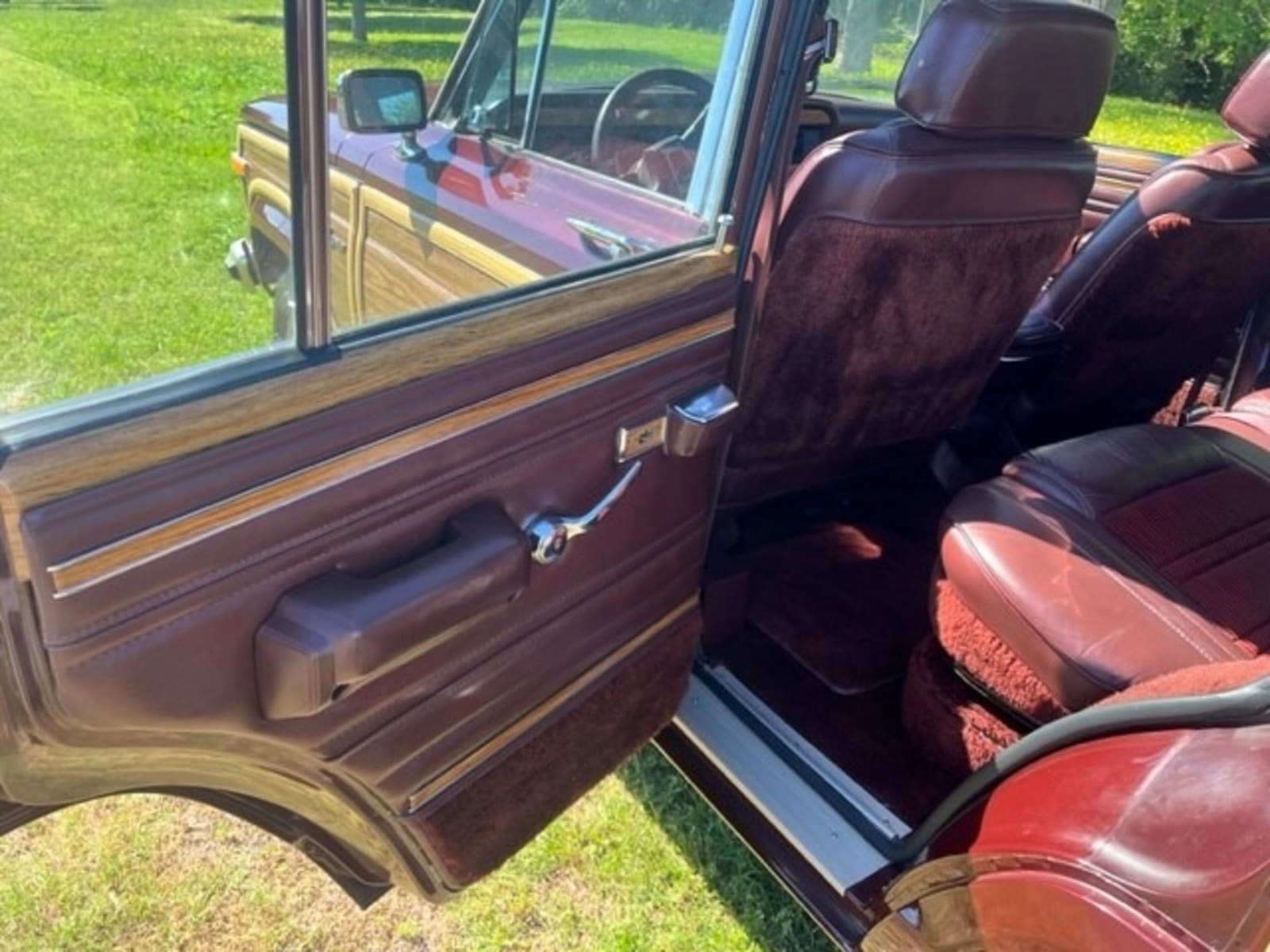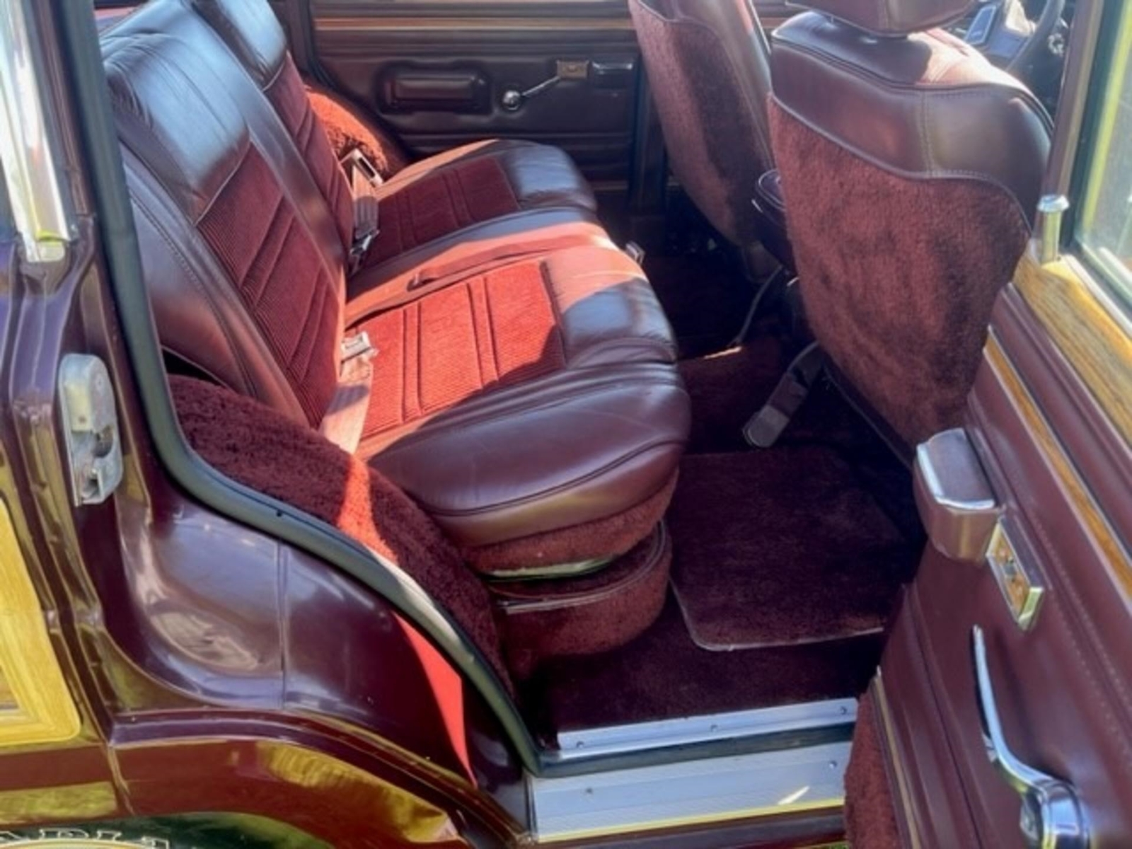 1987 JeepGrand Wagoneer SJ (Woody) 4 x 4 Survivor with extensive maintenance & parts repair/ replacement. The Jeep Grand Wagoneer was a variant of the Jeep Wagoneer produced between 1984 and 1991 as a replacement to the Wagoneer Limited. A four-door body style, w/ wood-grain paneling and set the standard for SUVs in the '80s. The Grand Wagoneer evolved under AMC and then Chrysler. 1987 Was the 1st year powerful 5.9L V8 powerplant option. 4 x 4 Matching # 360 5.9 L V8. 144 gross horsepower SAE. 340 foot lbs torque. 8.25:1 compression ratio. 2-barrel carburetor. 8.25:1 compression ratio 2 -barrel carburetor. Matching # Transmission Model 727, 3-speed automatic column shift. Transfer case Selec-Trac 2WD/4WD system, NP229 with shift-on-the-fly capability; includes low-range (2.6:1). Brakes Power front disc and rear drum. Steering Recirculating ball type; variable ratio power assist standard,16:1 to 13:1; turning diameter 37.7 ft. Suspension Front: Type Dana model 44 full-floating solid axle. Multi-leaf special springs. Standard axle ratio 2.73:1 Rear: Type AMC semi-floating solid axle. 20.3 gallon capacity with skid plate. 12-volt Heavy-Duty Alternator. Tires P235/75R15 with full size spare. 15x7 cast aluminum (12 spoke/6-lug) Mag Wheels. Interior features Burgundy leather and cloth through out, power front bucket seats w/ headrests and fold down arm rest / 3 middle seat. Power rear seats. Manual adjust drivers side door mirror. Power sunroof. Beautiful mock wood grain accents. Gauges. Factory AC. Paint & Body - Burgundy (Original) presents beautifully. Bumper guards front & rear. Front fog lights with covers. Good lines gaps body fit. Believed to be all original sheet metal. All four doors, hatch & hood open and close perfectly. Same owner last 8 years. Survivor with numerous parts repaired and replaced. Driven very little only in sunlight. Roughly ~ 1500 miles driven since purchase. The previous owner treated it the same way. Normal use during the ‘80s and ‘90s, but then treated and driven as the spectacular vehicle she is. Drivetrain update around ~ 100k miles (engine and transmission overhaul). No records but the condition and superb running and handling back this up. 141k showing on the odometer when purchased, now shows ~ 142.7k. Owned and maintained by a meticulous restoration expert and collector. Original radiator tanked and rodded, all new cooling hoses, new thermostat and fan clutch installed. This engine runs on the lower end of cool in the ‘blue’ zone. The oil pressure runs over 75 psi. 85% new factory AC system installed, original factory compressor remains which was still functioning perfectly. AC blows ice cold. New shocks front and rear, new tires, new exhaust from front to back. New fuel sending unit and battery installed this month and oil change, upgraded stereo system with a hidden sub-woofer and new speakers in the original speaker grills appears stock. All oil leaks repaired. Very small place of paint bubbling on the front left section in front of the left front tire, (see picture). Was there when purchased, hasn’t changed in 8 years. Rear tail gate woodgrain trim repainted, (replacement rear hatch woodgrain trim included). Sunroof works great and everything else works as it should. All windows work, the rear two rear seats operate a little slower than normal, but still work fine. One blinker (left) does not auto stop (on dash) after a turn. 4WD engages & works, but never driven in four-wheel-drive on dirt roads, etc.. this owner. The Wagoneer stayed in production for 29 model years (1963–1991) with an almost unchanged body style making it the third longest-produced single generation car in U.S. automotive history. Heavy-Duty Tires P235/75R15 with full size spare. Wheels 15x7 cast aluminum (12 spoke/6-lug). Looks, runs, handles fantastic. *** Surf Board Not Included ***. While we do our best to provide the highest quality muscle cars with an honest and reliable description and realize the importance of transparency when selling vehicles. That being said, we have not built, modified, changed or personally owned this vehicle. Whether this vehicle is consigned or owned by Past & Present Motor Cars we do not know the vehicles complete history since new. We want to be clear and try to answer any questions our customers might have prior to purchasing. Additionally, we not only welcome but we encourage 3rd party independent inspections. Please inquire prior to purchase to make sure the advertised vehicle has not already been sold. We list our vehicles on multiple websites and a vehicle can sell at any time. If a customer chooses to purchase sight unseen (many of our customers choose this option) the customer accepts the vehicle AS IS and WHERE IS and understands we cannot address concerns after purchase. For this reason, it's important all concerns are addressed prior to purchase. We make every effort to present accurate and reliable information, but use of this information is voluntary, and should only be deemed reliable after an independent review of its accuracy, completeness, and timeliness. It is the sole responsibility of the customer to verify the existence of options, accessories and the vehicle condition before time of sale. Financing is Available with low rates and Vehicle Shipping is available from our Showroom to your Garage. A Classic Car Warranty is Available for Purchase from a 3rd Party. Please speak to our Sales Associate or Company Representative for more information. Our team is working and available anytime by Phone or Text for your convenience at407-559-7759. Thank you for your interest! This vehicle is on consignment and out of state. Call Sales Person to make arrangements to view.
