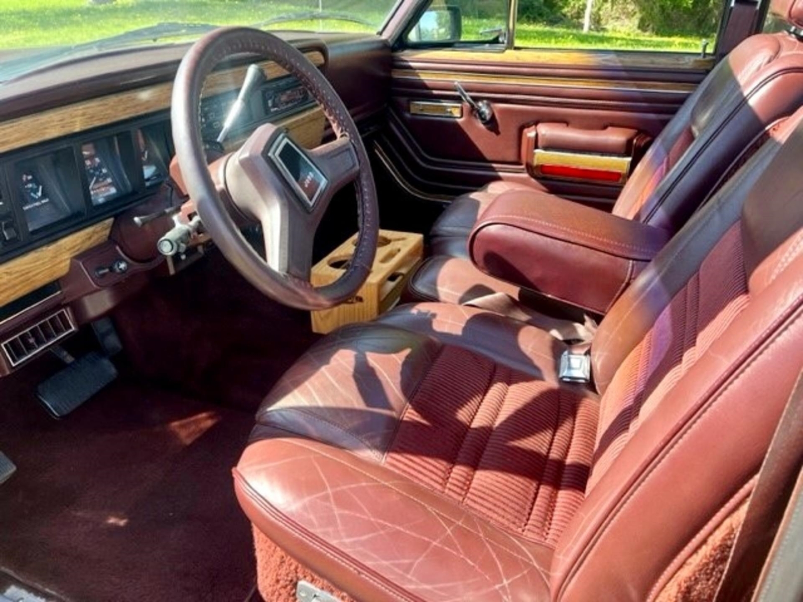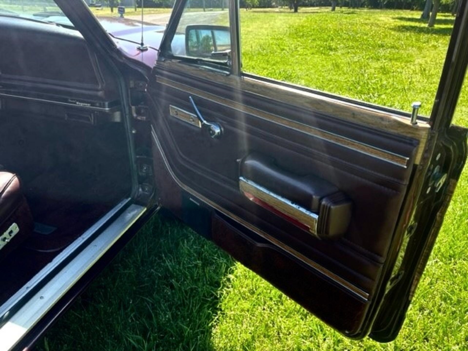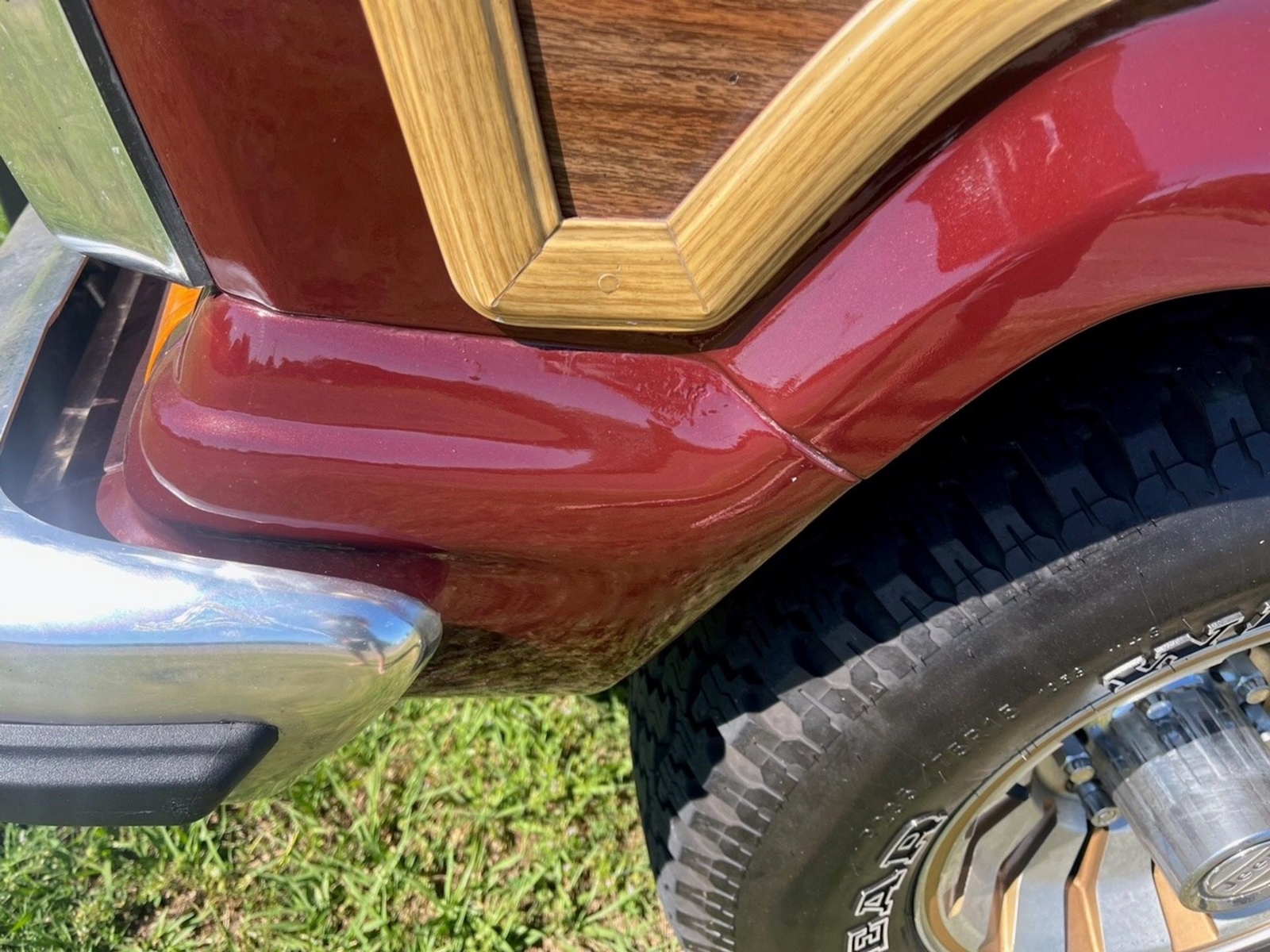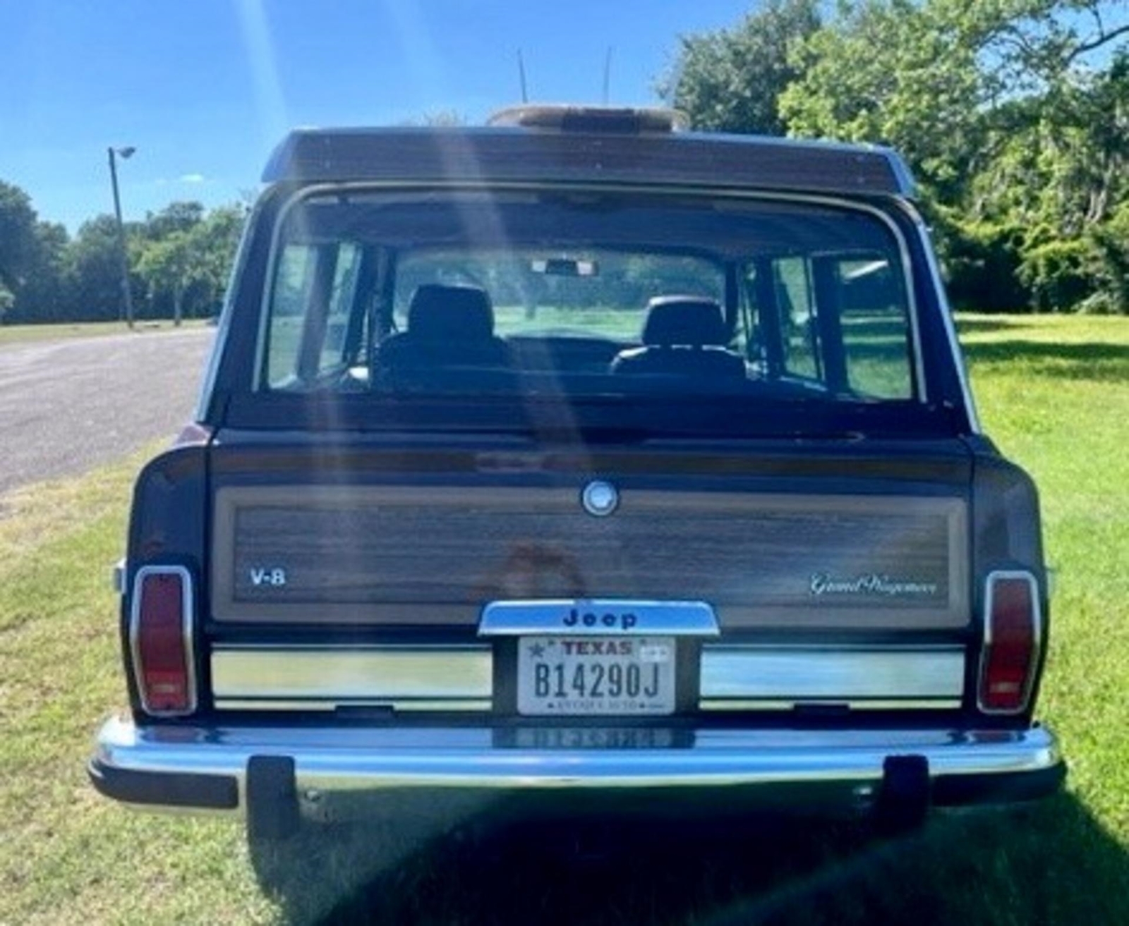 1987 JeepGrand Wagoneer SJ (Woody) 4 x 4 Survivor with extensive maintenance & parts repair/ replacement. The Jeep Grand Wagoneer was a variant of the Jeep Wagoneer produced between 1984 and 1991 as a replacement to the Wagoneer Limited. A four-door body style, w/ wood-grain paneling and set the standard for SUVs in the '80s. The Grand Wagoneer evolved under AMC and then Chrysler. 1987 Was the 1st year powerful 5.9L V8 powerplant option. 4 x 4 Matching # 360 5.9 L V8. 144 gross horsepower SAE. 340 foot lbs torque. 8.25:1 compression ratio. 2-barrel carburetor. 8.25:1 compression ratio 2 -barrel carburetor. Matching # Transmission Model 727, 3-speed automatic column shift. Transfer case Selec-Trac 2WD/4WD system, NP229 with shift-on-the-fly capability; includes low-range (2.6:1). Brakes Power front disc and rear drum. Steering Recirculating ball type; variable ratio power assist standard,16:1 to 13:1; turning diameter 37.7 ft. Suspension Front: Type Dana model 44 full-floating solid axle. Multi-leaf special springs. Standard axle ratio 2.73:1 Rear: Type AMC semi-floating solid axle. 20.3 gallon capacity with skid plate. 12-volt Heavy-Duty Alternator. Tires P235/75R15 with full size spare. 15x7 cast aluminum (12 spoke/6-lug) Mag Wheels. Interior features Burgundy leather and cloth through out, power front bucket seats w/ headrests and fold down arm rest / 3 middle seat. Power rear seats. Manual adjust drivers side door mirror. Power sunroof. Beautiful mock wood grain accents. Gauges. Factory AC. Paint & Body - Burgundy (Original) presents beautifully. Bumper guards front & rear. Front fog lights with covers. Good lines gaps body fit. Believed to be all original sheet metal. All four doors, hatch & hood open and close perfectly. Same owner last 8 years. Survivor with numerous parts repaired and replaced. Driven very little only in sunlight. Roughly ~ 1500 miles driven since purchase. The previous owner treated it the same way. Normal use during the ‘80s and ‘90s, but then treated and driven as the spectacular vehicle she is. Drivetrain update around ~ 100k miles (engine and transmission overhaul). No records but the condition and superb running and handling back this up. 141k showing on the odometer when purchased, now shows ~ 142.7k. Owned and maintained by a meticulous restoration expert and collector. Original radiator tanked and rodded, all new cooling hoses, new thermostat and fan clutch installed. This engine runs on the lower end of cool in the ‘blue’ zone. The oil pressure runs over 75 psi. 85% new factory AC system installed, original factory compressor remains which was still functioning perfectly. AC blows ice cold. New shocks front and rear, new tires, new exhaust from front to back. New fuel sending unit and battery installed this month and oil change, upgraded stereo system with a hidden sub-woofer and new speakers in the original speaker grills appears stock. All oil leaks repaired. Very small place of paint bubbling on the front left section in front of the left front tire, (see picture). Was there when purchased, hasn’t changed in 8 years. Rear tail gate woodgrain trim repainted, (replacement rear hatch woodgrain trim included). Sunroof works great and everything else works as it should. All windows work, the rear two rear seats operate a little slower than normal, but still work fine. One blinker (left) does not auto stop (on dash) after a turn. 4WD engages & works, but never driven in four-wheel-drive on dirt roads, etc.. this owner. The Wagoneer stayed in production for 29 model years (1963–1991) with an almost unchanged body style making it the third longest-produced single generation car in U.S. automotive history. Heavy-Duty Tires P235/75R15 with full size spare. Wheels 15x7 cast aluminum (12 spoke/6-lug). Looks, runs, handles fantastic. *** Surf Board Not Included ***. While we do our best to provide the highest quality muscle cars with an honest and reliable description and realize the importance of transparency when selling vehicles. That being said, we have not built, modified, changed or personally owned this vehicle. Whether this vehicle is consigned or owned by Past & Present Motor Cars we do not know the vehicles complete history since new. We want to be clear and try to answer any questions our customers might have prior to purchasing. Additionally, we not only welcome but we encourage 3rd party independent inspections. Please inquire prior to purchase to make sure the advertised vehicle has not already been sold. We list our vehicles on multiple websites and a vehicle can sell at any time. If a customer chooses to purchase sight unseen (many of our customers choose this option) the customer accepts the vehicle AS IS and WHERE IS and understands we cannot address concerns after purchase. For this reason, it's important all concerns are addressed prior to purchase. We make every effort to present accurate and reliable information, but use of this information is voluntary, and should only be deemed reliable after an independent review of its accuracy, completeness, and timeliness. It is the sole responsibility of the customer to verify the existence of options, accessories and the vehicle condition before time of sale. Financing is Available with low rates and Vehicle Shipping is available from our Showroom to your Garage. A Classic Car Warranty is Available for Purchase from a 3rd Party. Please speak to our Sales Associate or Company Representative for more information. Our team is working and available anytime by Phone or Text for your convenience at407-559-7759. Thank you for your interest! This vehicle is on consignment and out of state. Call Sales Person to make arrangements to view.
