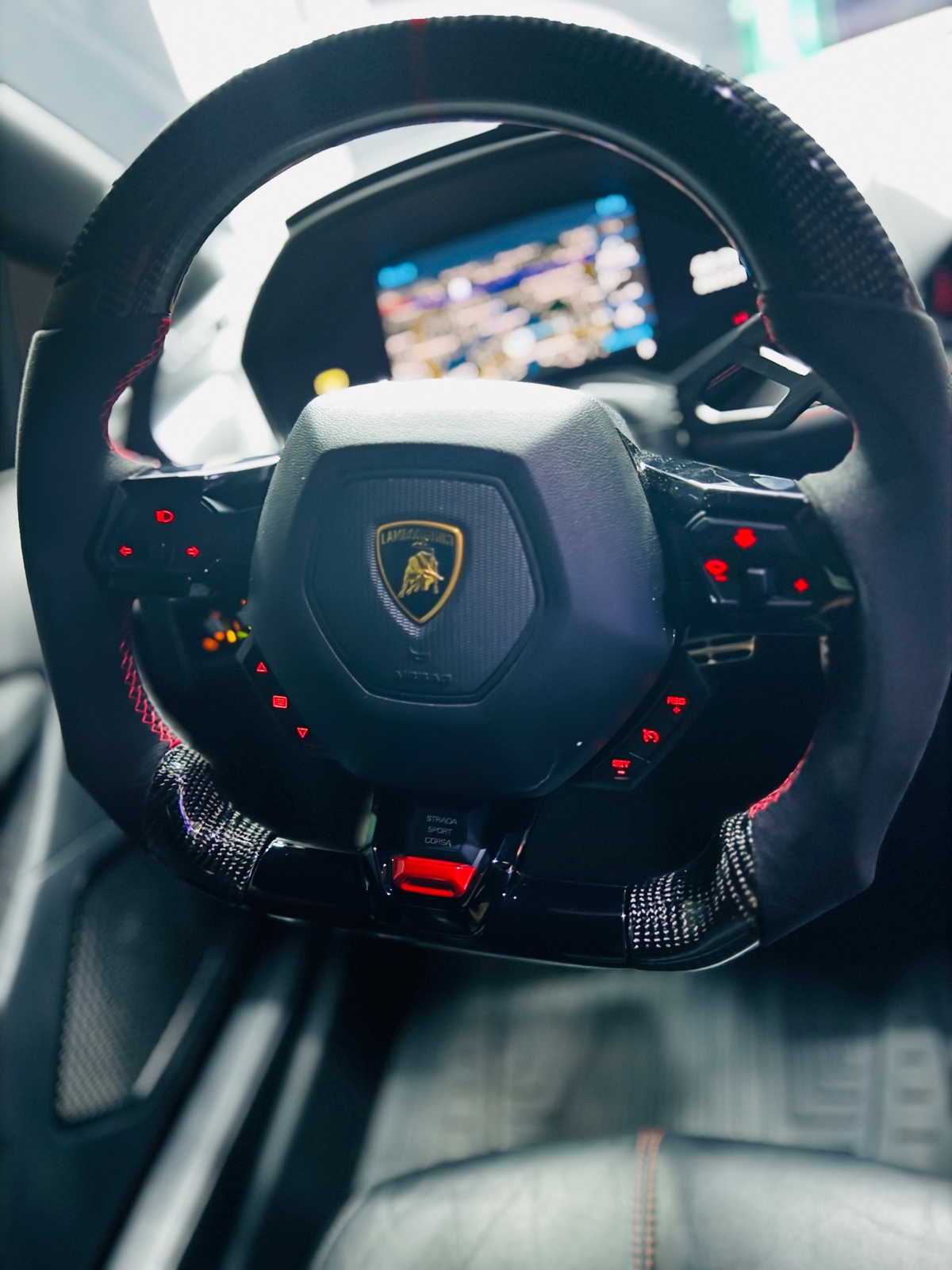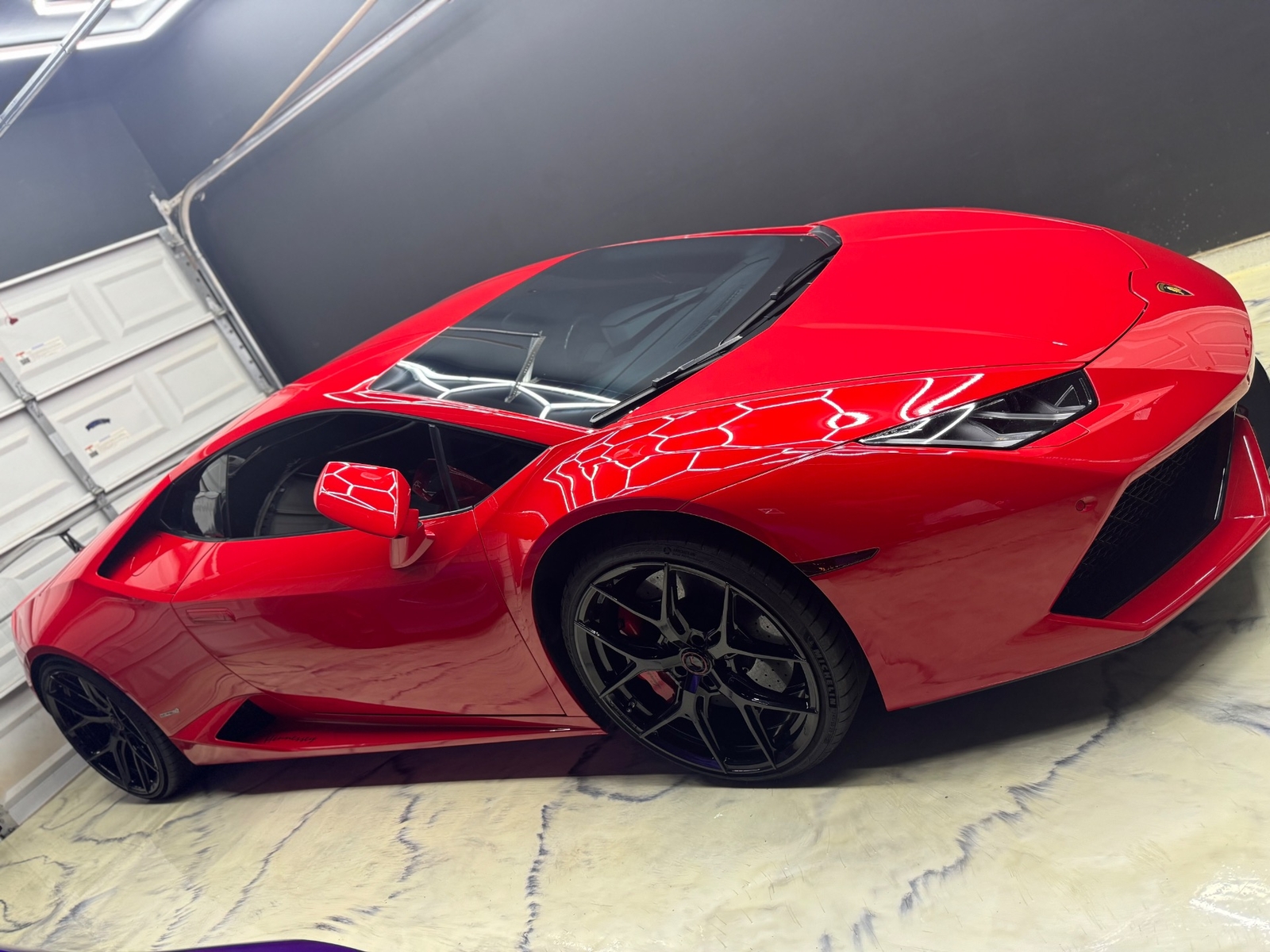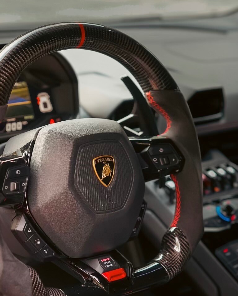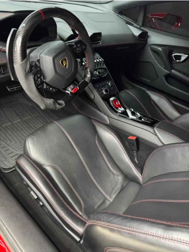 Equipped with Vossen Wheels measuring 20 inches in the front and 21 inches in the rear, this Huracan exudes a commanding presence on the road. The carbon fiber spoiler adds a touch of aerodynamic sophistication, while the blacked-out trim and Lamborghini logo give it a stealthy and aggressive look.