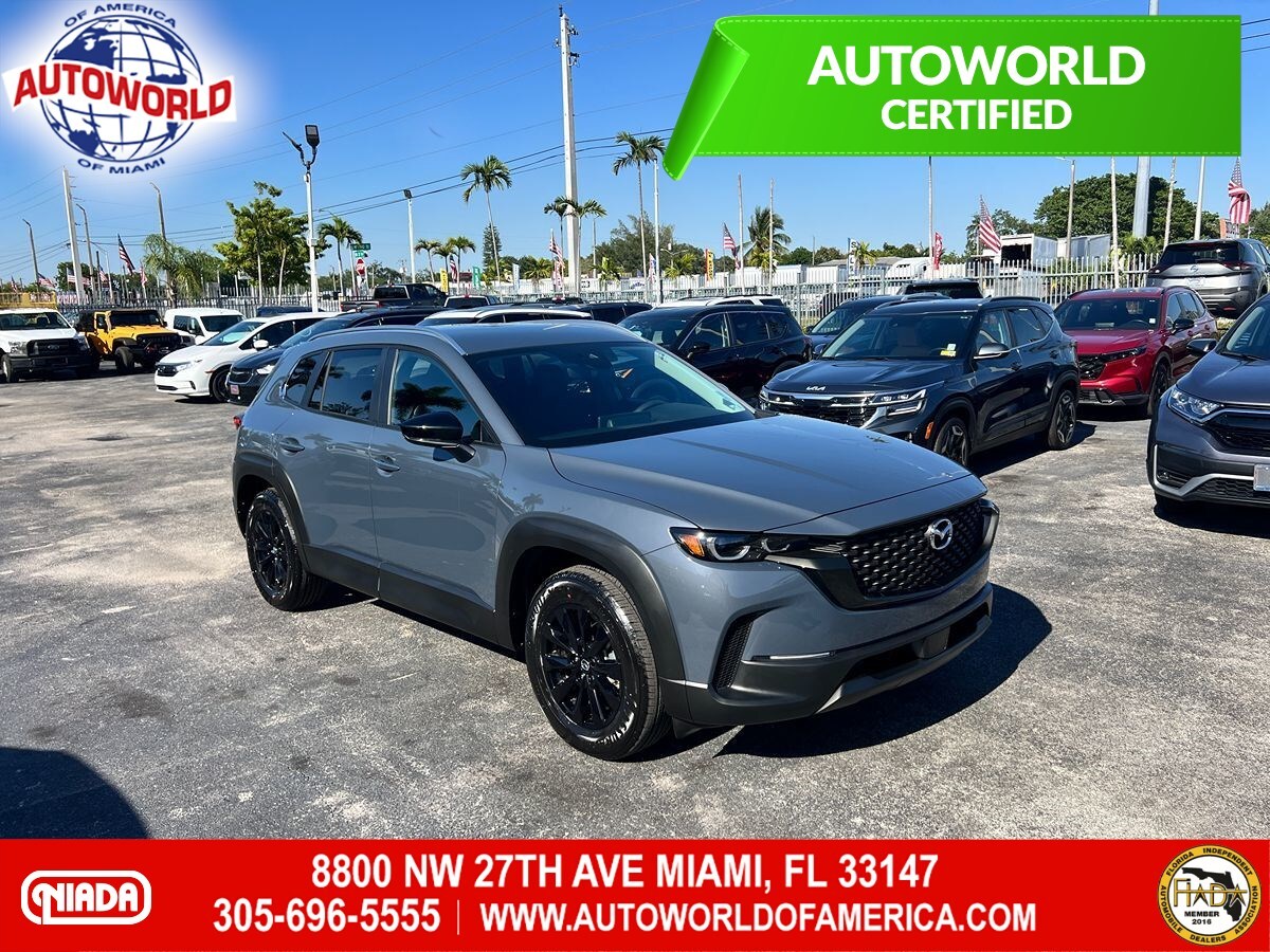 Treat your family to our 2024 Mazda CX-50 2.5 S Preferred AWD that's bold - stylish - and up for fun in Polymetal Gray Metallic! Motivated by a 2.5 Liter SKYACTIV-G 4 Cylinder supplying 187hp to a 6 Speed Automatic transmission with a manual-shift mode for more fun. You can also take advantage of dedicated Sport and Snow modes in this All Wheel Drive SUV - which returns nearly 29mpg on the highway. You'll be moving in style with our Mazda CX-50's LED lighting - heated power mirrors - a power liftgate - rain-sensing wipers - alloy wheels - a roof-mounted spoiler - and bright dual exhaust outlets. Climb inside our 2.5 S Preferred cabin that puts comfort and versatility first with heated cloth/leatherette front seats - eight-way power for the driver - a leather-wrapped steering wheel - dual-zone automatic climate control - and advanced keyless access/ignition. Set your favorite soundtrack on the eight-speaker audio system - and you're ready to connect with a 10.25-inch central display - a Commander controller - Android Auto - voice recognition - navigation - wireless Apple CarPlay - WiFi compatibility - Bluetooth - and HD Radio. Safer travels await - thanks to intelligent Mazda features such as a rearview camera - automatic emergency braking - adaptive cruise control - lane-keeping assistance - a driver attention monitor - blind-spot monitoring - and more. Drive our Mazda CX-50 2.5 S Preferred and discover the world for yourself! Save this Page and Call for Availability. We Know You Will Enjoy Your Test Drive Towards Ownership! This vehicle has a branded title and was DMV inspected in Florida. It is in excellent condition - and everything works perfectly - we have test driven it several times and checked to make sure all the options and features work as they should. It is priced thousands below its J.D. Power retail value based on advertised trim - miles - and options. Our vehicles go through a 151-Point Inspection and this vehicle includes a 3 Month 3 -000 Miles in-house warranty*. It is ready to go for local - nationwide - or international shipping. At Autoworld you will save thousands without sacrificing quality. You can now afford a newer model year - higher trim level - and even lower miles than what you were expecting in your price range. For more than 30 years customers worldwide agree that vehicles from Autoworld of America offer the best value and quality. $$$ DRIVE THE CAR - NOT THE TITLE - SAVE THOUSANDS $$$