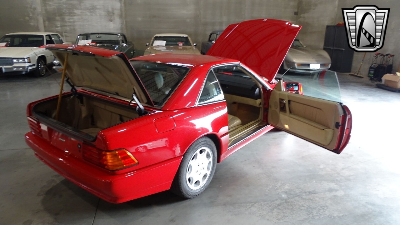 Since it was founded on February 18th of 1925, the Mercedes-Benz has always been a well-respected automobile. Mercedes-Benz has always been a symbol of one's economic status with their luxury vehicles and the wide array of commercial vehicles they produce! This example is a 1993 300SL Roadster! While equipped with both the soft top & removeable hard top, it is most admired when its top is laid back for optimal open-air cruising and enjoyment! With its automatic convertible top, power windows, power seats, power door locks, AM/FM radio, power steering, 2 circuit hydraulic power assisted braking system & telescopic steering wheel, cruise control, it creates comfort, convenience & enjoyable drivability. With bright red paint over a tan leather interior, it is pleasing to the eye. With its 3.0L I6 engine, automatic transmission, multi-link rear suspension system with single tube gas pressurized shock absorbers, front coil spring suspension system, alloy wheels wrapped in steel belted radial tires with 4-wheel disc antilock braking system further enhance the ride & handling of this European sports car. There are two types of Mercedes-Benz enthusiasts, those who own one, and those who want to! Isn't it time for you to become one of the ones who own a Mercedes-Benz roadster?.