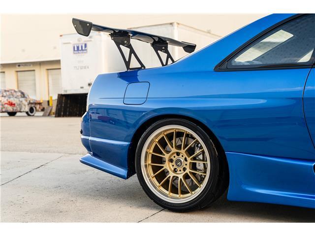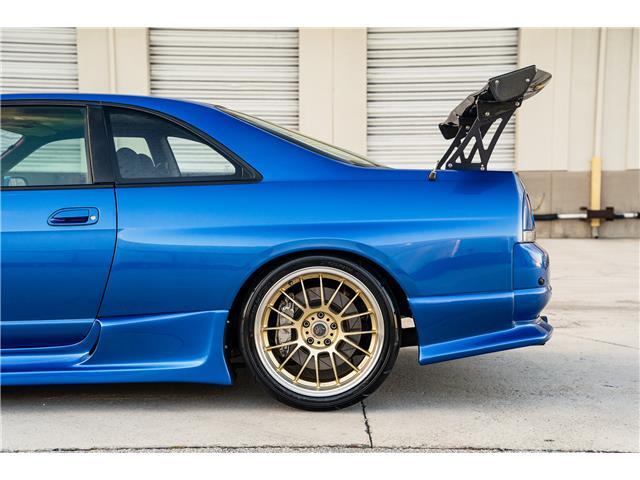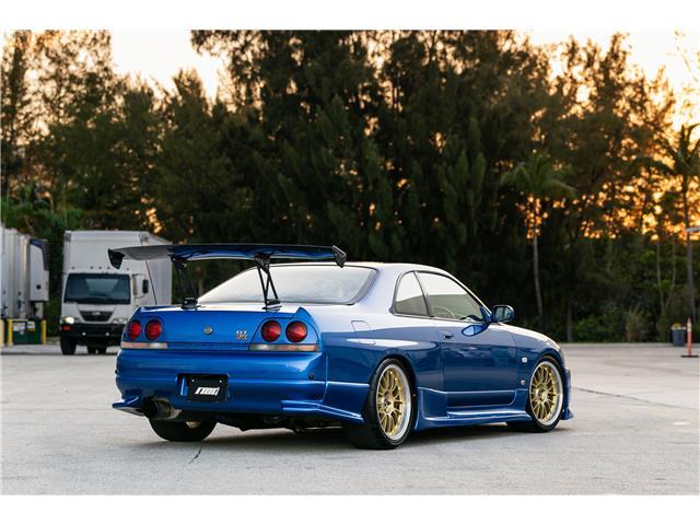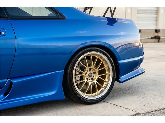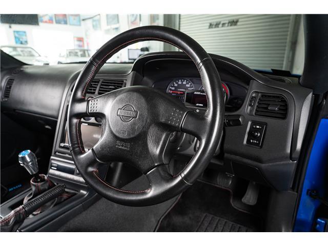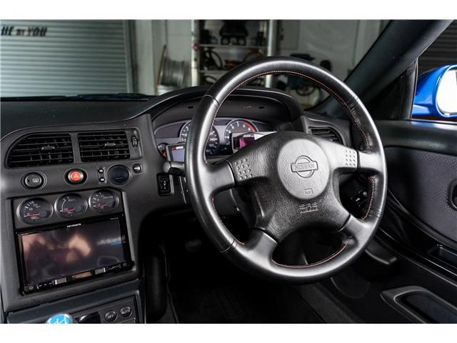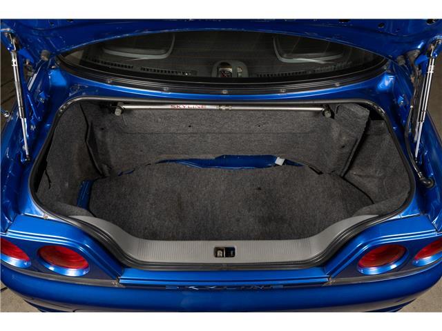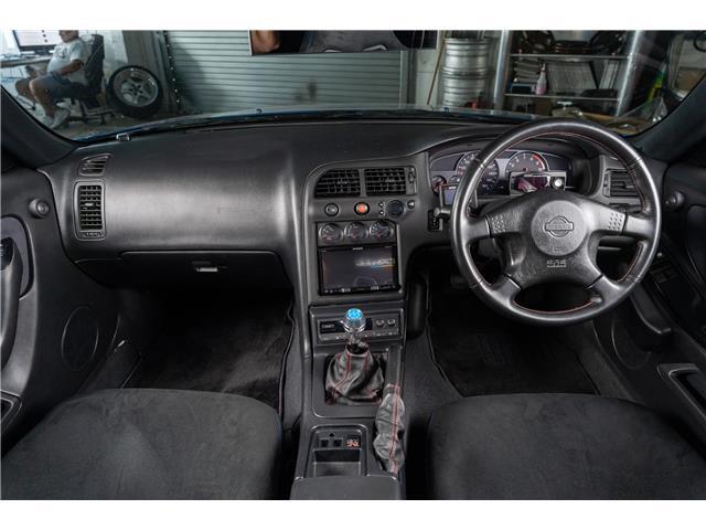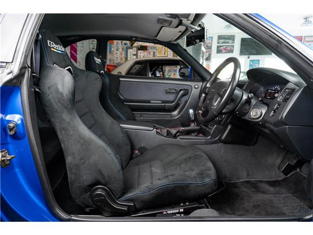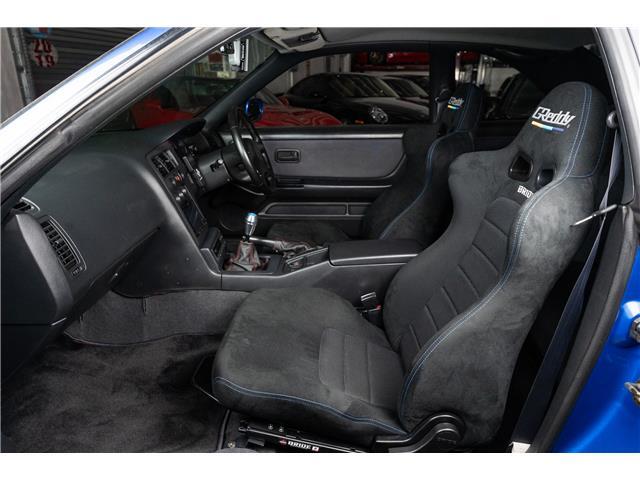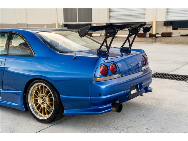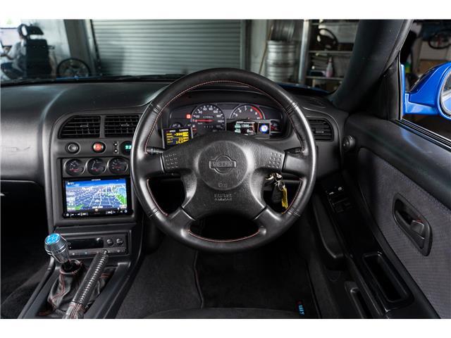 The looks of this R33 GT-R are those of an early 2000s Tokyo auto salon car that you might see running the Wangan after the show. Refinished in Bayside Blue the condition of the exterior is very good showing only minor imperfections indicative of normal use. Exterior modifications include Top Secret front lip, side skirts, and rear spats, N1 bonnet lip, bumper ducts and rear glass with no wiper, a carbon fiber GT wing, clear side markers and foglights, and the holy grail of lighting for an R33 the Series III Xenon projector headlights. If the looks are not as desired sourcing wheels and factory rear wing with trunk is possible.