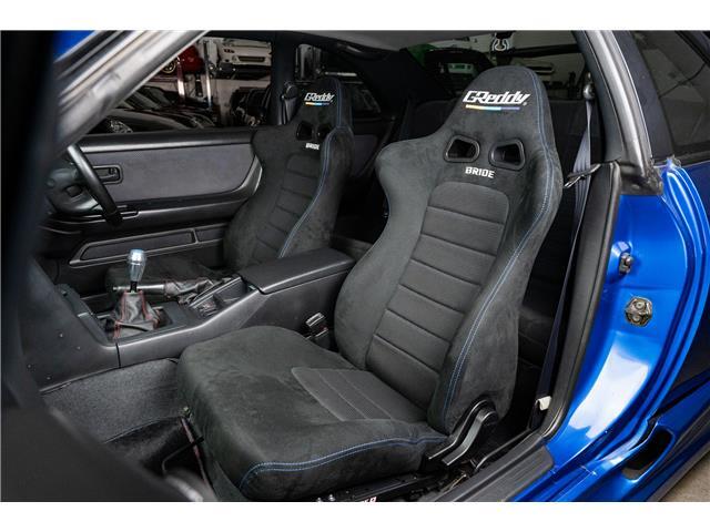 The same cleanliness continues into the interior, maintaining all of the interior components, a functioning radio with backup camera and proximity sensors, and fully functioning climate control. A small flaw found in the interior is a grouping of small holes in the dashboard where gauges were previously located, this is only a small flaw that could be remedied with the addition of a few gauges. Providing the bolstering to hold both the driver and passenger in place are a pair of limited release GReddy x Bride Euroster II reclinable seats paired with factory seat belts and the ability to fit 4 point harness via a cross bar with mounting points behind the seats. An interesting optional factory part found on the interior is the pair of knee pads found on the driver side door and center console to allow the driver to better lock themselves in place.