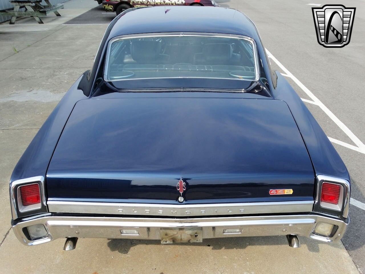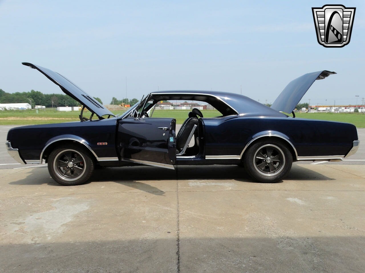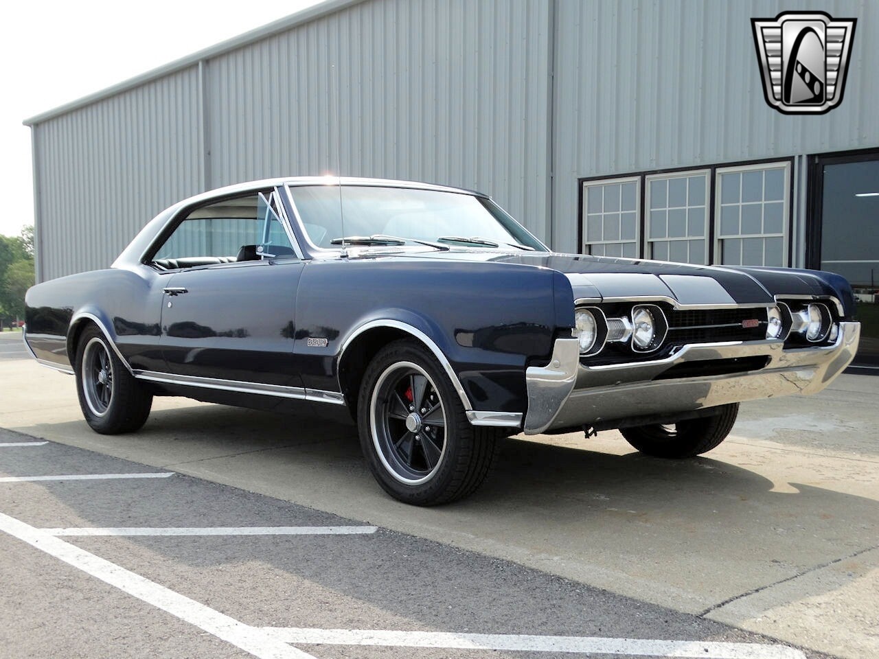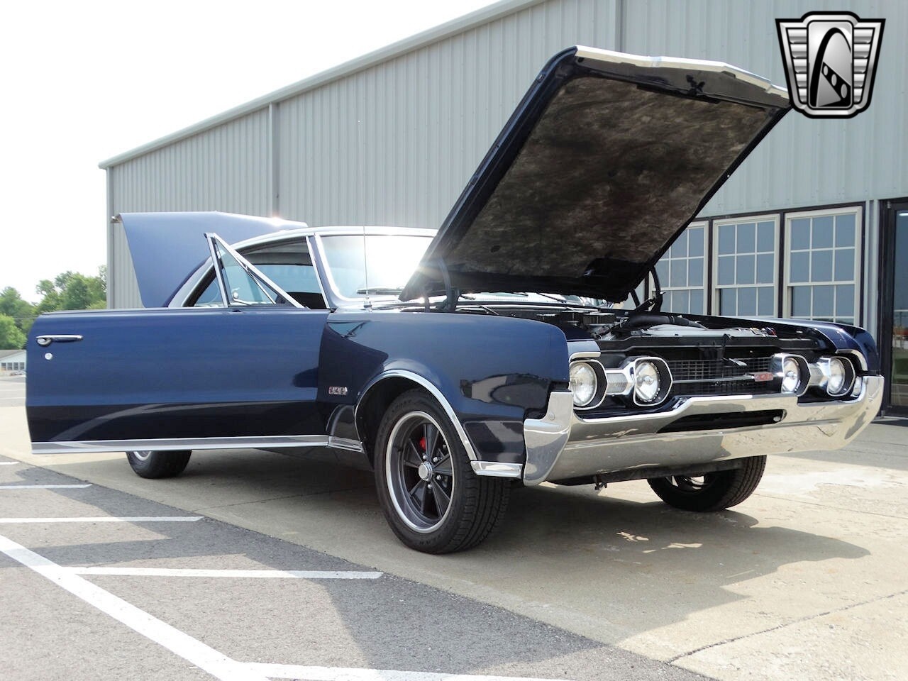 Introducing the 1967 Oldsmobile 442, a classic muscle car that embodies the spirit of American automotive excellence. This stunning vehicle boasts a striking blue exterior that captures attention and admiration wherever it goes. Complementing its bold exterior is a sleek black interior, creating a timeless and sophisticated look that is sure to impress. New parts in boxes included. Included in 442 are a new dash, new gauges, center console, and much more.