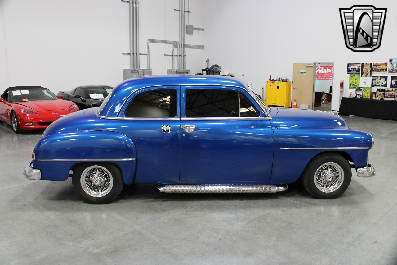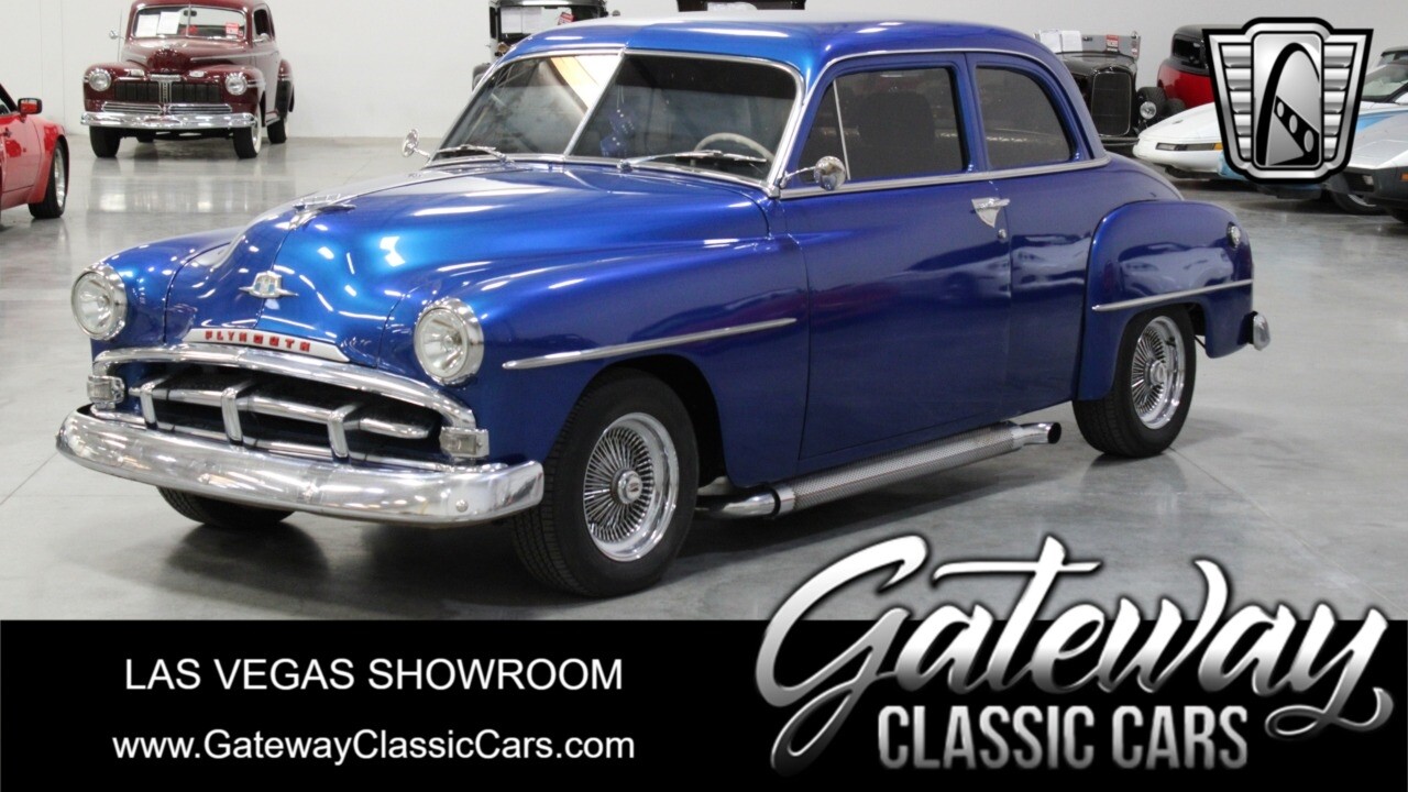 Gateway Classic Cars of Las Vegas presents this 1951 Plymouth Cranbrook, a classic automobile that combines vintage charm with modern enhancements. This stunning vehicle boasts a striking blue exterior that is sure to turn heads wherever you go. The timeless design of the Cranbrook is complemented by a sleek black interior, offering a sophisticated and stylish driving experience.