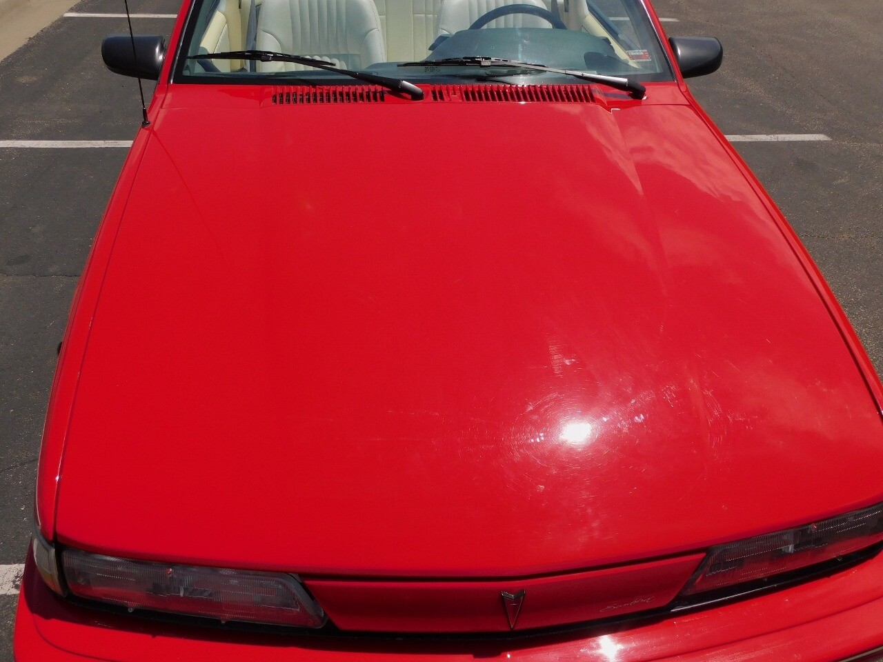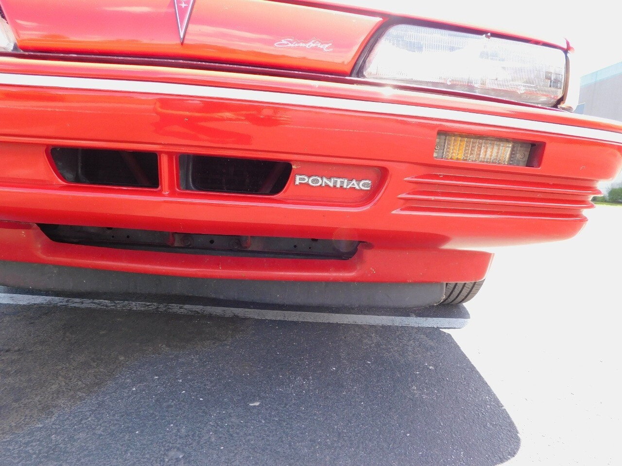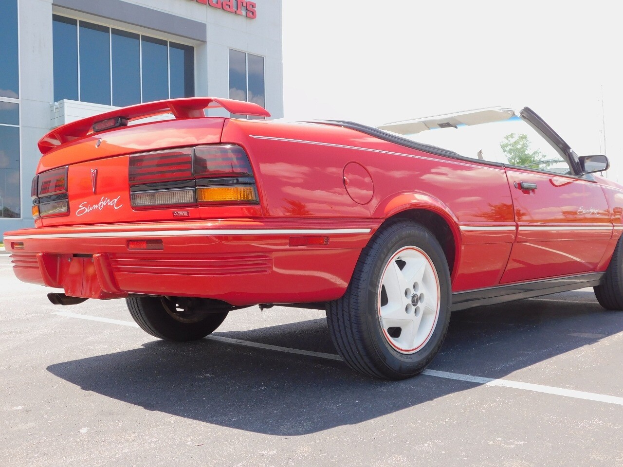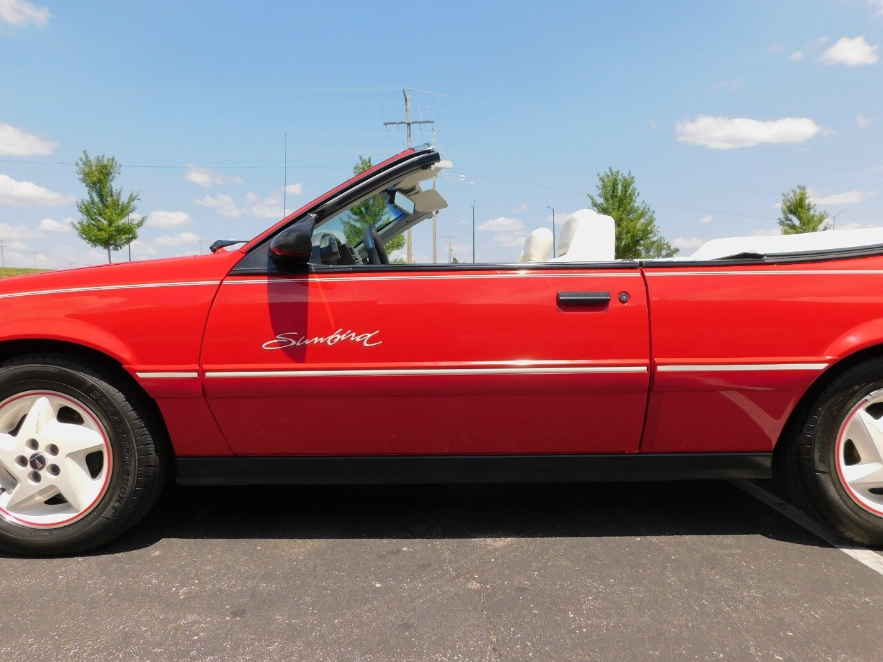 Introducing the 1992 Pontiac Sunbird SE Convertible, a classic blend of style and performance that captures the essence of open-road freedom. This stunning vehicle boasts a vibrant bright red exterior that is sure to turn heads wherever you go. Complementing the striking exterior is a pristine white interior, creating a timeless and elegant look that is both inviting and comfortable.