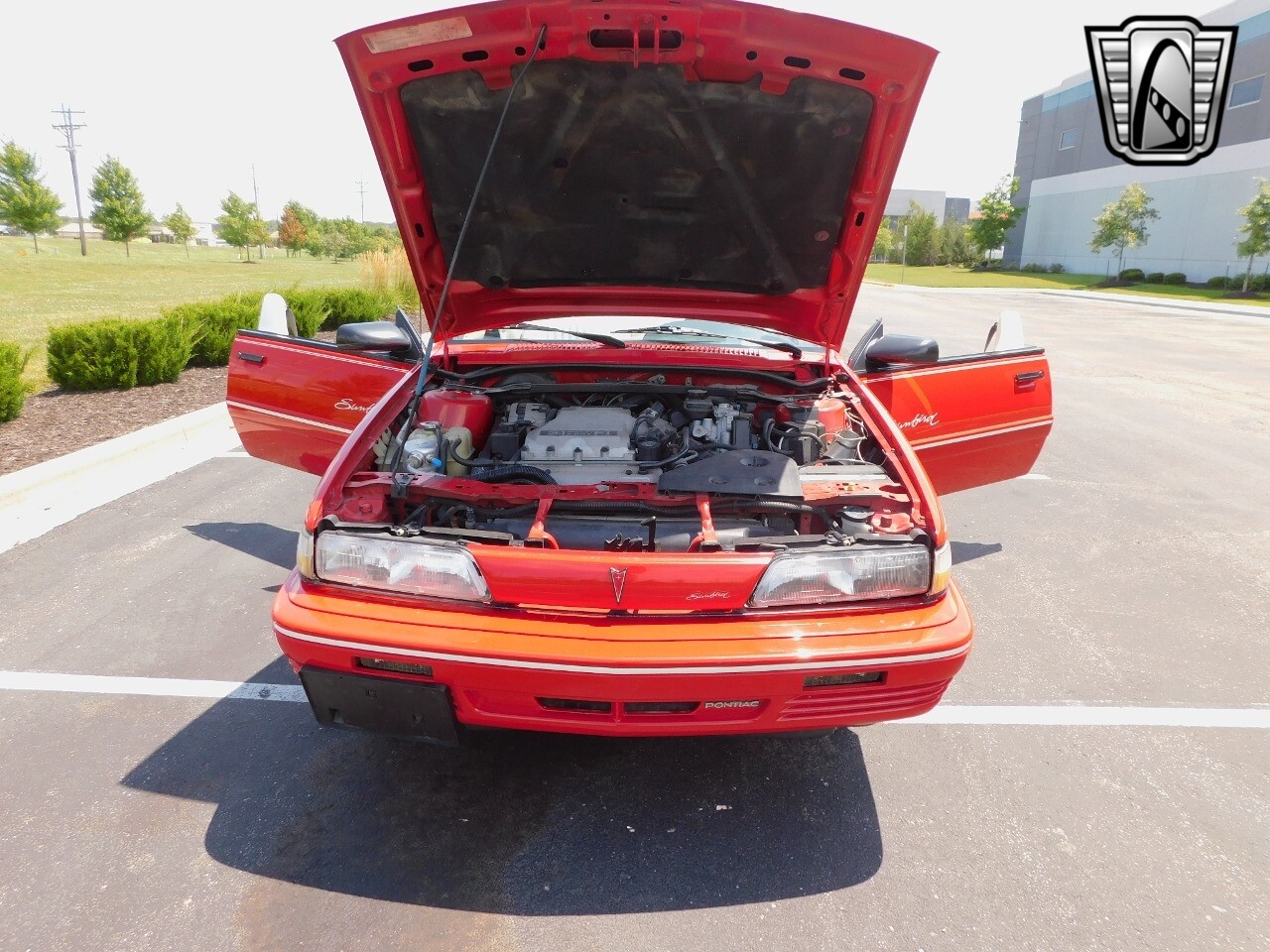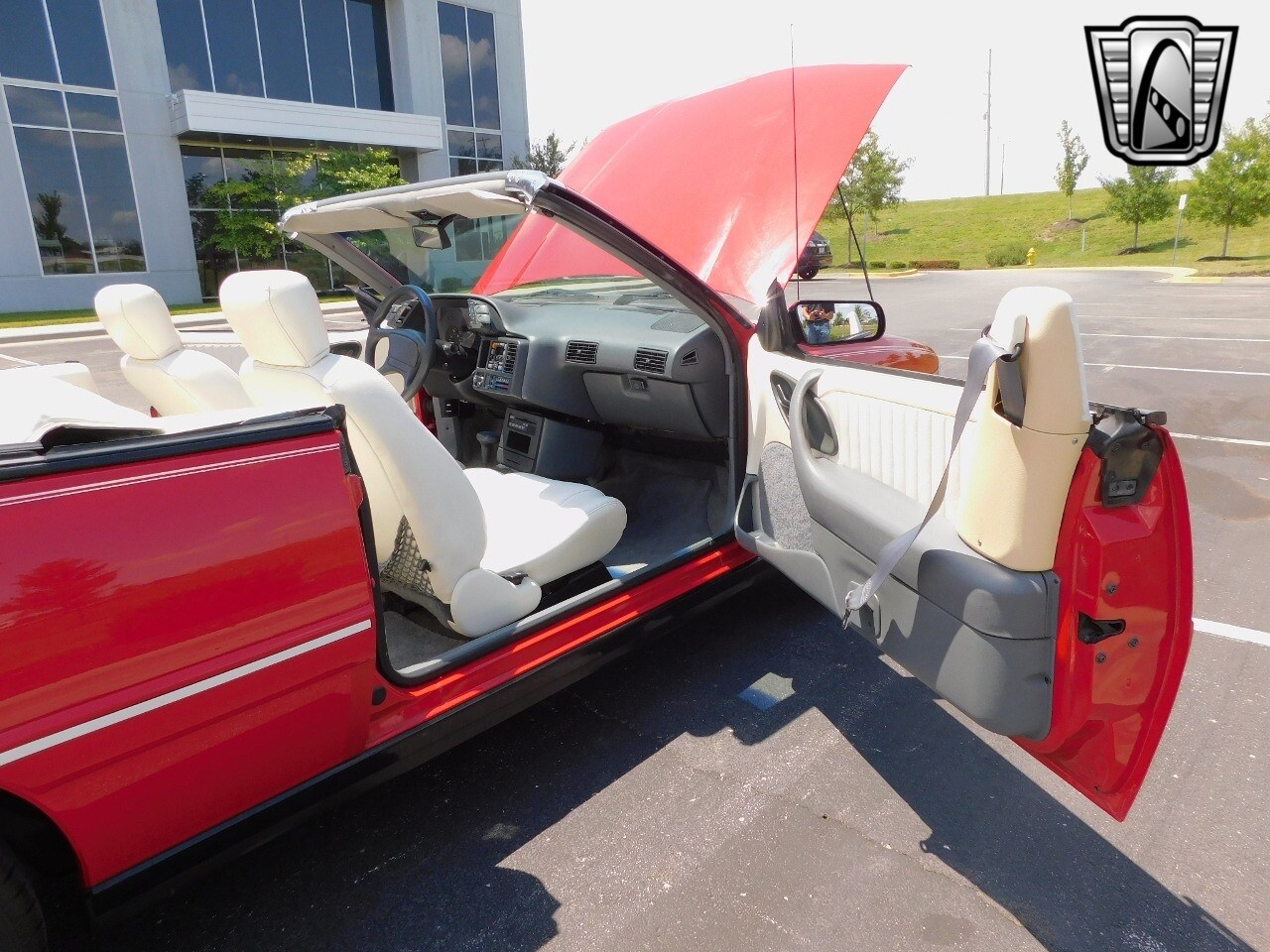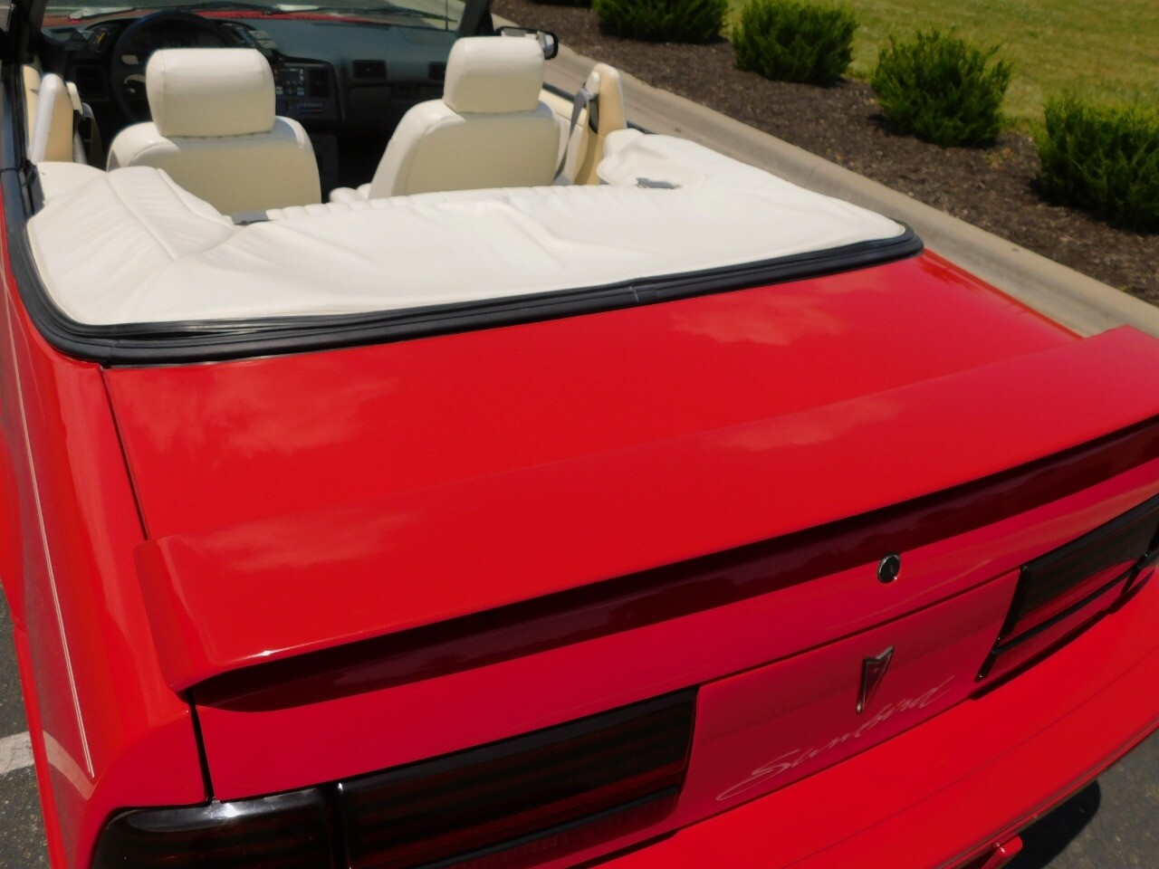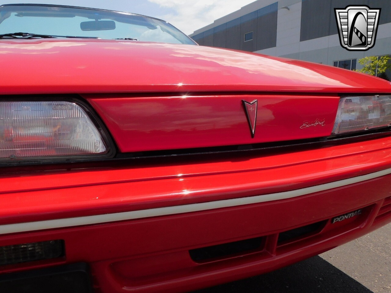 Introducing the 1992 Pontiac Sunbird SE Convertible, a classic blend of style and performance that captures the essence of open-road freedom. This stunning vehicle boasts a vibrant bright red exterior that is sure to turn heads wherever you go. Complementing the striking exterior is a pristine white interior, creating a timeless and elegant look that is both inviting and comfortable.