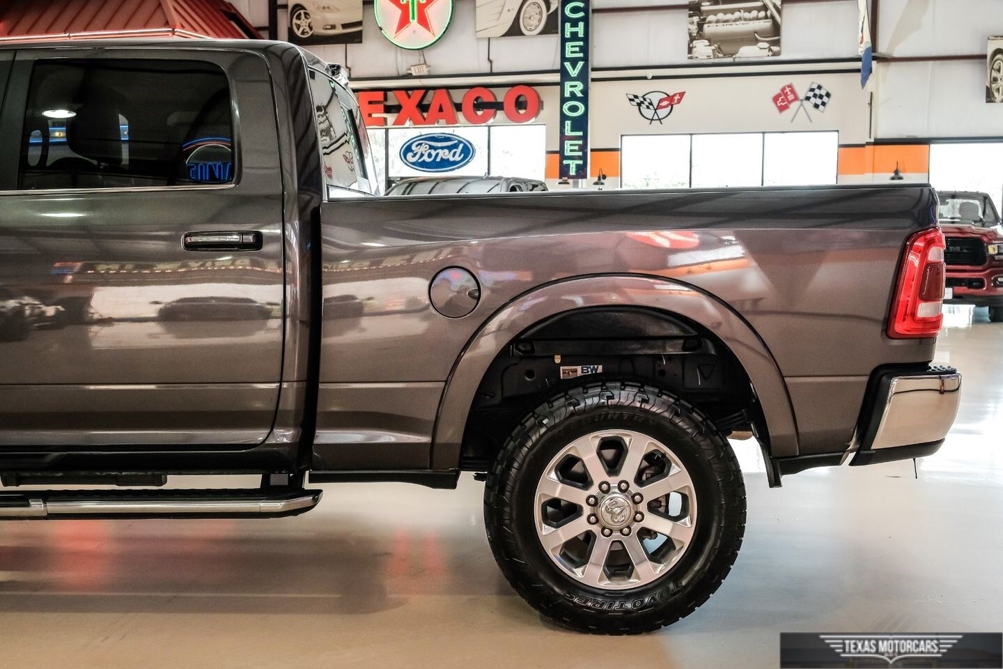 The exterior of the Ram 3500 Laramie is as functional as it is stylish. The 20 x 8-inch polished aluminum wheels and chrome appearance package add a touch of class to this rugged machine. The chrome cab-length flat side steps provide easy access to the cabin, while the clearance lamps enhance visibility and safety. The spray-in bedliner ensures that your truck bed remains protected from wear and tear, making it perfect for heavy-duty use.
