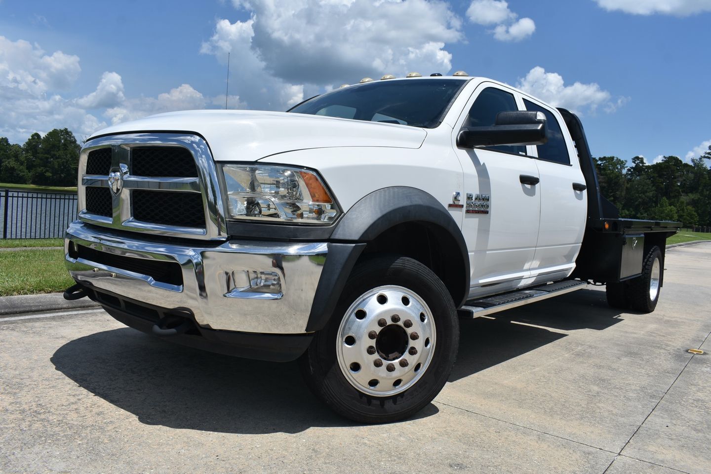 You are looking at a 2014 Dodge Ram 5500 Regular Cab 4x4 with a 11FT. flat bed. It is powered with a 6.7L Cummins Diesel I-6 and Aisin automatic transmission. It is equipped with tilt, cruise, and am/fm radio, gooseneck hitch, receiver hitch , and other work truck options.Also included are the owner's manuals and one keyless remote.