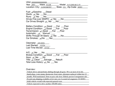 No Payment: If the deposit is not received within 24 hours of the close of the auction, or if the balance is not paid in full within 3 days following the close of the auction, we reserve the right to re-list the vehicle to the next highest bidder or another qualified buyer.