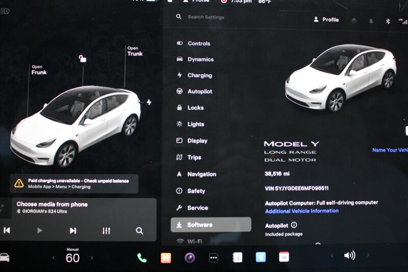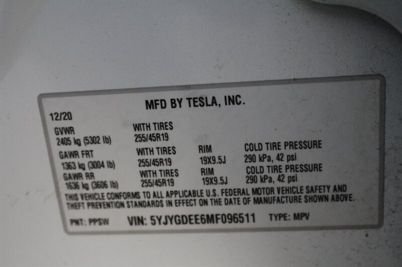 INSTALLED FEATURES: Air filtration, Front air conditioning: automatic climate control, Front air conditioning zones: dual, Rear vents: second row, Airbag deactivation: occupant sensing passenger, Front airbags: dual, Knee airbags: dual front, Side airbags: front, Side curtain airbags: front / rear, Antenna type: element, Auxiliary audio input: Bluetooth / USB, Internet radio app: TuneIn, Radio: FM / HD radio / touch screen display / voice operated, Radio data system, Subwoofer: 1, Total speakers: 14, Watts: 560, ABS: 4-wheel, Braking assist, Electronic brakeforce distribution, Electronic parking brake, Front brake diameter: 14.0, Front brake type: ventilated disc, Front brake width: 0.98, Power brakes, Rear brake diameter: 13.2, Rear brake type: ventilated disc, Rear brake width: 0.79, Regenerative braking system, Armrests: rear center with cupholders / rear folding, Center console trim: leatherette, Door trim: faux suede, Floor mat material: carpet, Floor material: cargo area carpet / carpet, Floor mats: front / rear, Interior accents: metallic-tone / wood, Steering wheel trim: leatherette, Adaptive cruise control, Adaptive stop and go cruise control: fully automated, Ambient lighting, Cargo area light, Cargo cover: hard, Center console: front console with armrest and storage, Cupholders: front / rear, Easy entry: power driver seat / power steering wheel, Memorized settings: 8 driver / audio system / driver seat / side mirrors / steering wheel, Multi-function remote: proximity entry system / trunk release / vehicle and key memory, One-touch windows: 4, Power outlet(s): 12V front / USB front / USB rear / USB-C front / USB-C rear, Power steering: variable/speed-proportional, Power windows: lockout button, Reading lights: front / rear, Rearview mirror: auto-dimming, Steering wheel: power tilt and telescopic, Steering wheel mounted controls: audio / cruise control / multi-function / phone / voice control, Storage: accessory hook / door pockets, Universal remote transmitter: Homelink - garage door opener, Vanity mirrors: dual illuminating, Wireless charging station: front, 4WD type: full time, Axle ratio: 9.00, Drive mode selector, Electric charge cord: 240 volt, Electric motor battery type: lithium ion, Electric motor charger connector: Tesla (SAE J3400), Electric motor charging time (240V): 10 hours, Electric Motor HP: 346, Electric motor miles per charge: 316, Electric Motor Power Output (Kilowatts): 258, Electric Motor Torque: 389, EV battery capacity: 75 kWh, EV on-board charger rating: 11.5 kW, Door handle color: black, Fender lip moldings: black, Front bumper color: body-color, Grille color: black, Mirror color: body-color, Rear bumper color: body-color, Rear spoiler: lip, Rear spoiler color: body-color, Rear trunk/liftgate: liftgate / power operated, Window trim: black, Infotainment screen size: 15 in., Clock, Compass, Digital odometer, External temperature display, Fuel economy display: range, Multi-function display, Trip odometer, Warnings and reminders: low battery, Daytime running lights: LED, Exterior entry lights: approach lamps, Front fog lights: LED, Headlights: LED / auto delay off / auto high beam dimmer / auto on/off / self-leveling, Taillights: LED, Side mirror adjustments: power / power folding / reverse gear tilt, Side mirrors: auto-dimming / heated, Moonroof / Sunroof: panoramic, Automatic emergency braking: front / front pedestrian, Automatic hazard warning lights, Blind spot safety: sensor/alert, Camera system: front / rearview, Child safety door locks, Child seat anchors: LATCH system, Crumple zones: front, Dash camera: front recording / rear recording / side recording, Emergency interior trunk release, Impact sensor: battery disconnect / door unlock / post-collision safety system, Lane deviation sensors, Parking sensors: front / rear, Pedestrian safety sound generation, Pre-collision warning system: audible warning / pedestrian detection / visual warning, Rearview monitor: in dash, Traffic sign recognition: adaptive speed limiting, Emergency locking retractors: front / rear, Front seatbelts: 3-point, Rear seatbelts: 3-point, Seatbelt force limiters: front, Seatbelt pretensioners: front, Seatbelt warning sensor: front, Driver seat: heated, Driver seat power adjustments: 4-way power lumbar / height / reclining / 12, Front headrests: integrated / 2, Front seat type: bucket, Passenger seat: heated, Passenger seat power adjustments: 4-way power lumbar / height / reclining / 12, Rear headrests: adjustable / 3, Rear seat: heated, Rear seat folding: power / split, Rear seat power adjustments: reclining, Rear seat type: 60-40 split bench, Upholstery: leatherette, Anti-theft system: alarm / perimeter alarm / vehicle immobilizer, Power door locks: anti-lockout / auto-locking, Hill holder control, Stability control, Traction control, Turns lock-to-lock: 2.0, Front shock type: twin-tube gas, Front spring type: coil, Front stabilizer bar, Front struts, Front suspension classification: independent, Front suspension type: double wishbone, Rear shock type: twin-tube gas, Rear spring type: coil, Rear struts, Rear suspension classification: independent, Rear suspension type: multi-link, Navigation data: real time traffic / send destination to vehicle, Navigation system: touch screen display / voice operated, Smart device app compatibility: Tesla App, Smart device app function: horn/light operation / lock operation / maintenance scheduling / maintenance status / phone as a key / security event/collision alert / vehicle location / window operation, Wi-Fi: hotspot compatible, Wireless data link: Bluetooth, Tire Pressure Monitoring System, Tire type: all season, Wheels: aluminum alloy, Front wipers: rain sensing / speed sensitive / variable intermittent, Liftgate window: fixed, Power windows: remotely operated / safety reverse, Tinted glass, Window defogger: rear