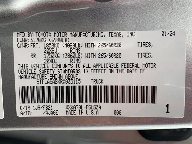 2024 Toyota Tundra SR5 Black Cloth. Certified. Certification Program Details: 3-Month/3,00 mile Maximum Care Coverage 125-Point Inspection Carfax Vehicle History Report 24-Hour Roadside Assistance Car Rental Allowance SiriusXM Satellite Radio 3-Month Trial Subscription