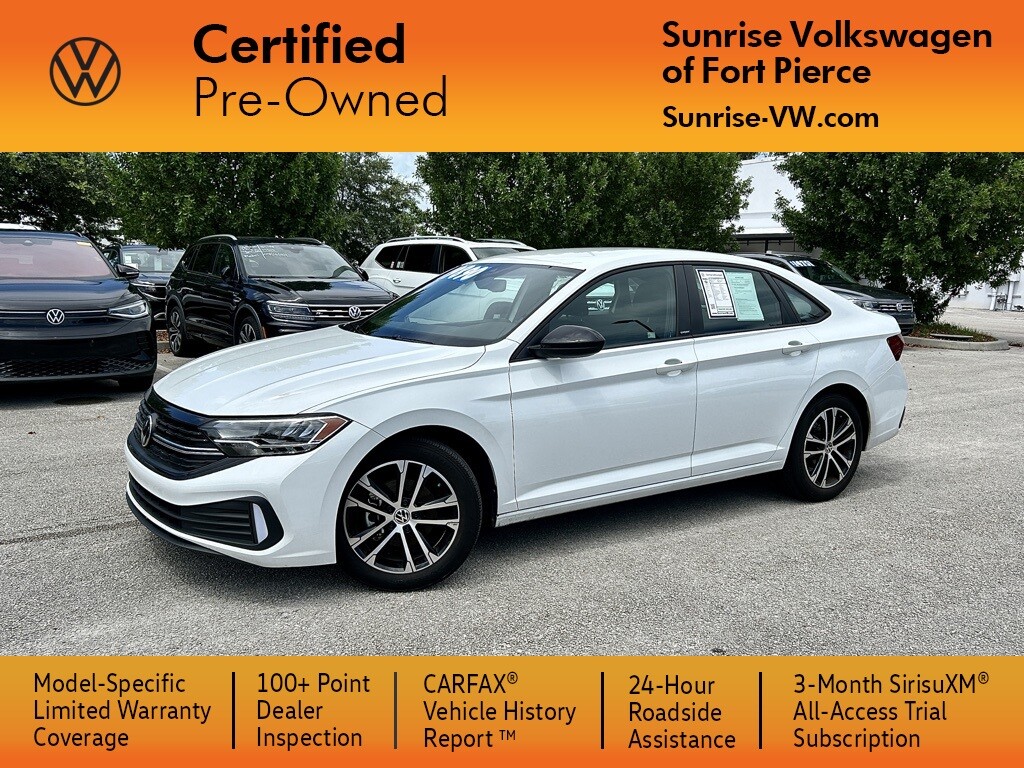 Certified. 2023 Volkswagen Jetta 4D Sedan Pure White 8-Speed Automatic with Tiptronic 1.5T Sport Clean CARFAX. CARFAX One-Owner. ALLOY WHEELS, VW FACTORY CERTIFIED PRE-OWNED, Titan Black Cloth. FWD 1.5L I-4 DI DOHC Turbocharged