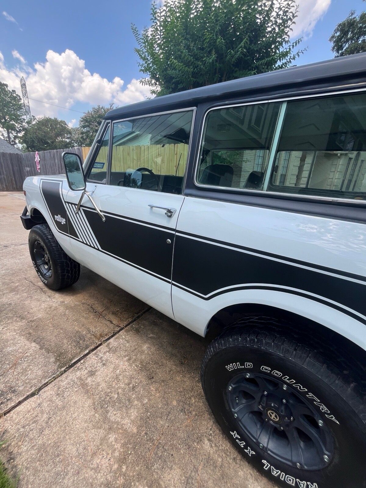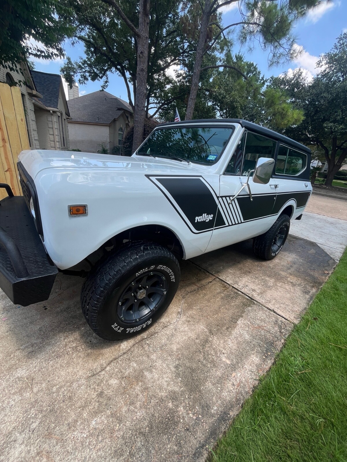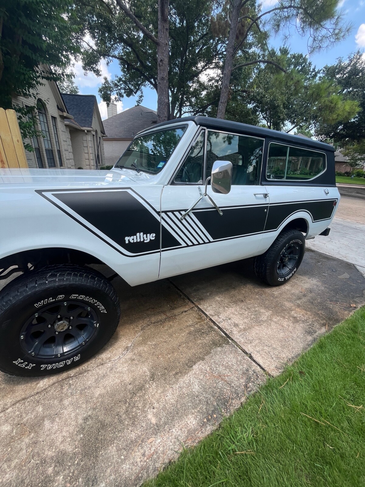 Beautifully restored 1976 scout ii with the original 345 powerful v8. This truck has it all fully equipped with tons of original and a few aftermarket upgrades like stereo etc. This is a factory AC scout from which I was told and the compressor has been upgraded and blows cold air. Recently underwent a full paint job including the hard top. Installed Rallye stripes for an authentic look with black on white color scheme. Everything functions as it should and all glass is in great shape. This car has been used as a daily driver In the past and has been very well maintained. With the sell will come original service manual and a binder full of all the upgrades and parts purchased over all the years. Easily $10k in parts alone for the restoration not including the $10k paint that was just completed on it. This is a beauty and gets plenty of looks from all ages.