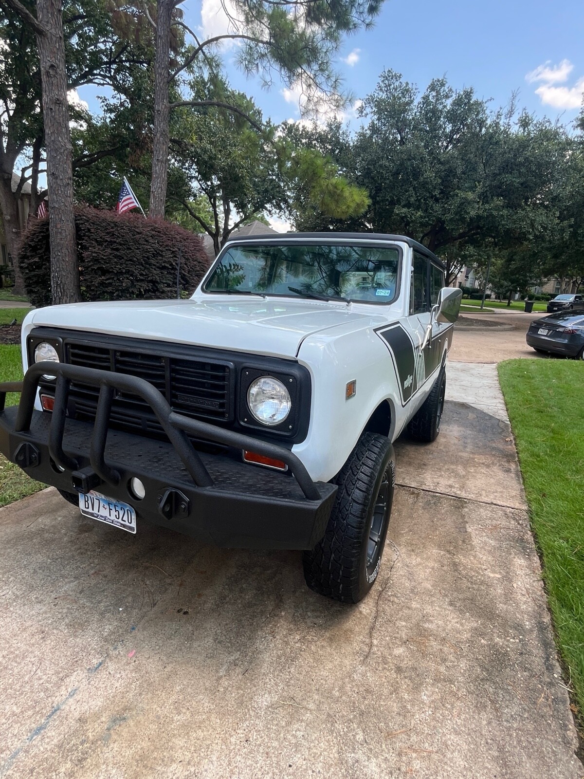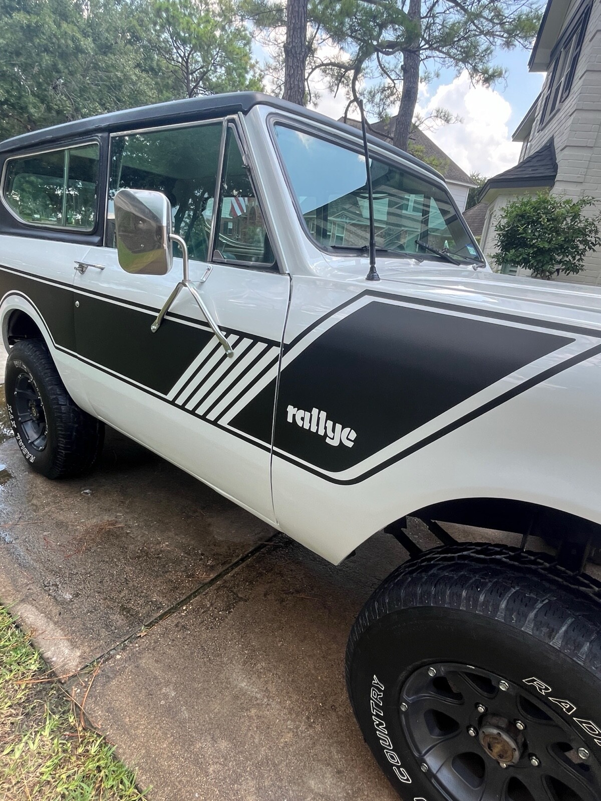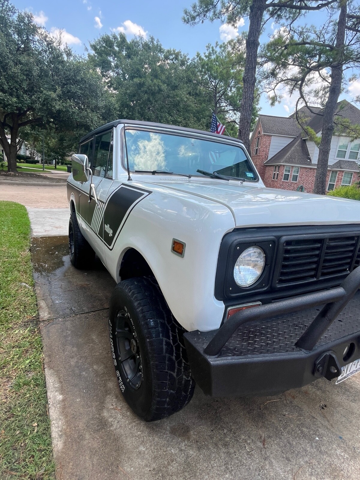 Beautifully restored 1976 scout ii with the original 345 powerful v8. This truck has it all fully equipped with tons of original and a few aftermarket upgrades like stereo etc. This is a factory AC scout from which I was told and the compressor has been upgraded and blows cold air. Recently underwent a full paint job including the hard top. Installed Rallye stripes for an authentic look with black on white color scheme. Everything functions as it should and all glass is in great shape. This car has been used as a daily driver In the past and has been very well maintained. With the sell will come original service manual and a binder full of all the upgrades and parts purchased over all the years. Easily $10k in parts alone for the restoration not including the $10k paint that was just completed on it. This is a beauty and gets plenty of looks from all ages.