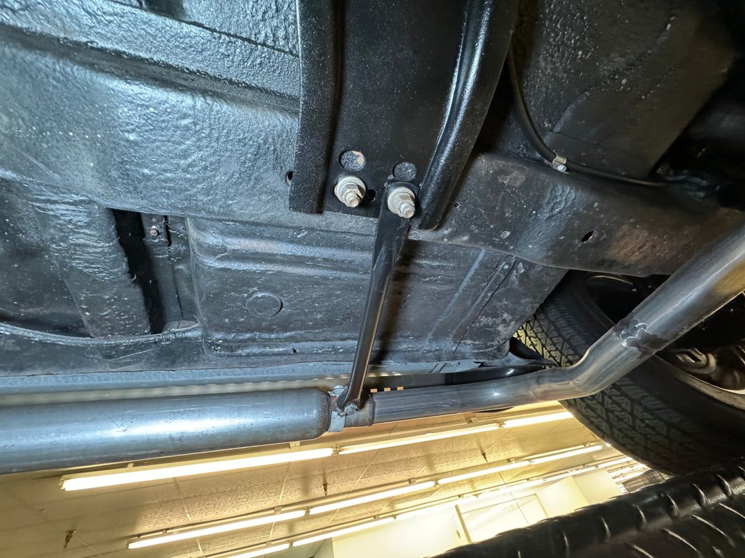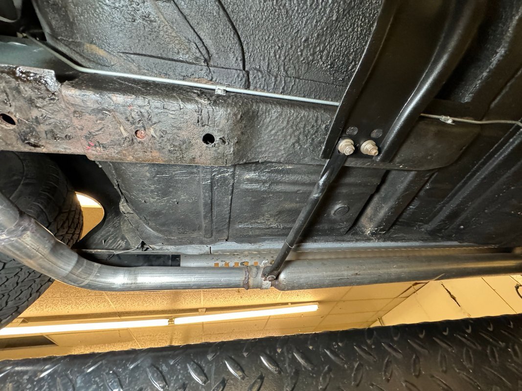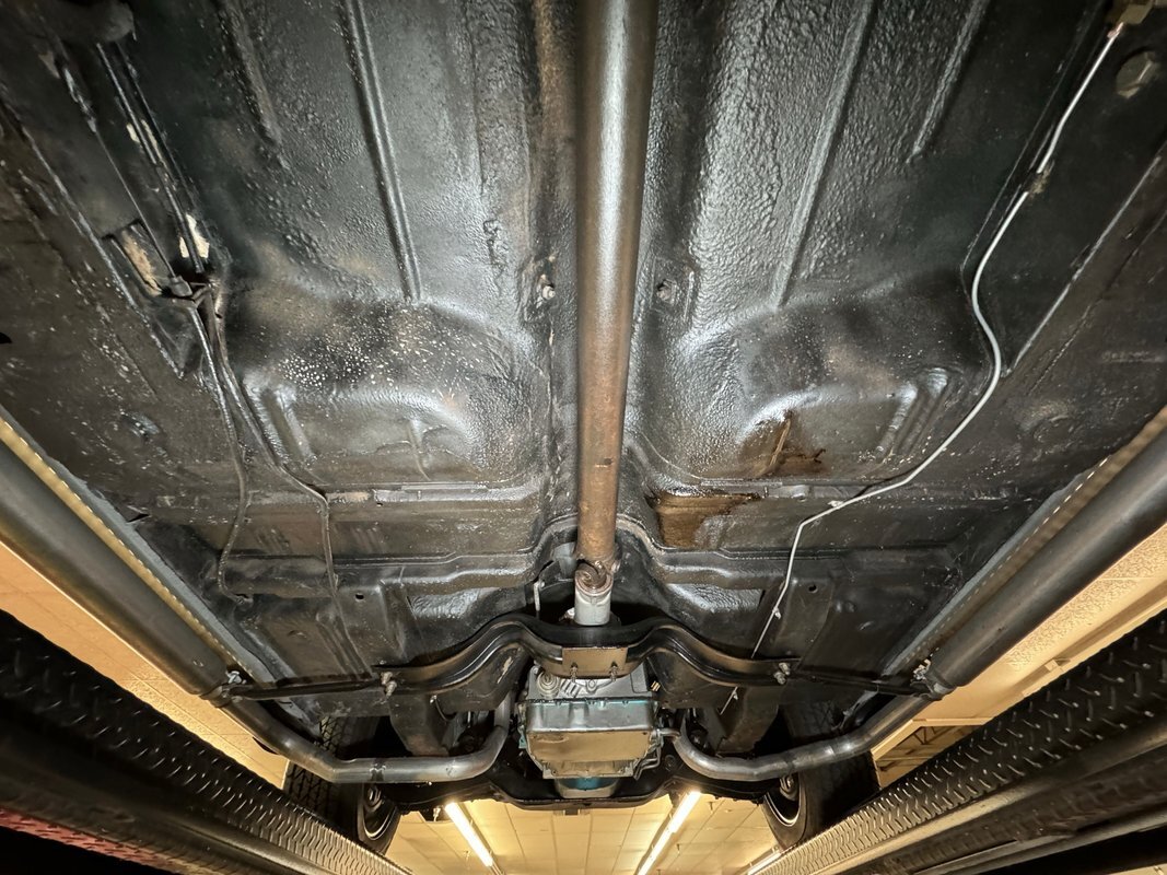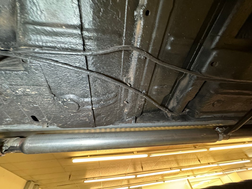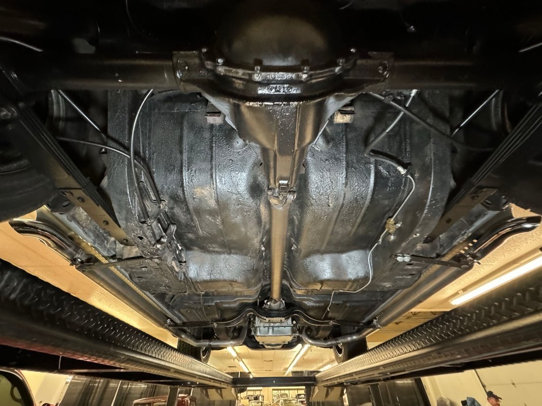 The car has been driven less than 500 miles since the restoration was completed in 2020, and it shows underneath which is nearly spotless. Under here, the Moser axles, pitman arm, and rear leaf springs are newer. Coil springs are up front. There's no surface rust or oil leaks, no dirt, and no grease built up anywhere. If not for some minor dust and road splash and basic patina, the underside would rival day one off the assembly line. As noted, the exhaust leaves the engine and immediately heads to the sides where side pipes send the spent gas along their way down the rocker panel, guarded by and dressed up with the louvered heat shields.